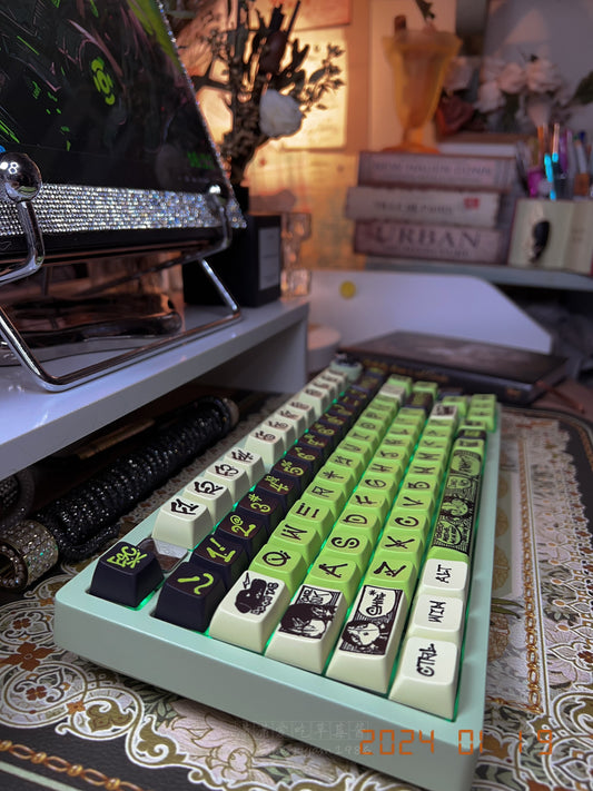 PREORDER PREBUILT Matcha Greebn Hi75 Aluminum Mechanical Customized Keyboard with Green NINEGO street artists keycaps and linear switch