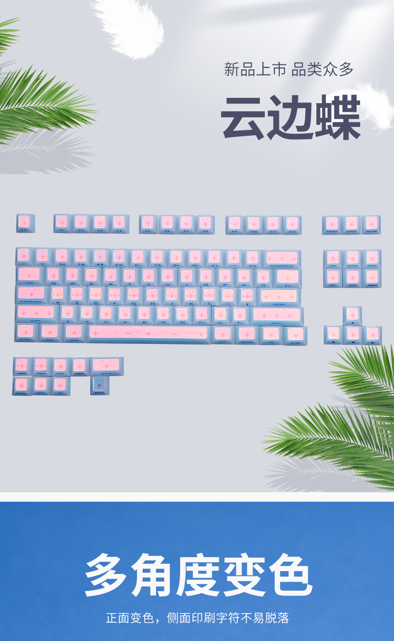 #0164 Cloud Edge Butterfly Phantom Laser Keycap Side Engraved Multi-sided Color-changing Keycap Cherry Profile