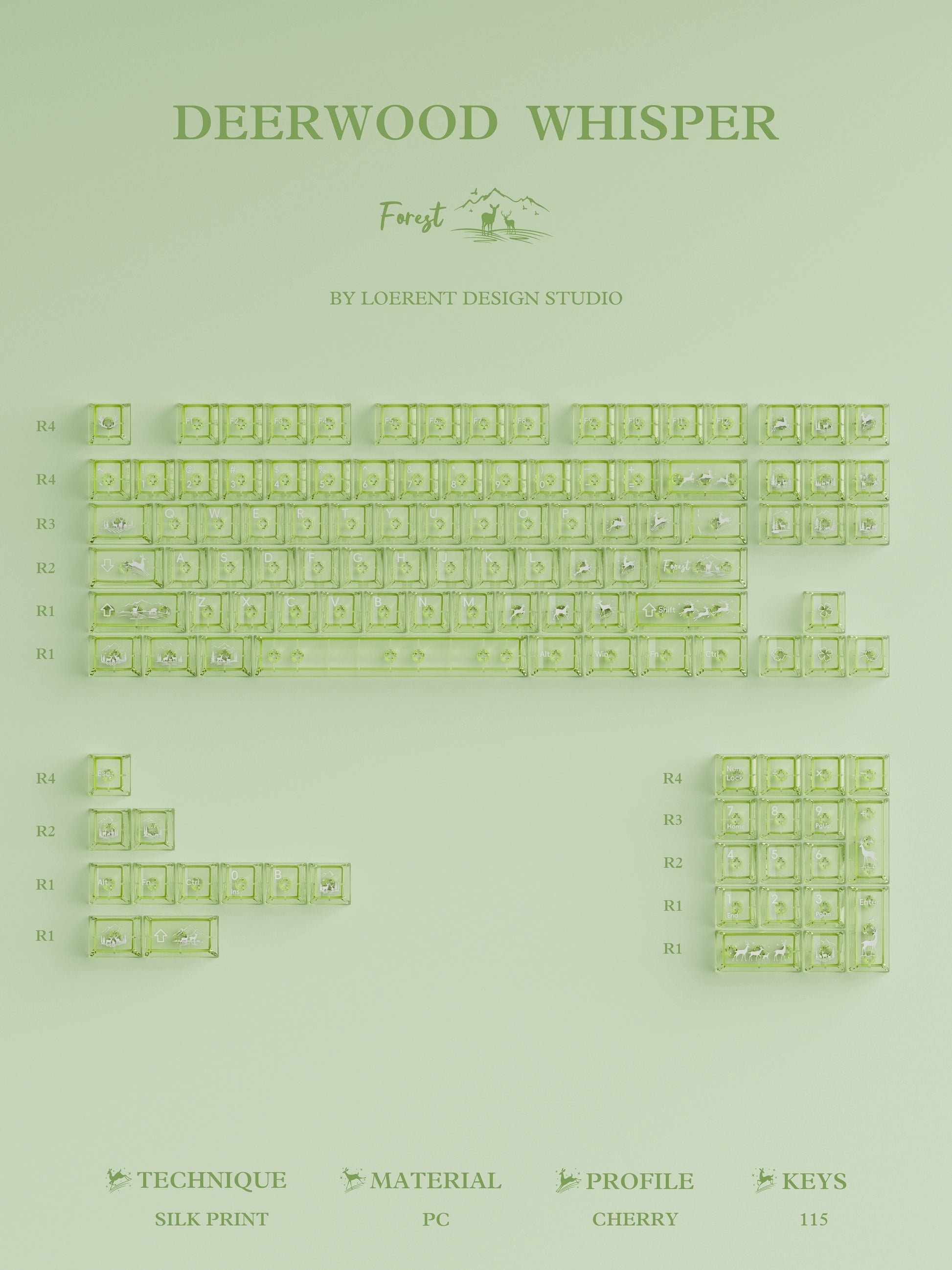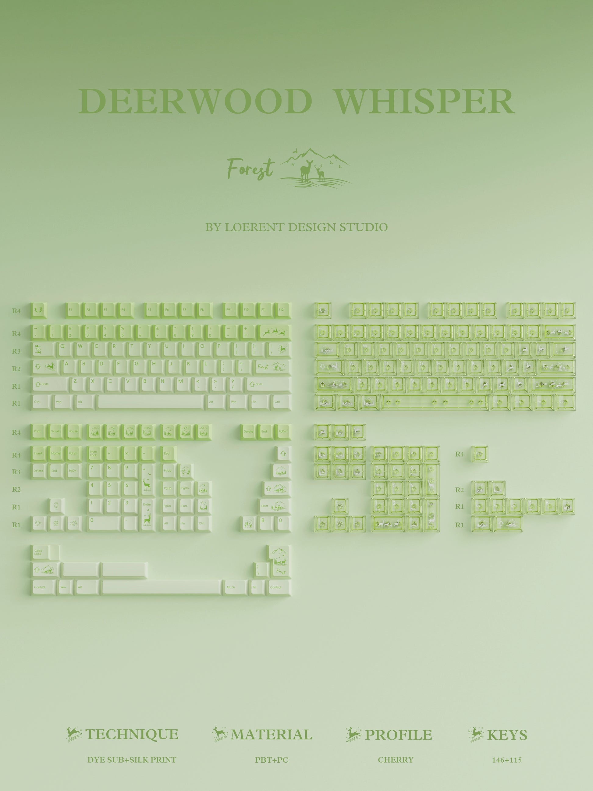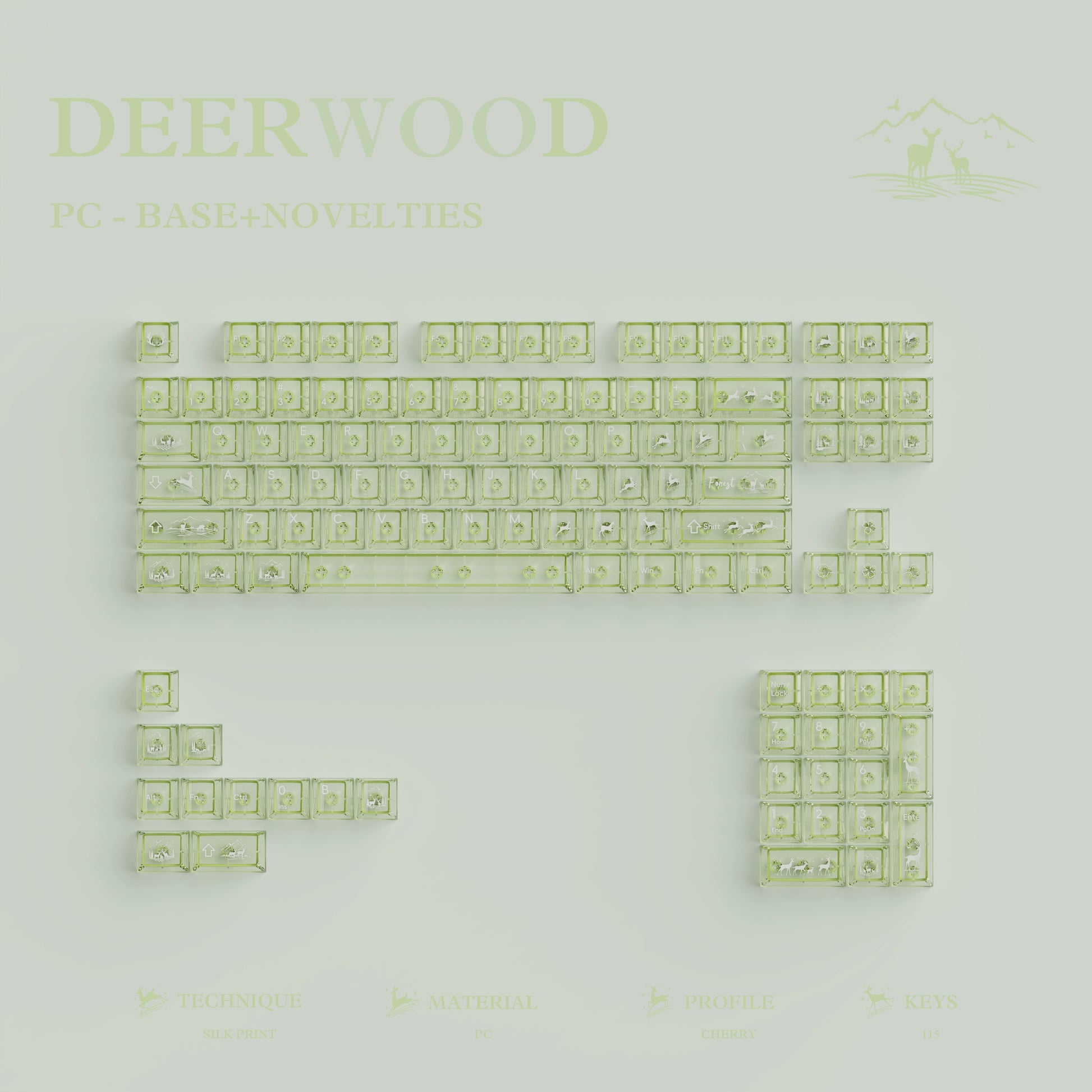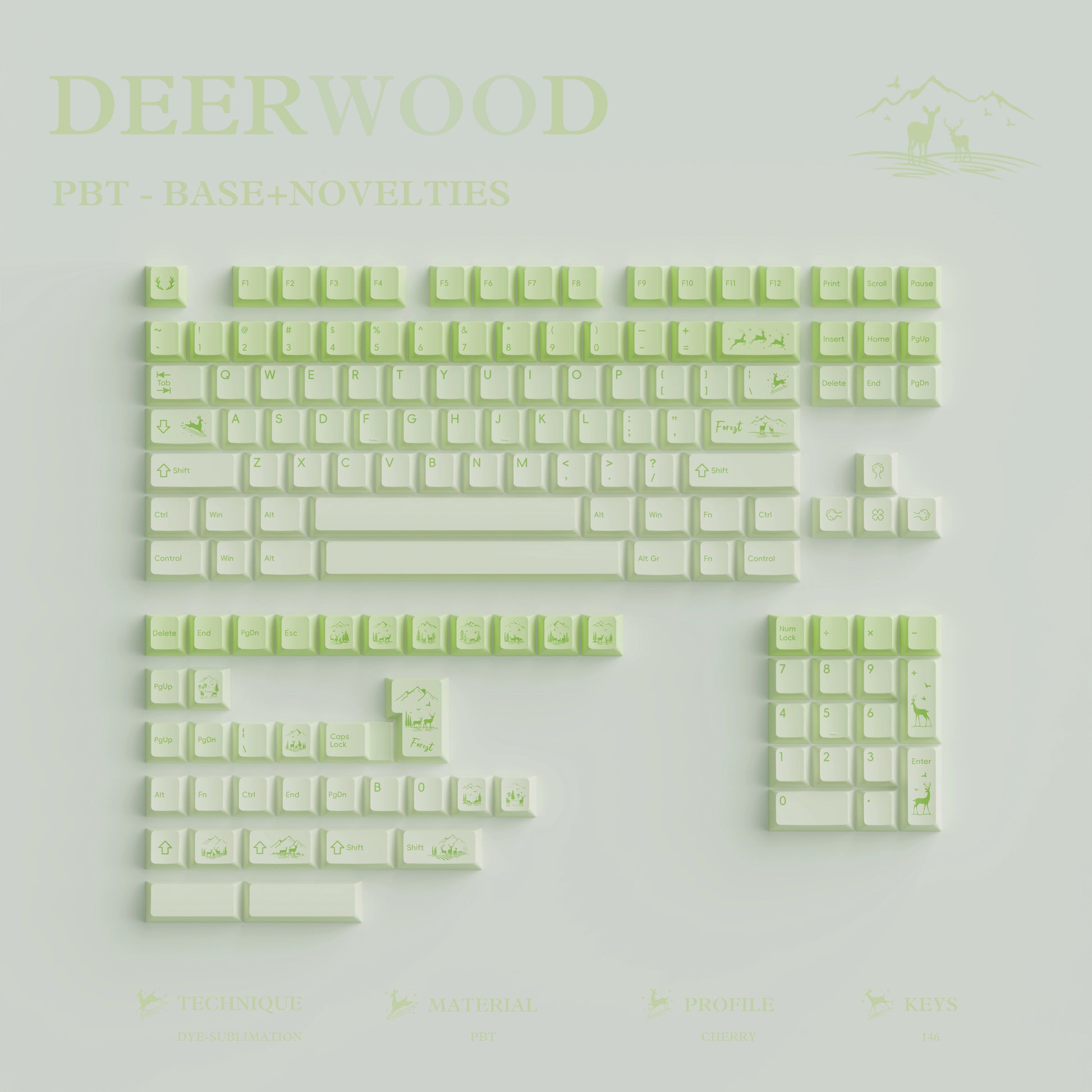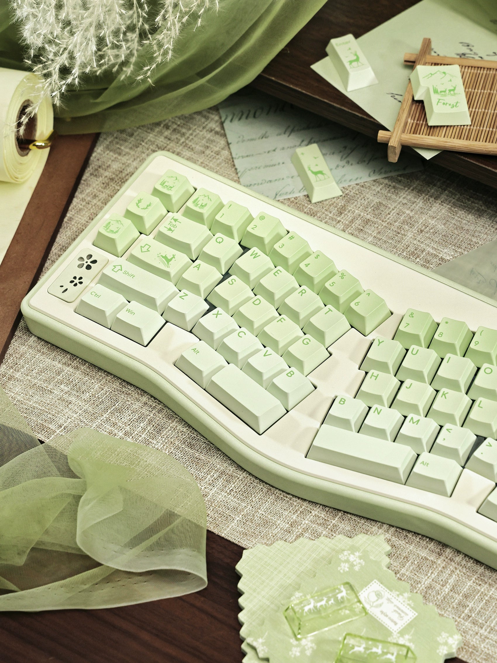 #0216 Fresh Green Dearwood Whisper Keycap Set Cherry Profile PBT146+PC115 (not including keyboard)