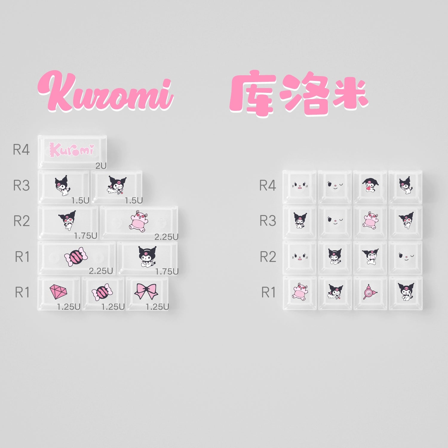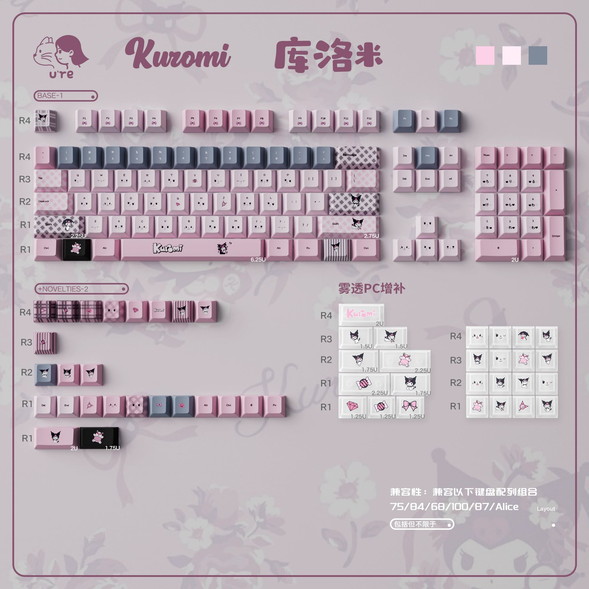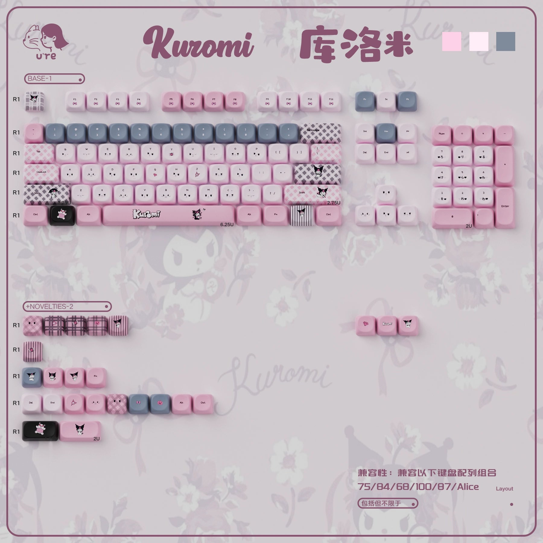 #0234 Kuromi Theme Grey Pink Keycap PBT + PC CHERRY/MOA Profile Designed By URE(not including keyboard))
