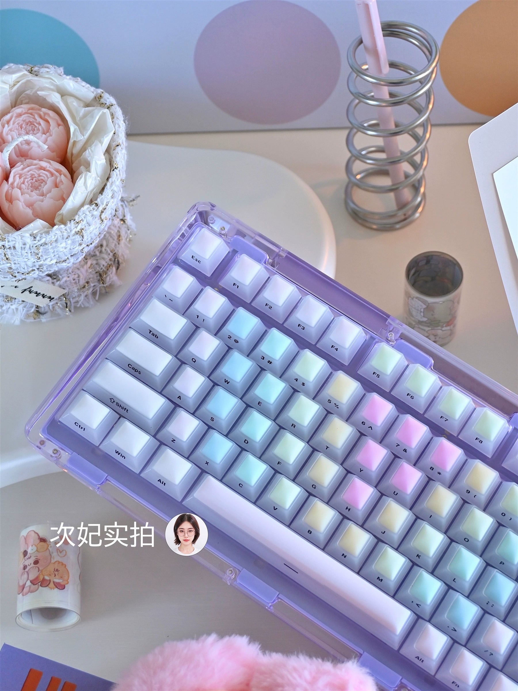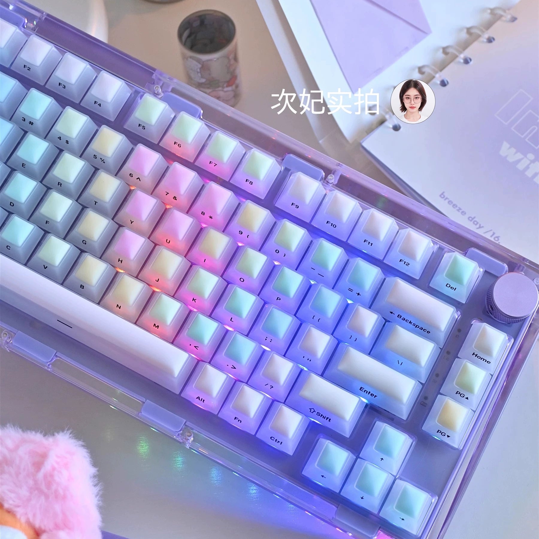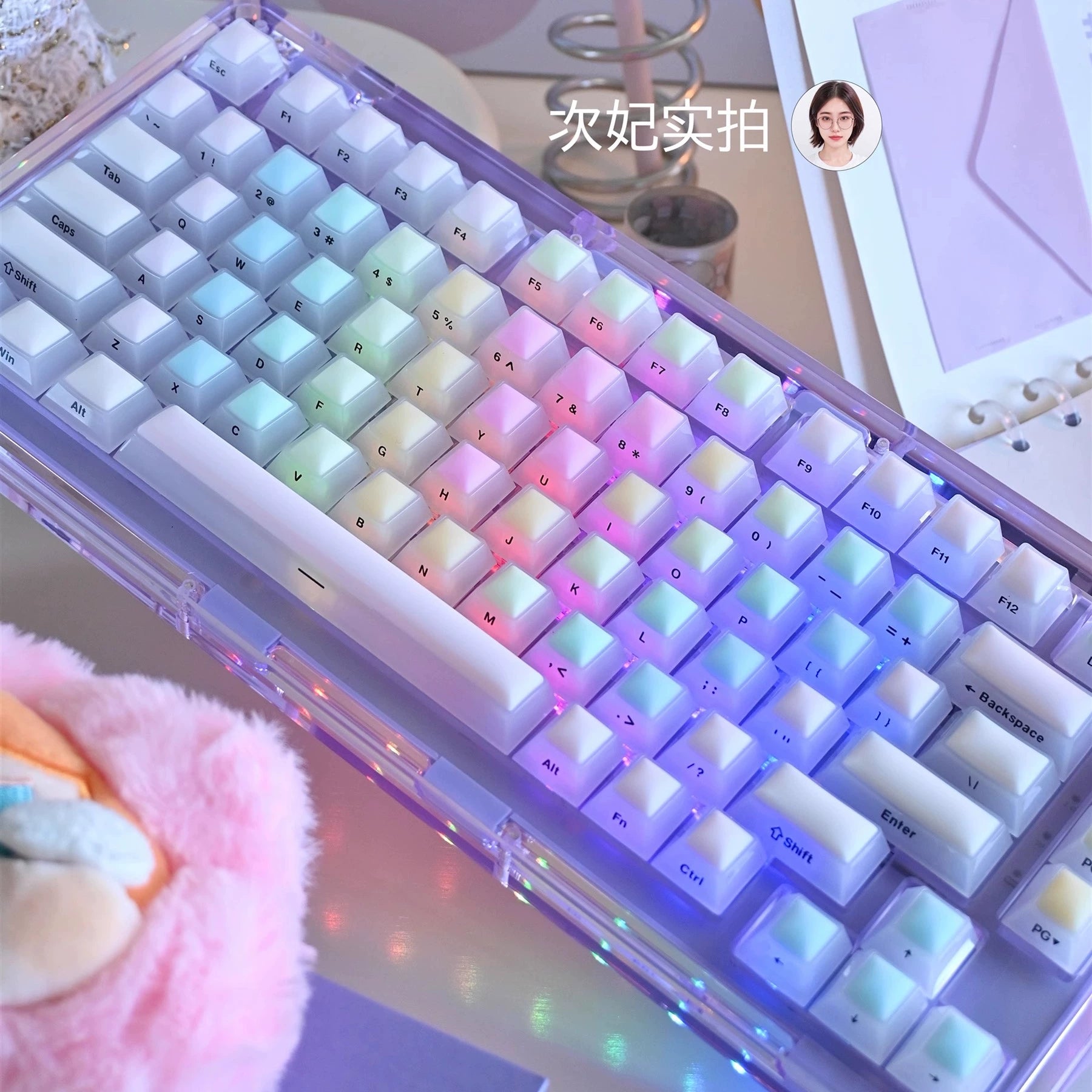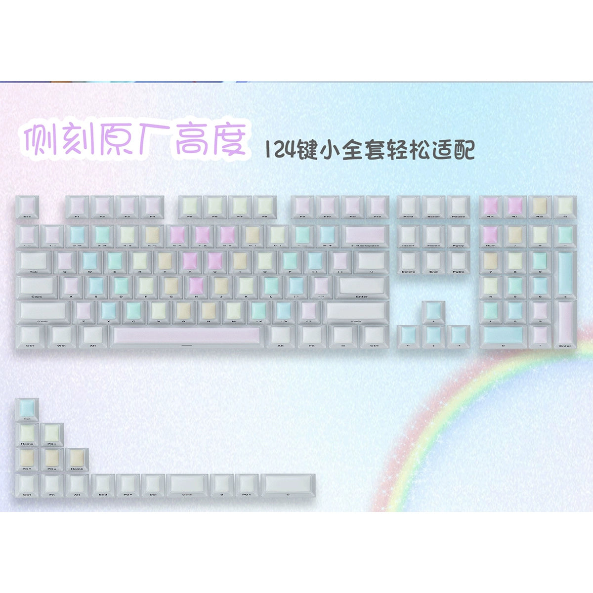 114 Rainbow Fudge Keycaps Fog Clear Silicone Material Soft Bounce Cute Keycaps Cherry Profile 124-key Side-print