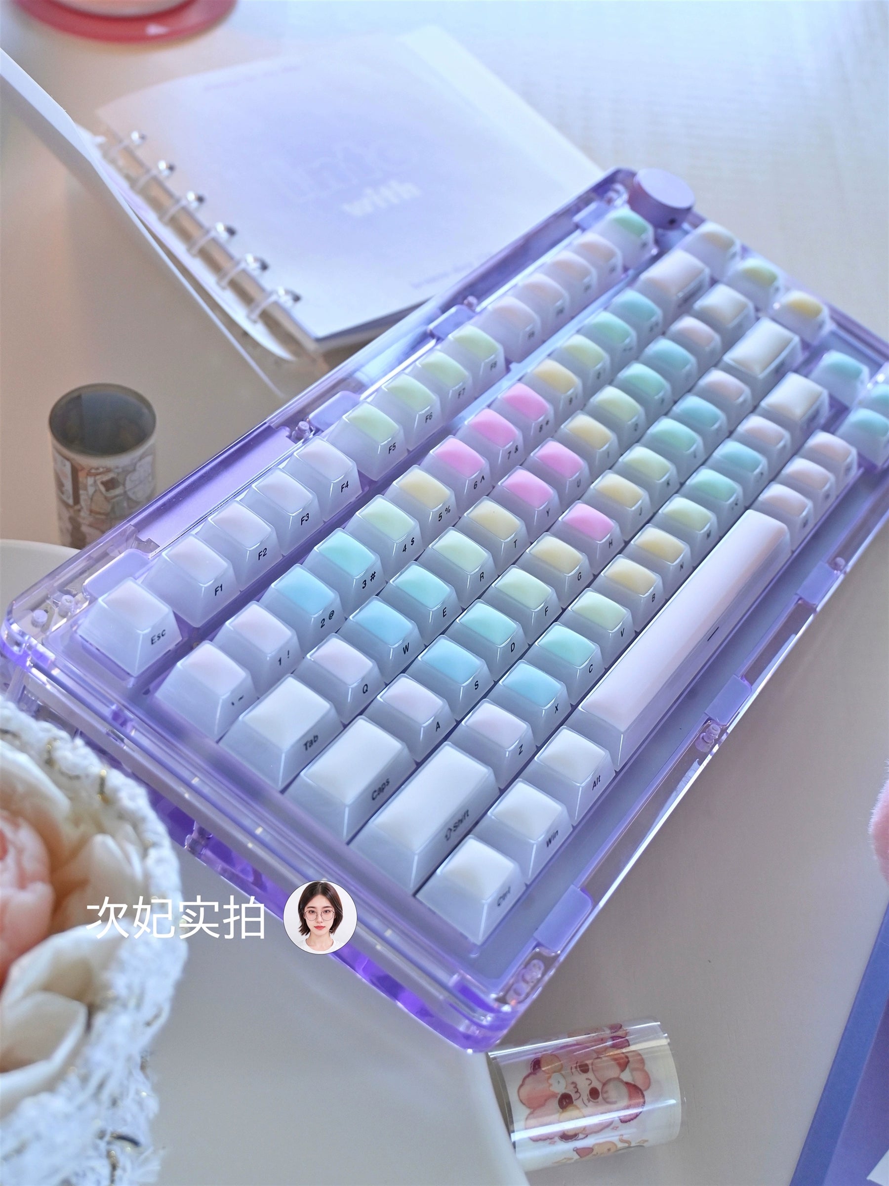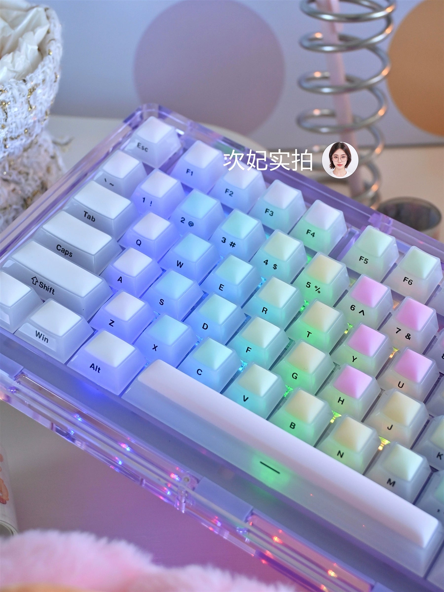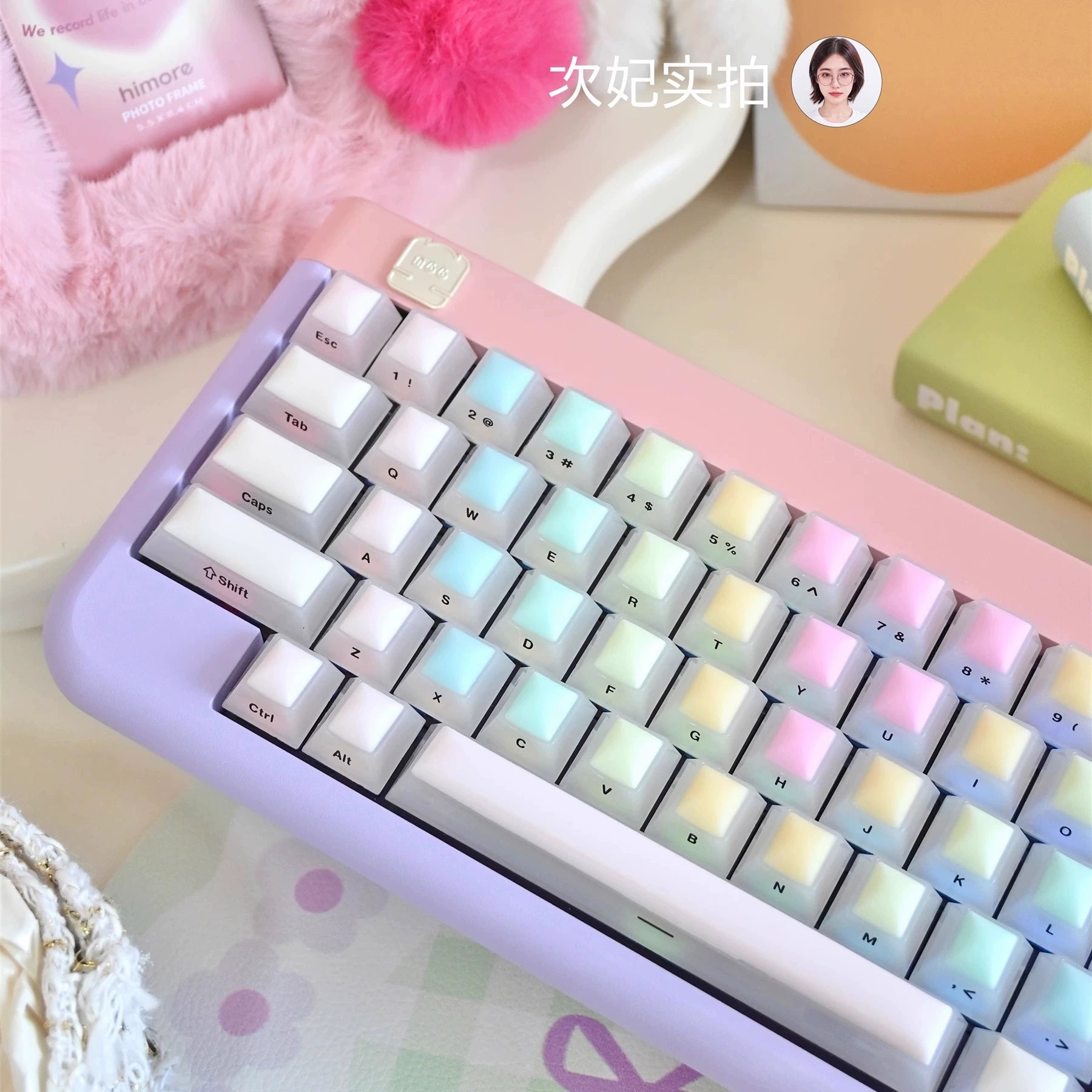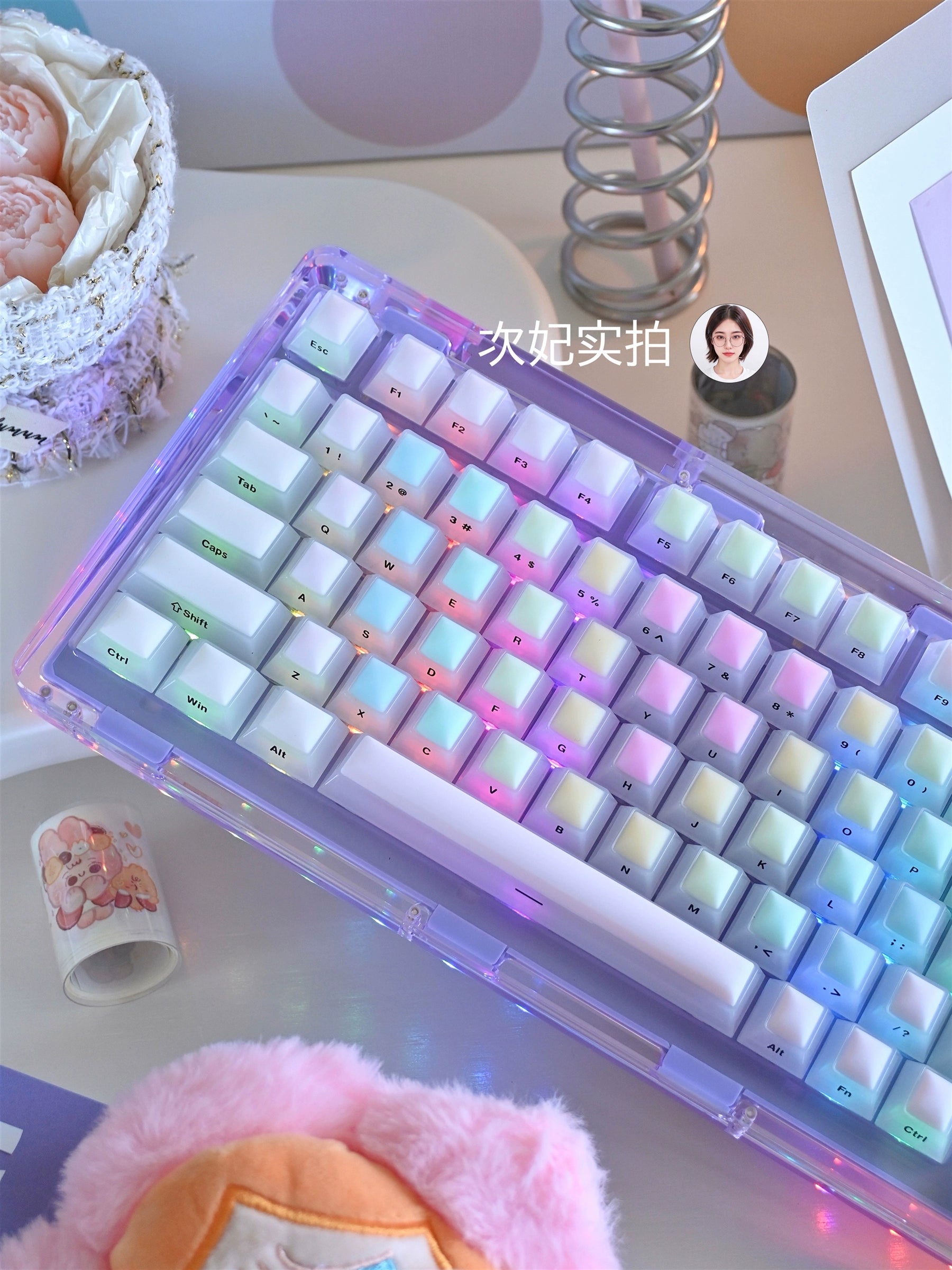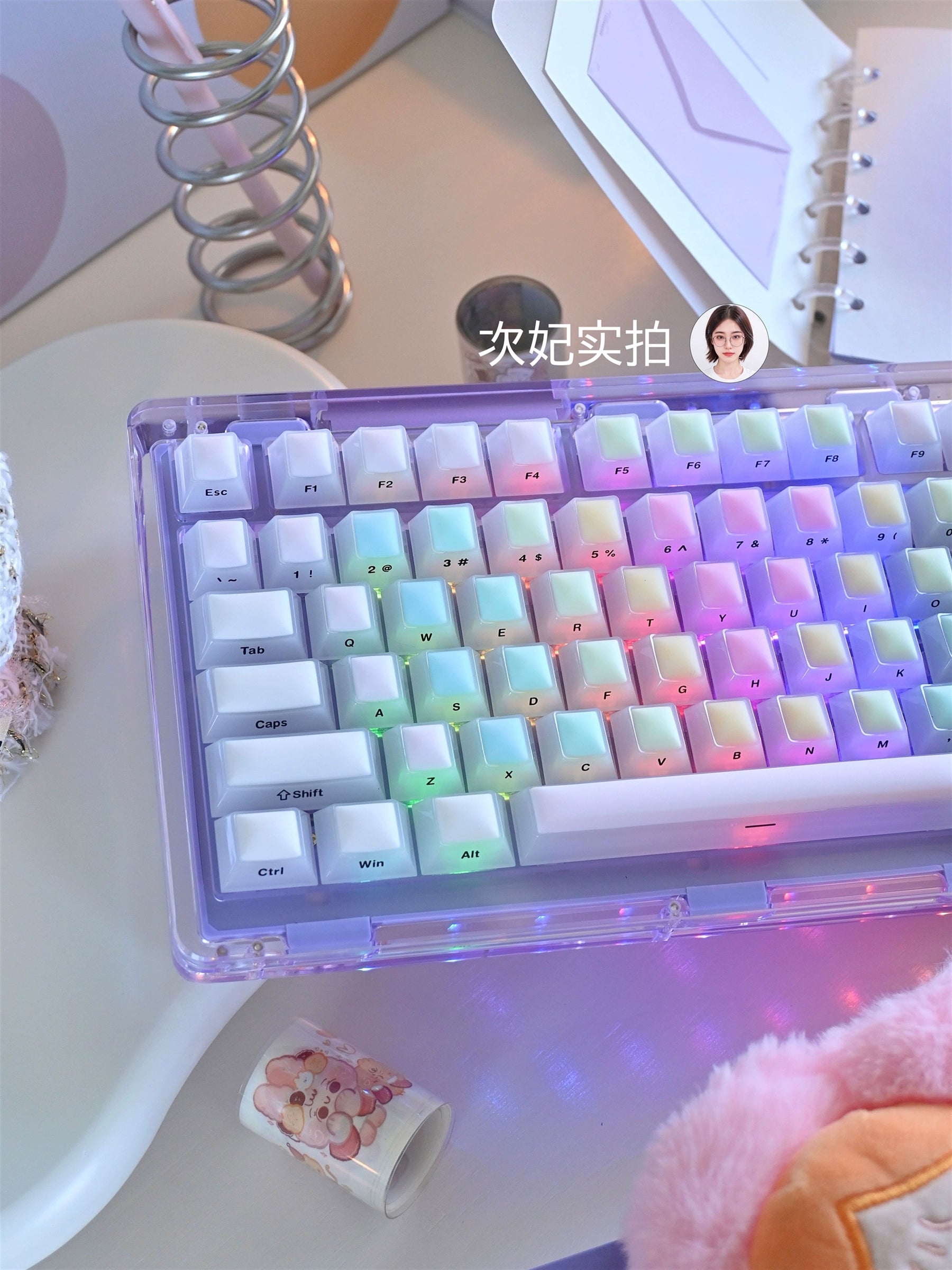 114 Rainbow Fudge Keycaps Fog Clear Silicone Material Soft Bounce Cute Keycaps Cherry Profile 124-key Side-print