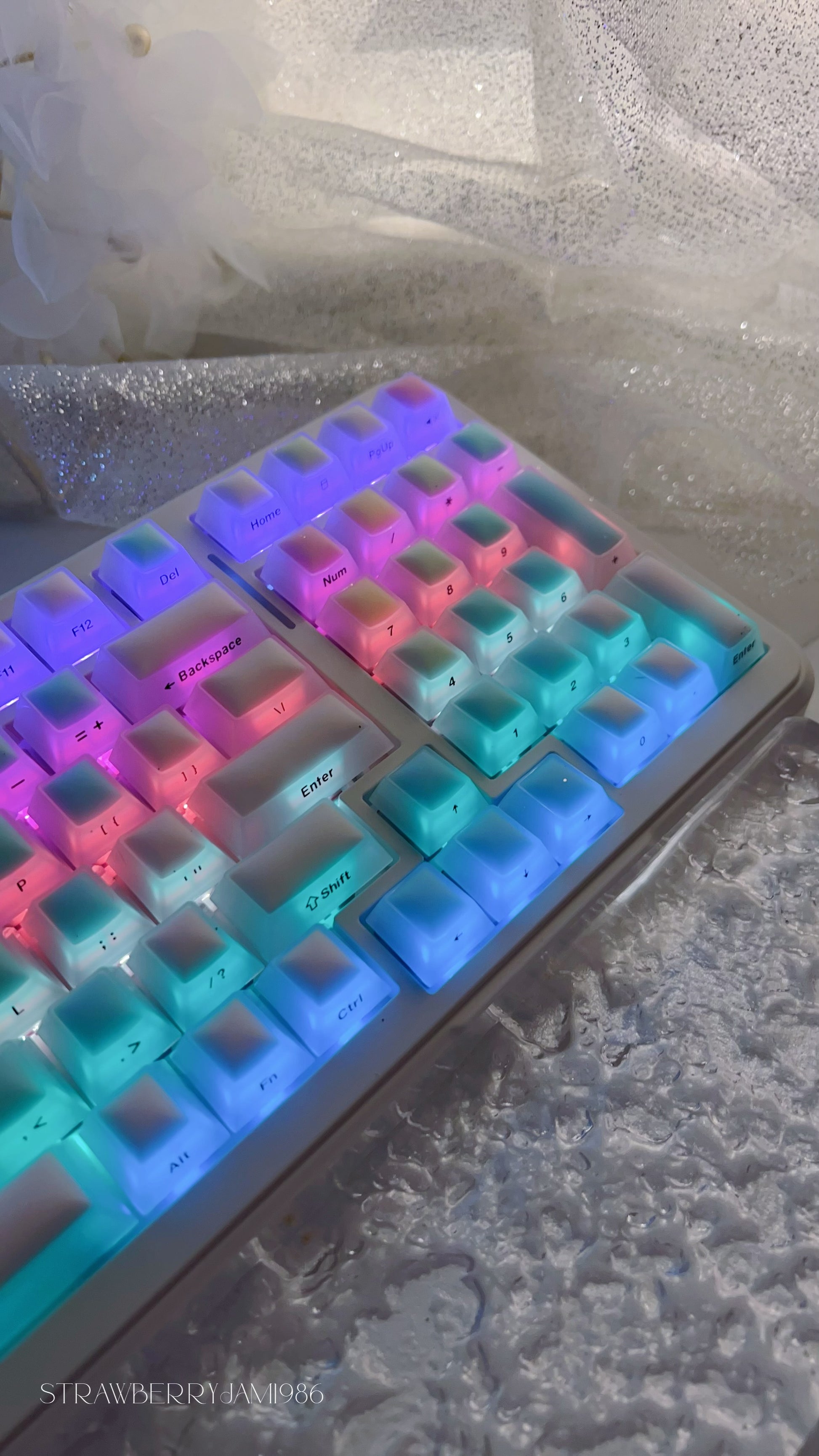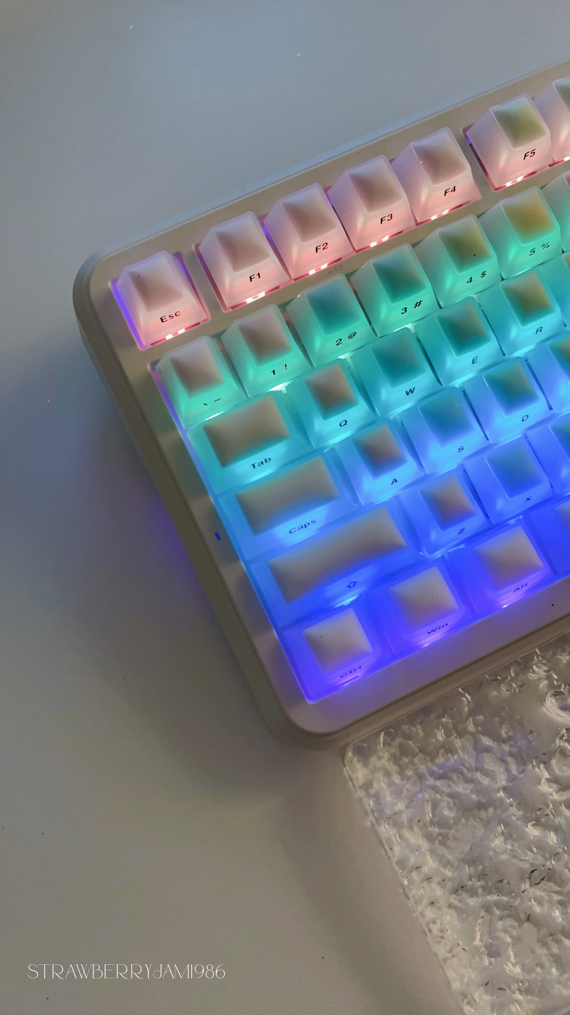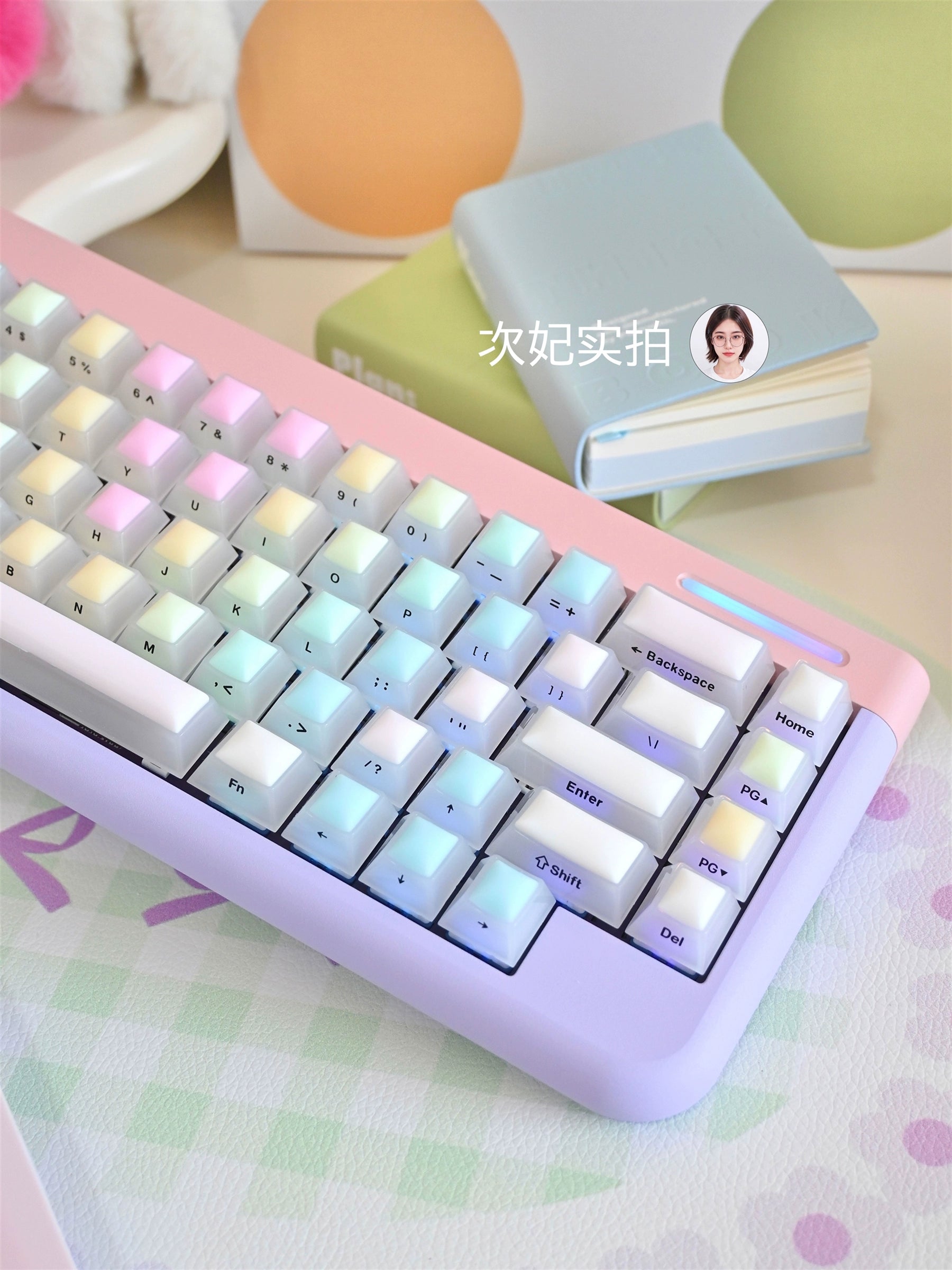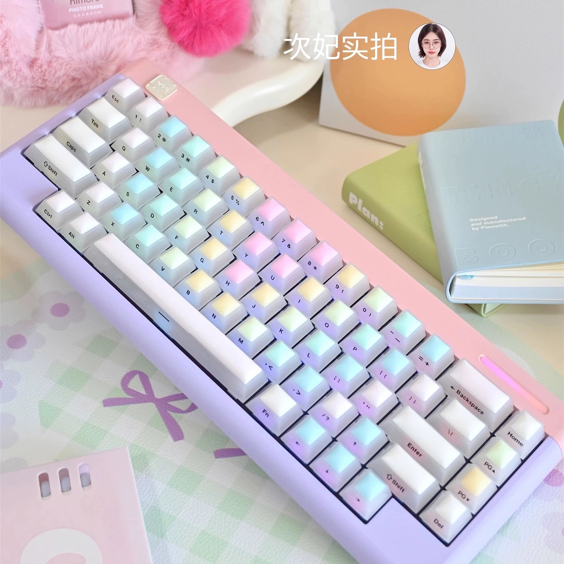 114 Rainbow Fudge Keycaps Fog Clear Silicone Material Soft Bounce Cute Keycaps Cherry Profile 124-key Side-print