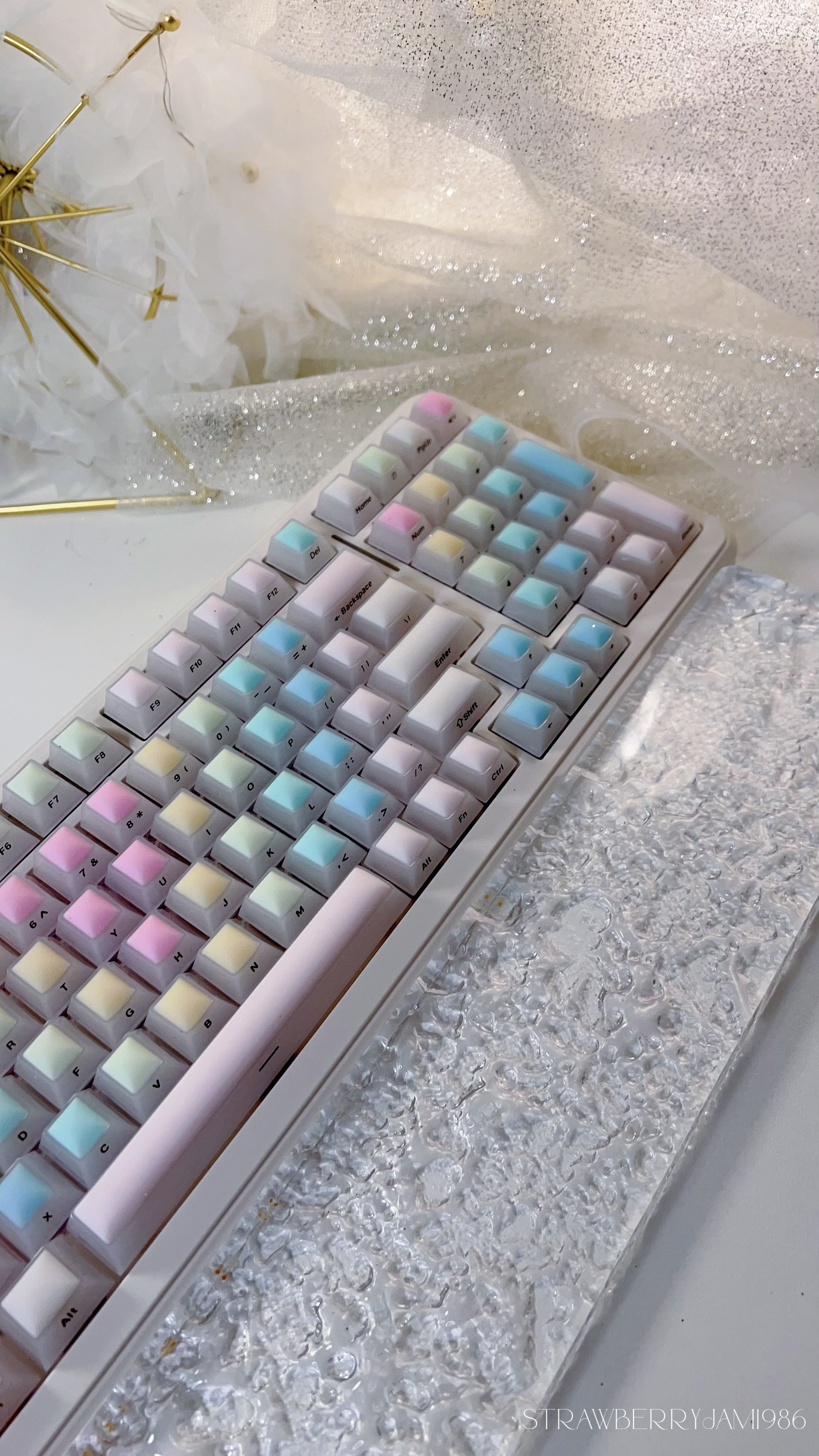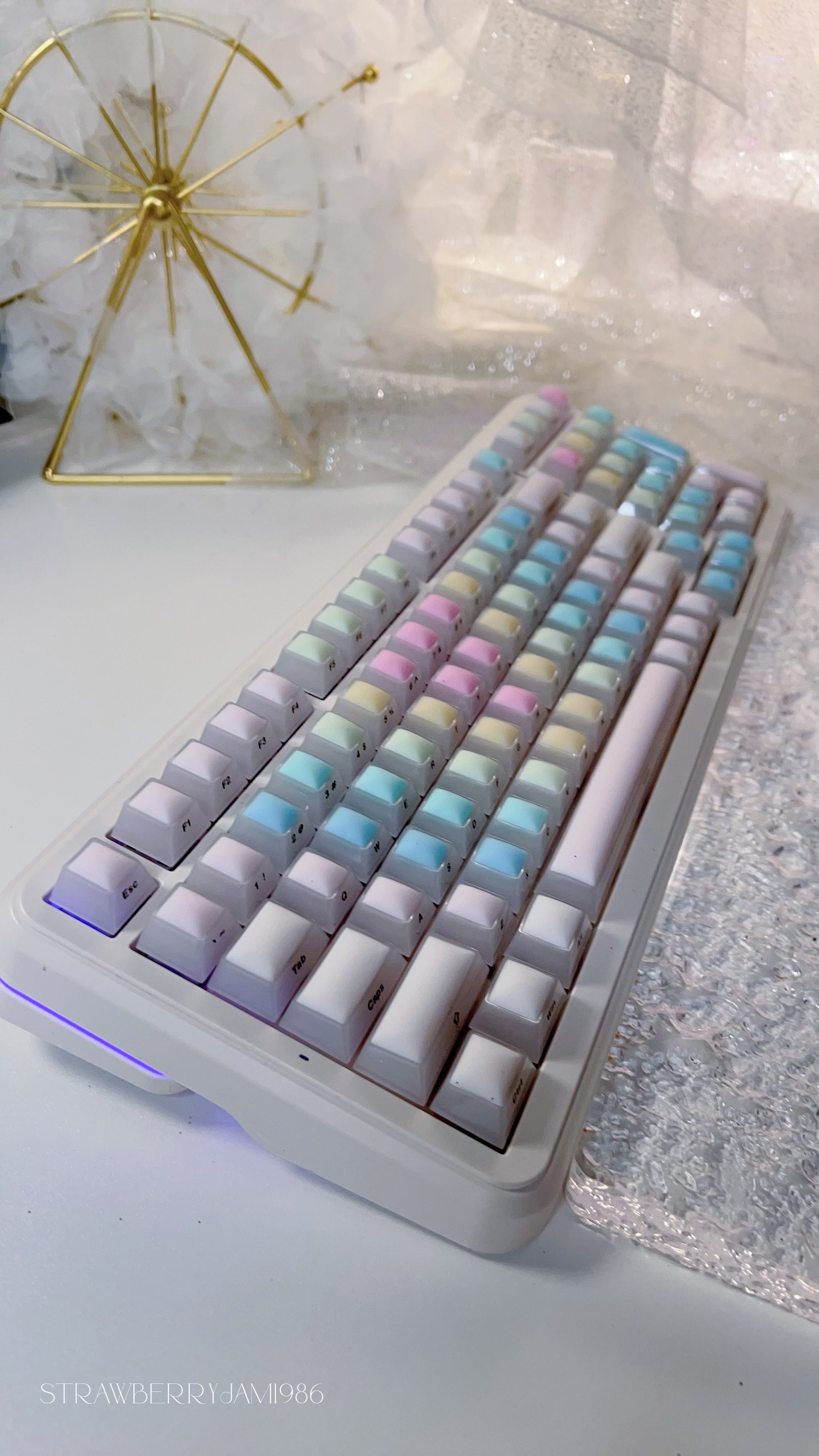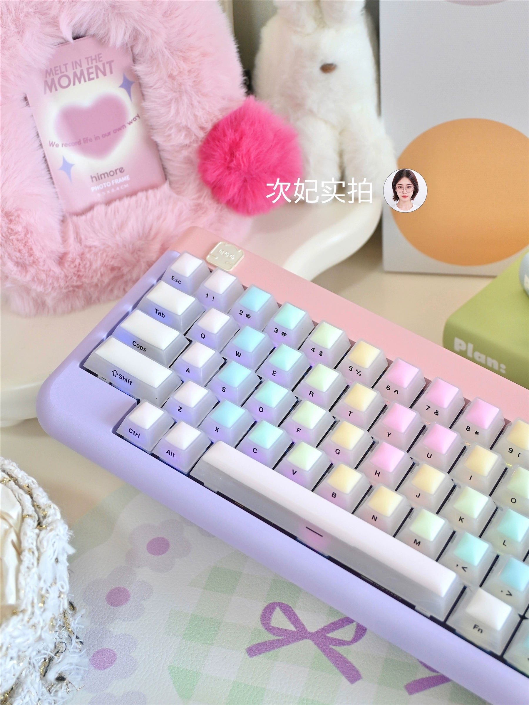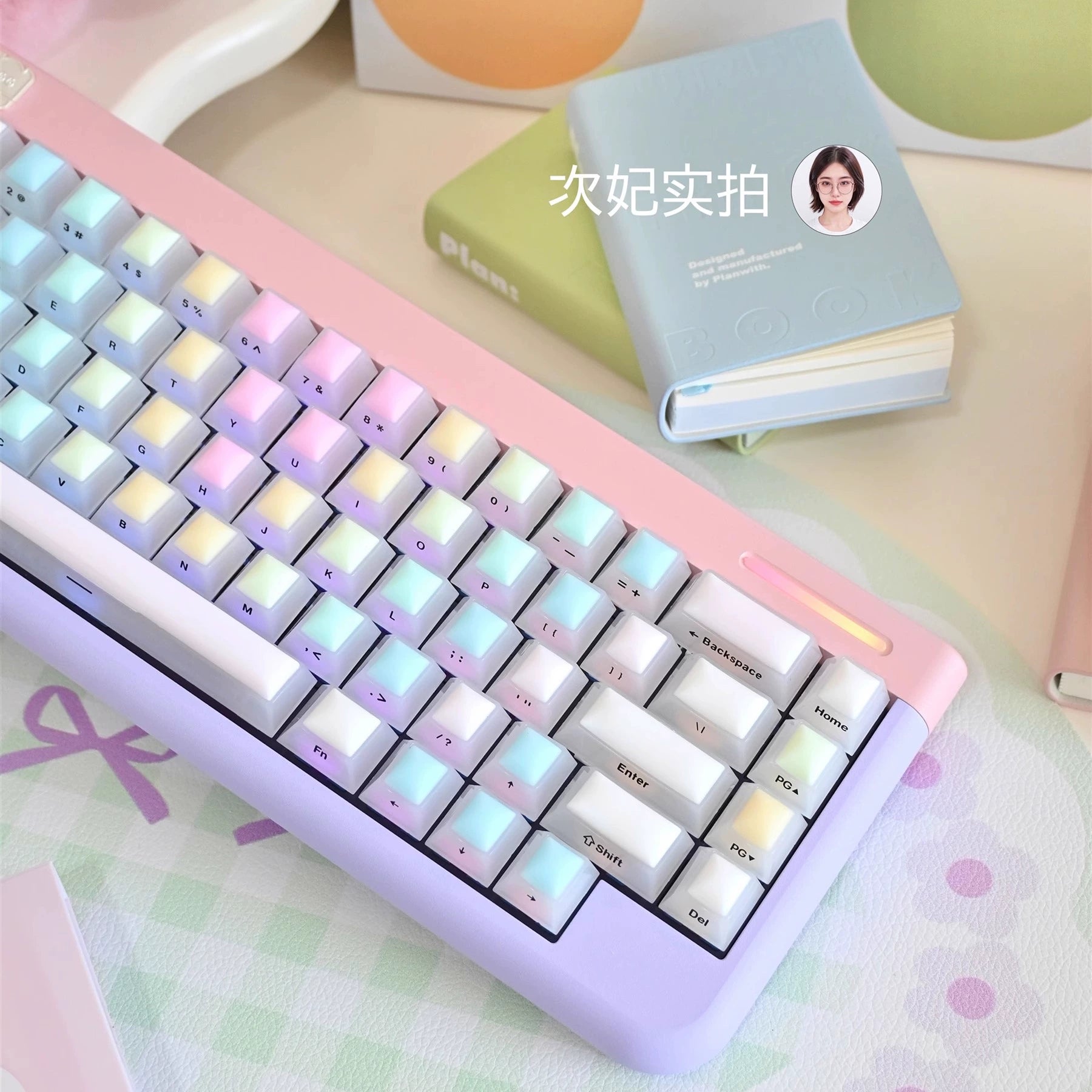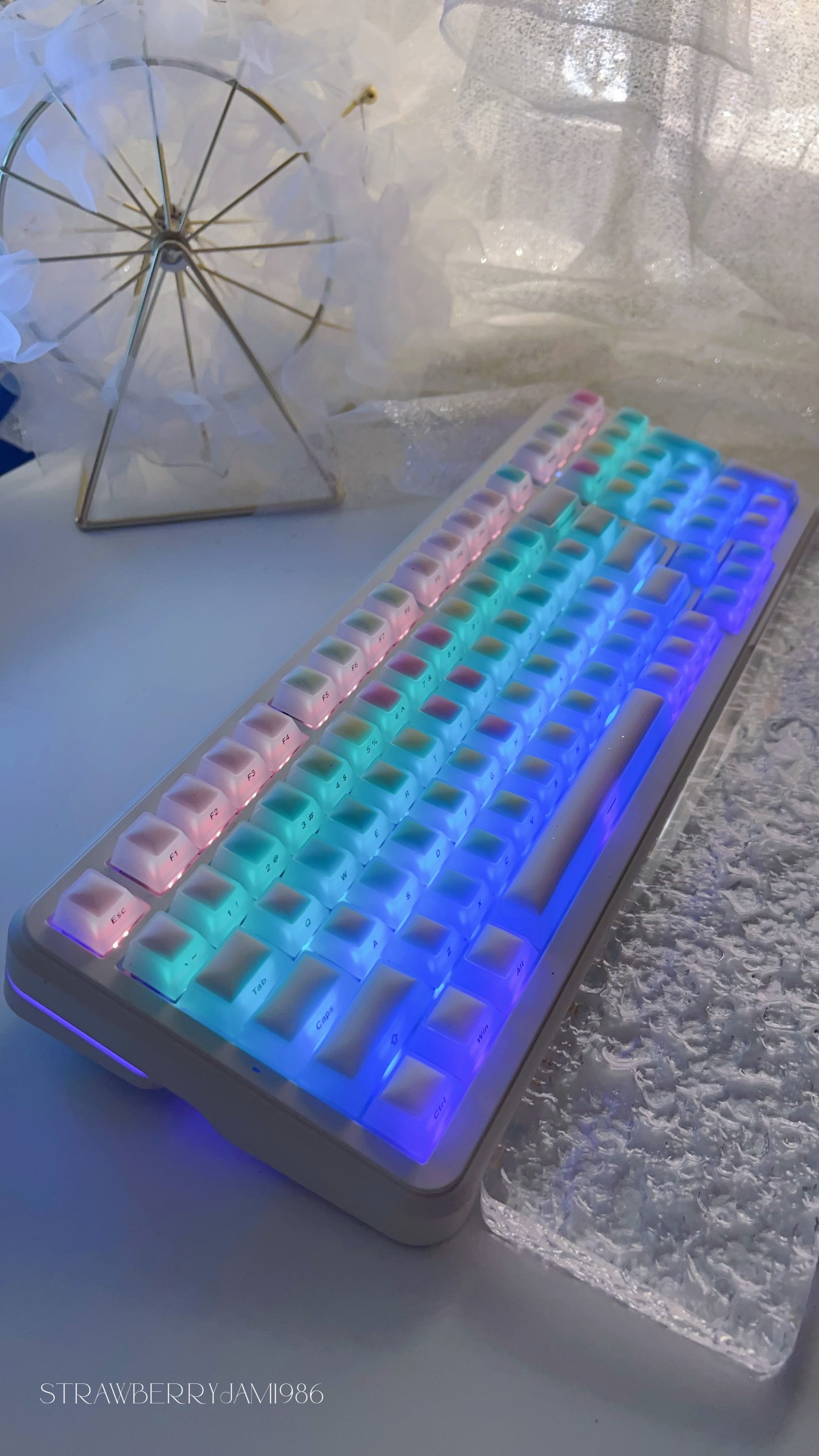 114 Rainbow Fudge Keycaps Fog Clear Silicone Material Soft Bounce Cute Keycaps Cherry Profile 124-key Side-print