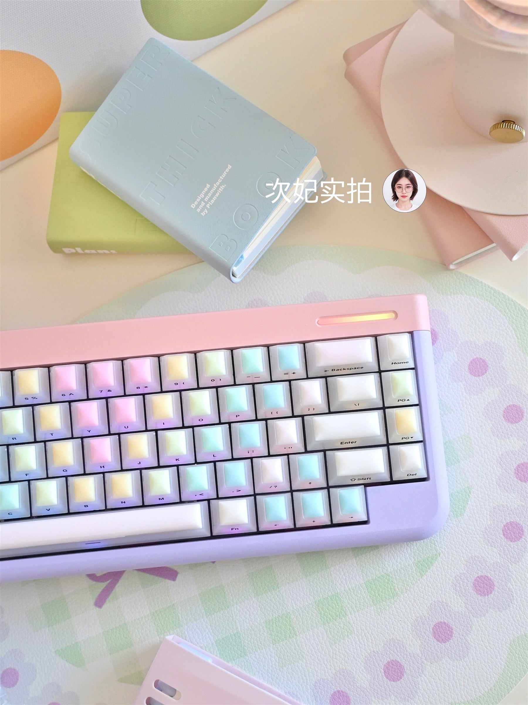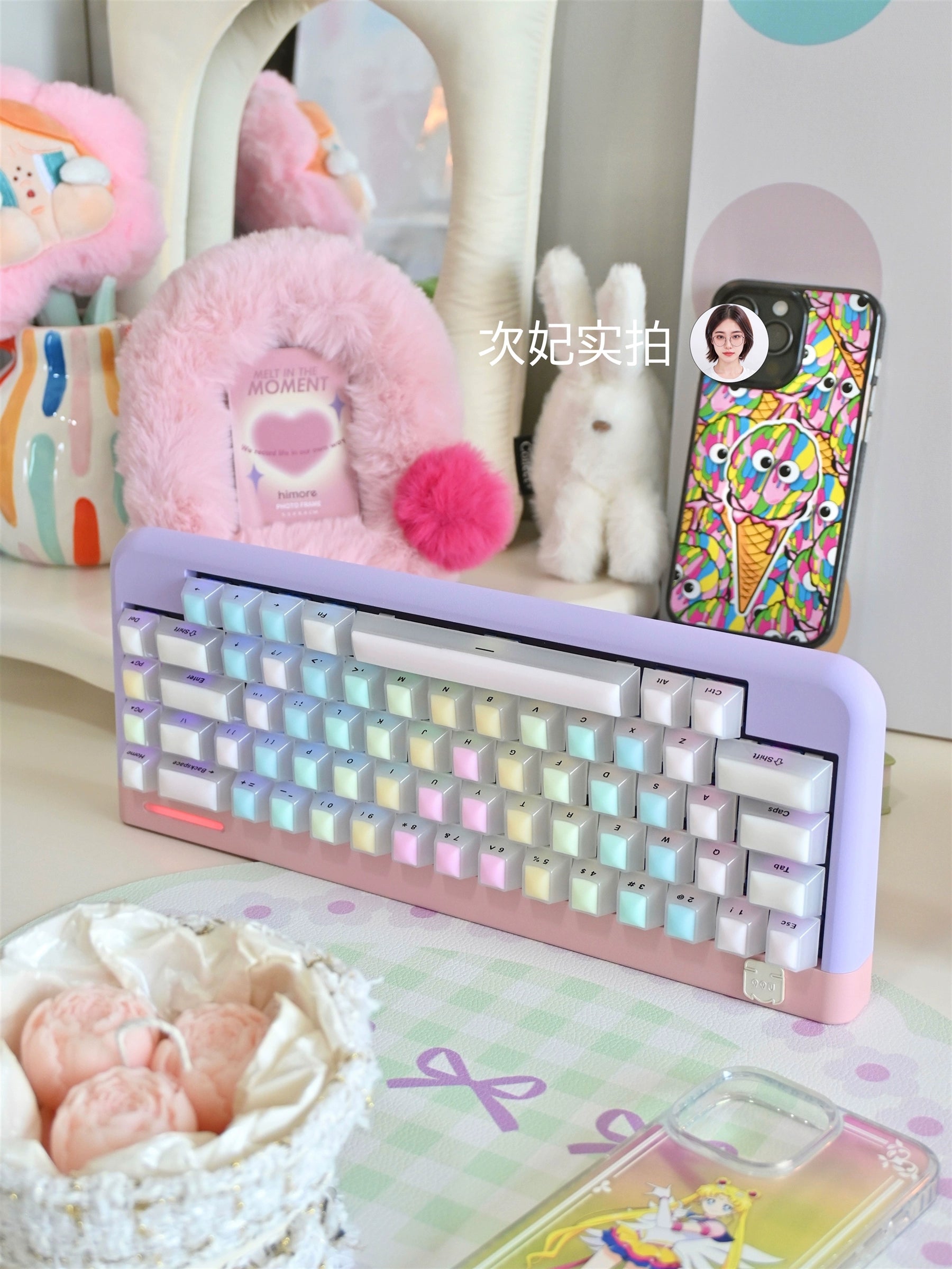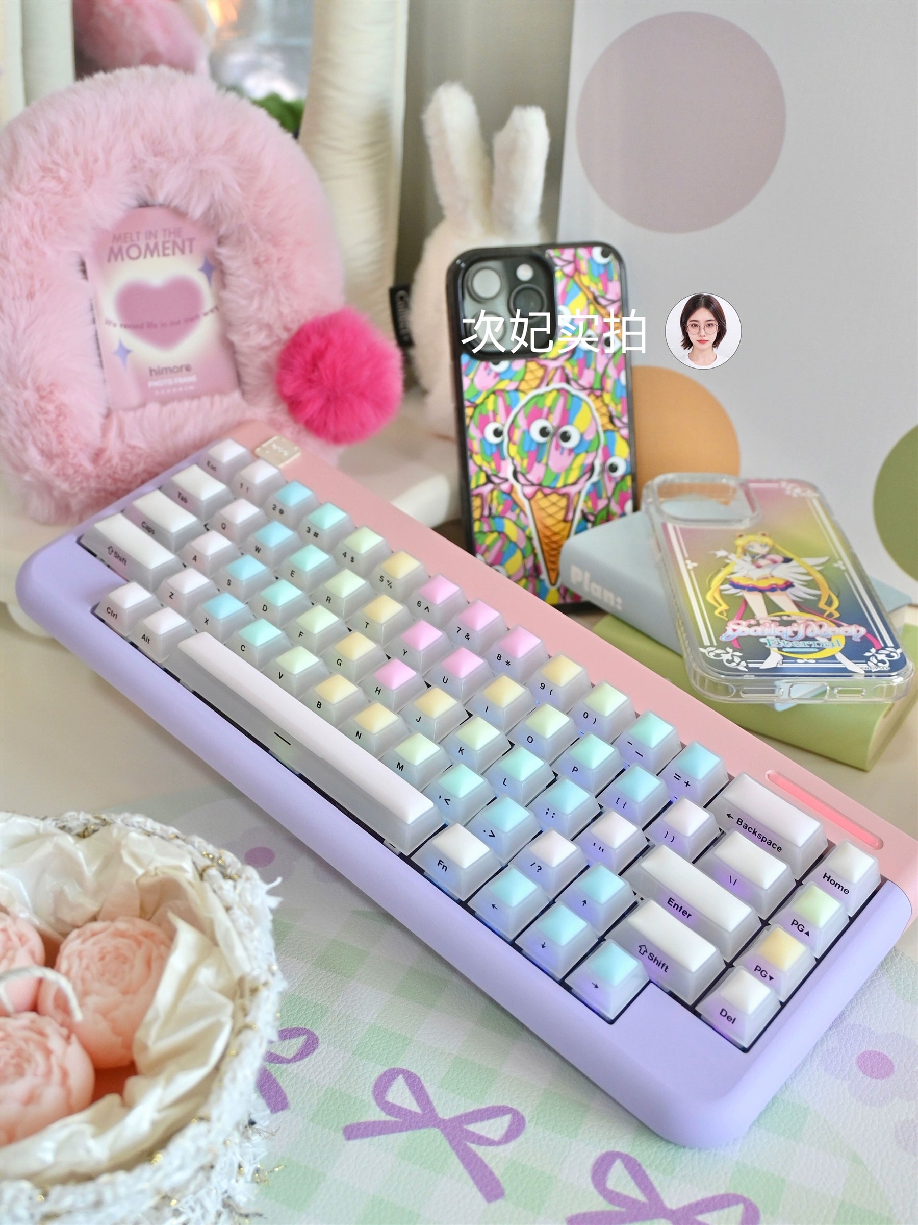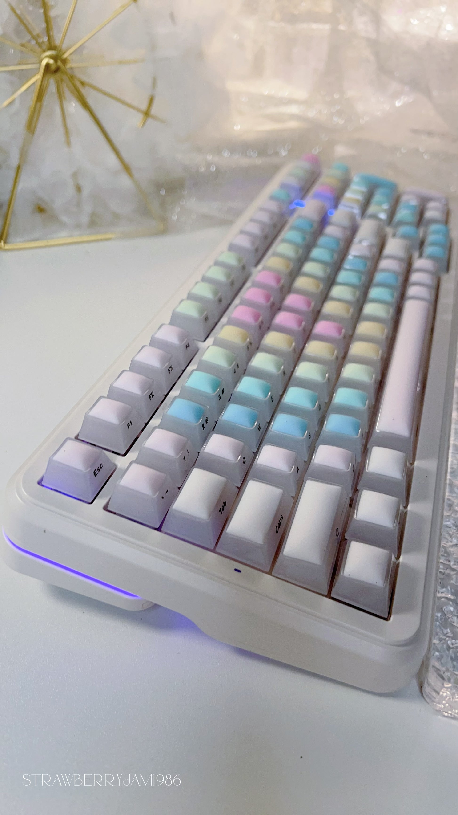 114 Rainbow Fudge Keycaps Fog Clear Silicone Material Soft Bounce Cute Keycaps Cherry Profile 124-key Side-print
