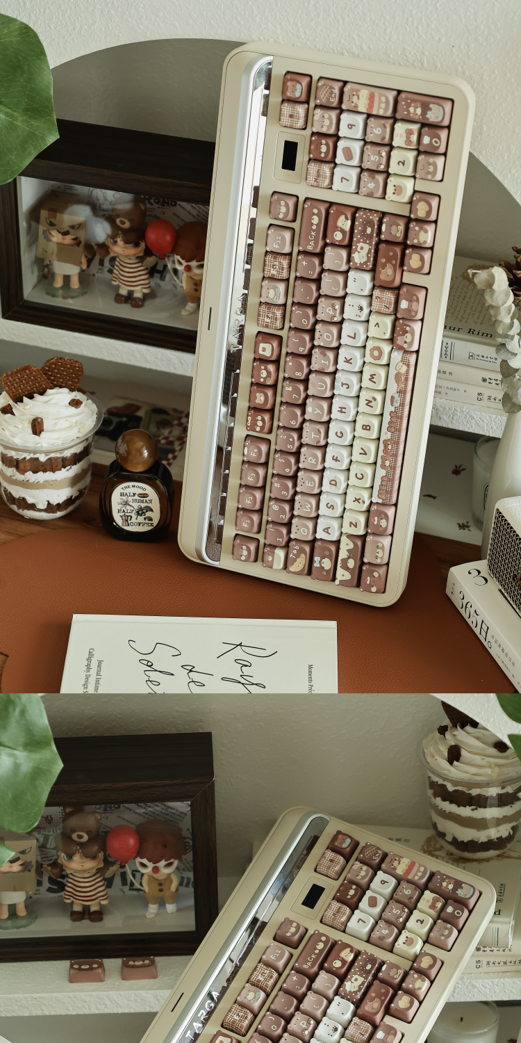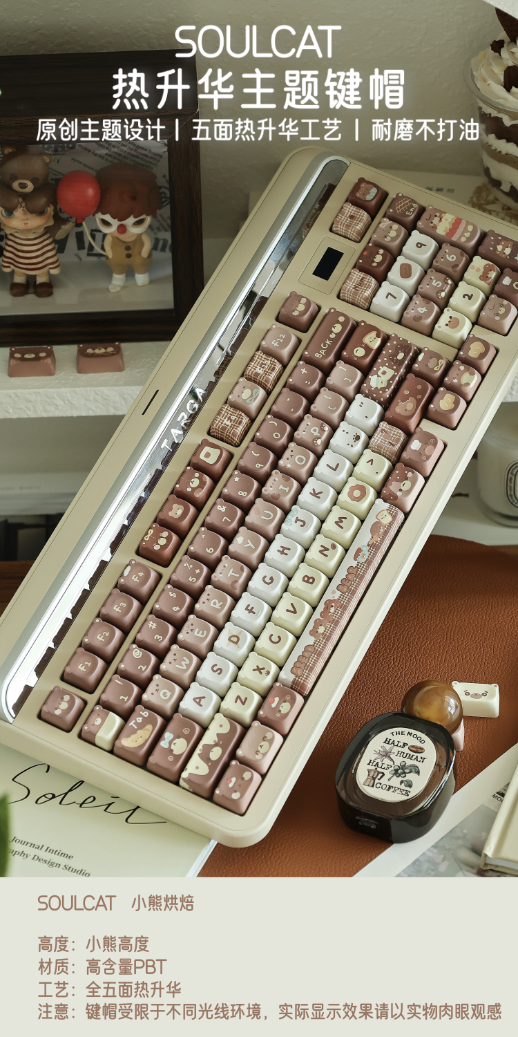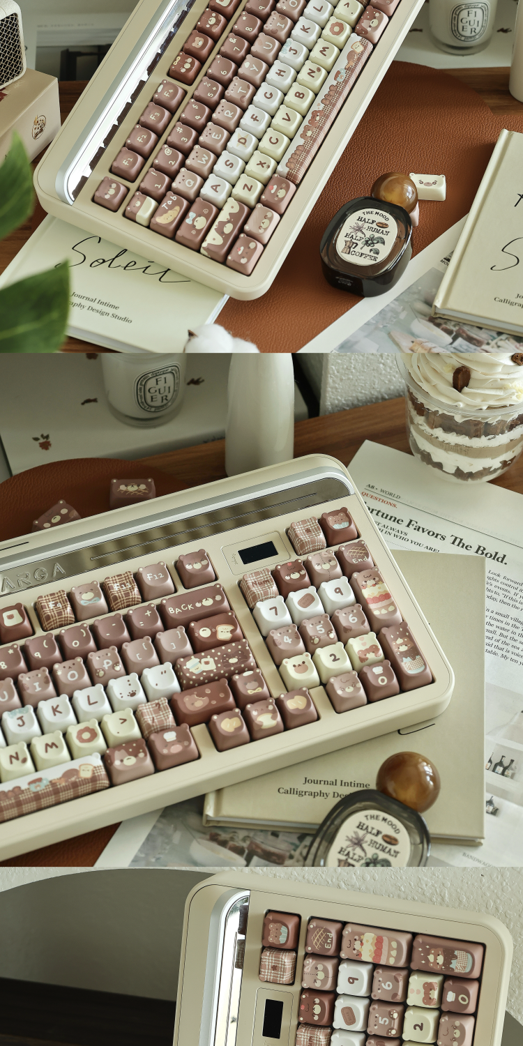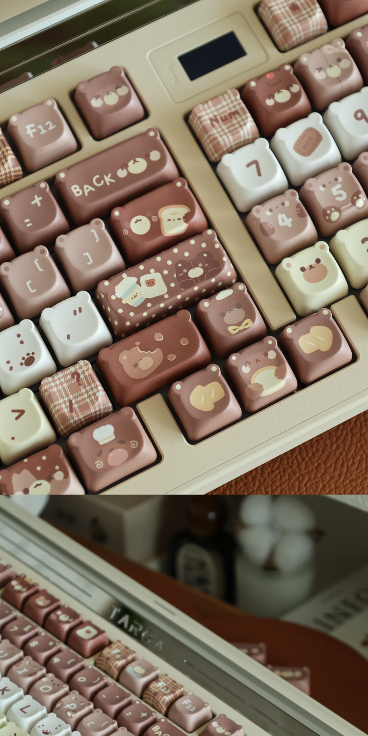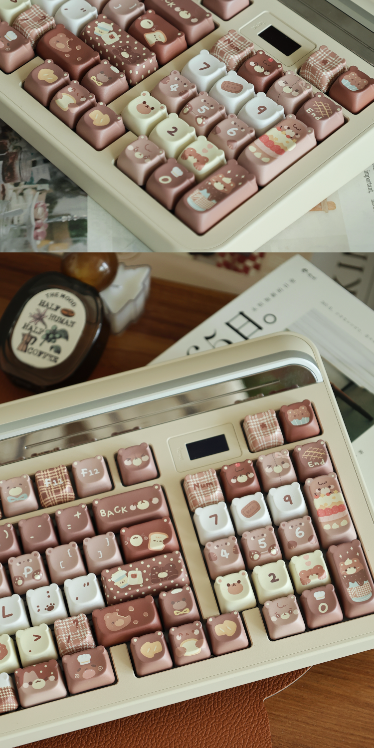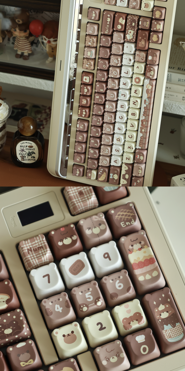 026 Brown Bear Baked Keycaps Cute and Round Skin-like Feel Designed By SOULCAT(not including keyboard)