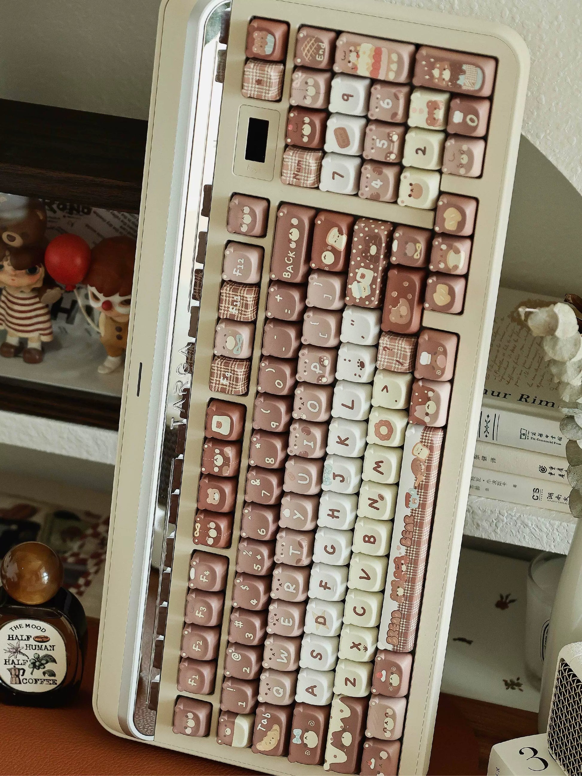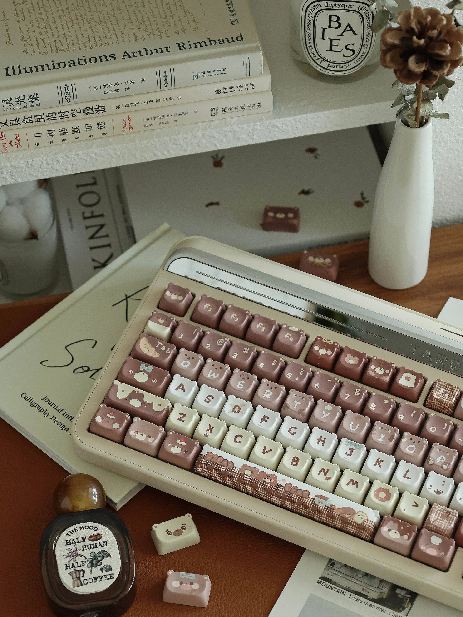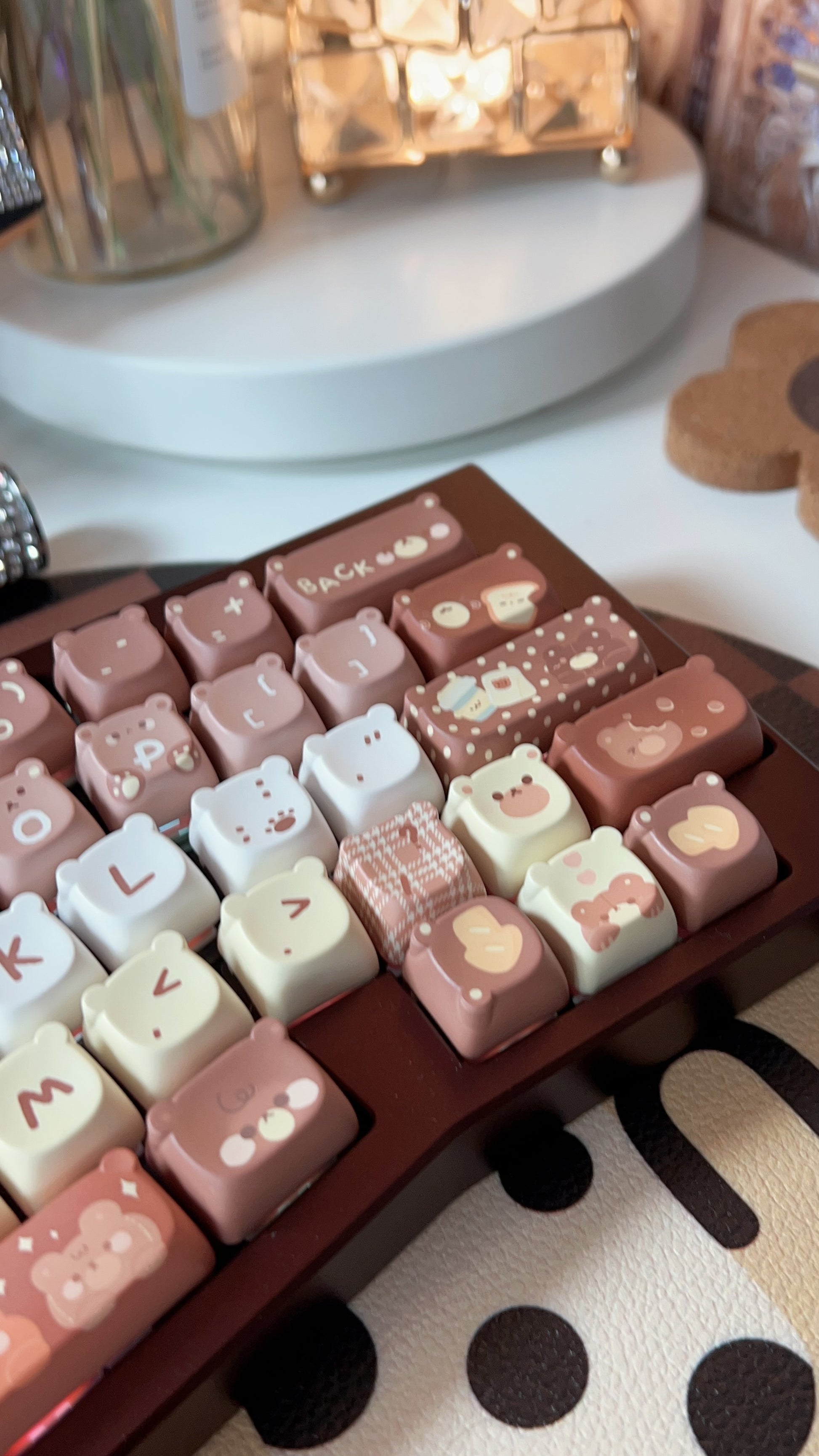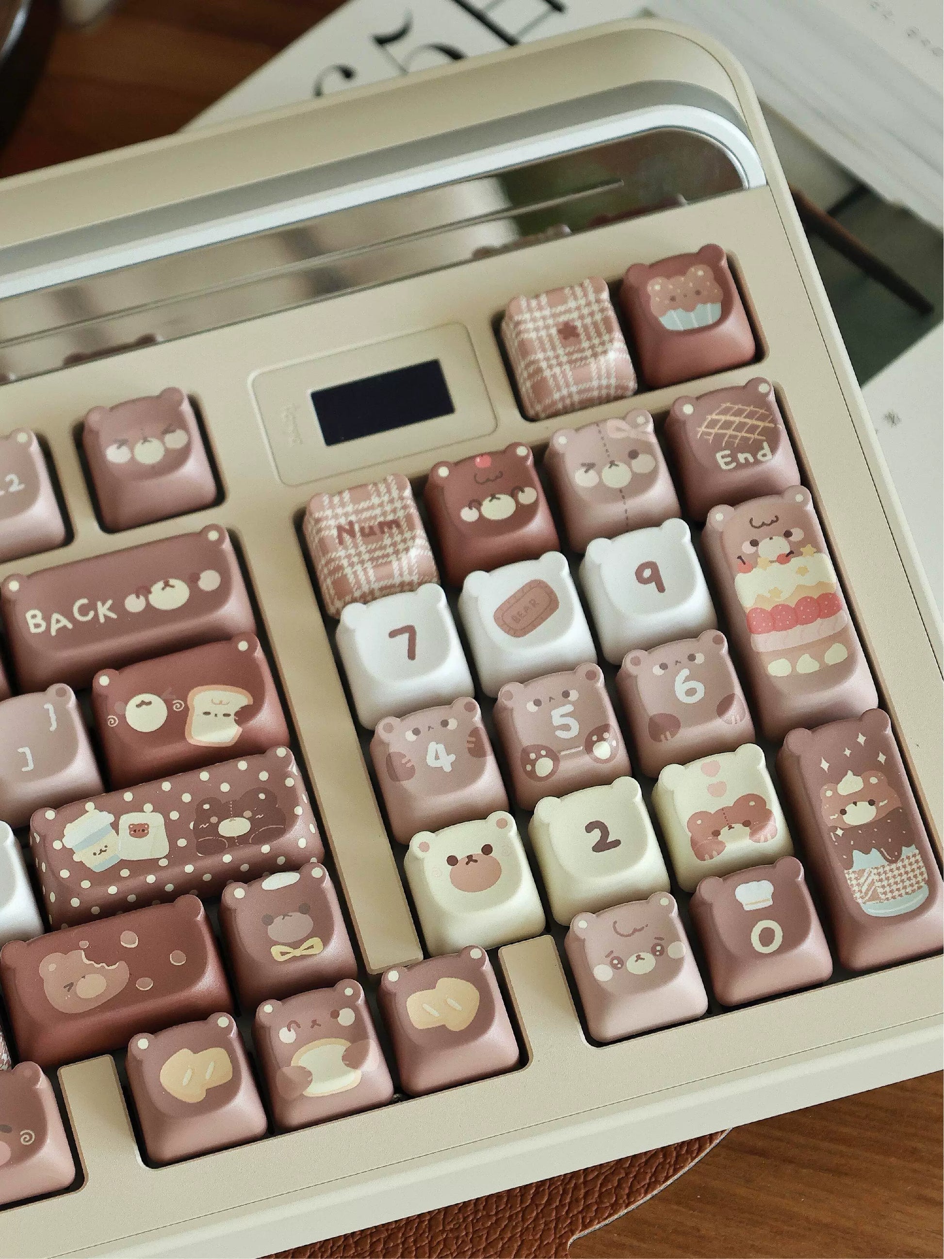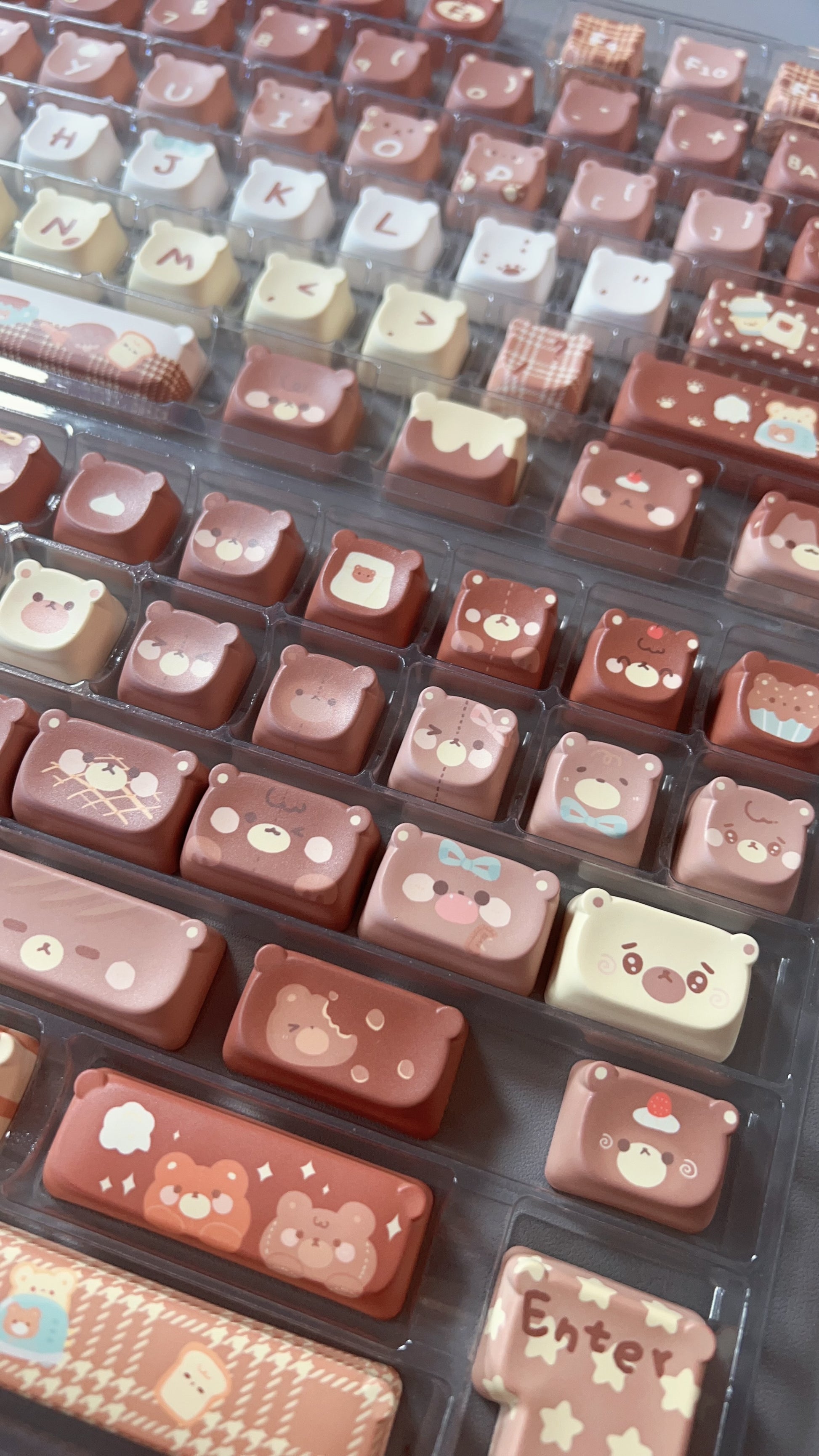 026 Brown Bear Baked Keycaps Cute and Round Skin-like Feel Designed By SOULCAT(not including keyboard)