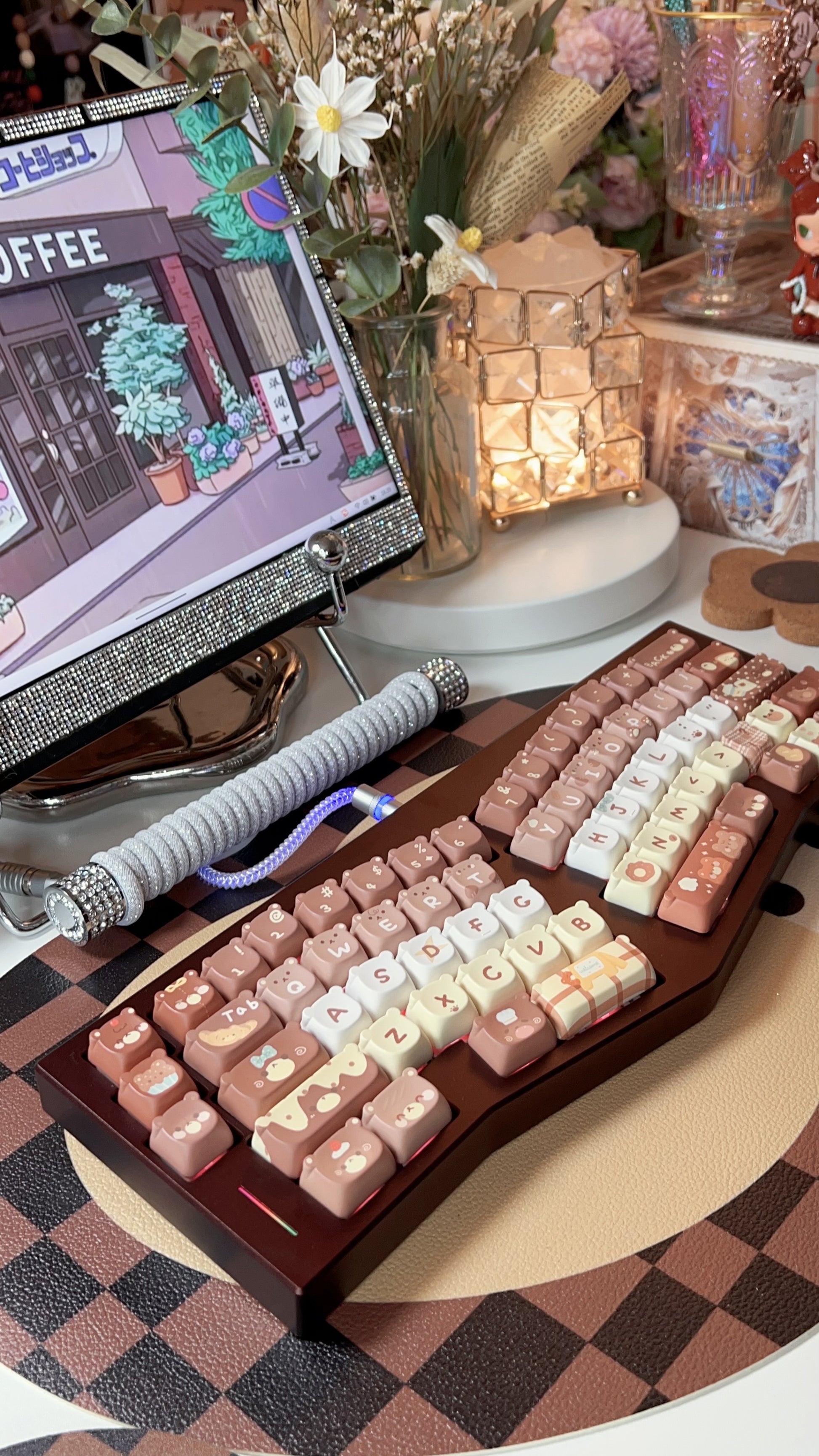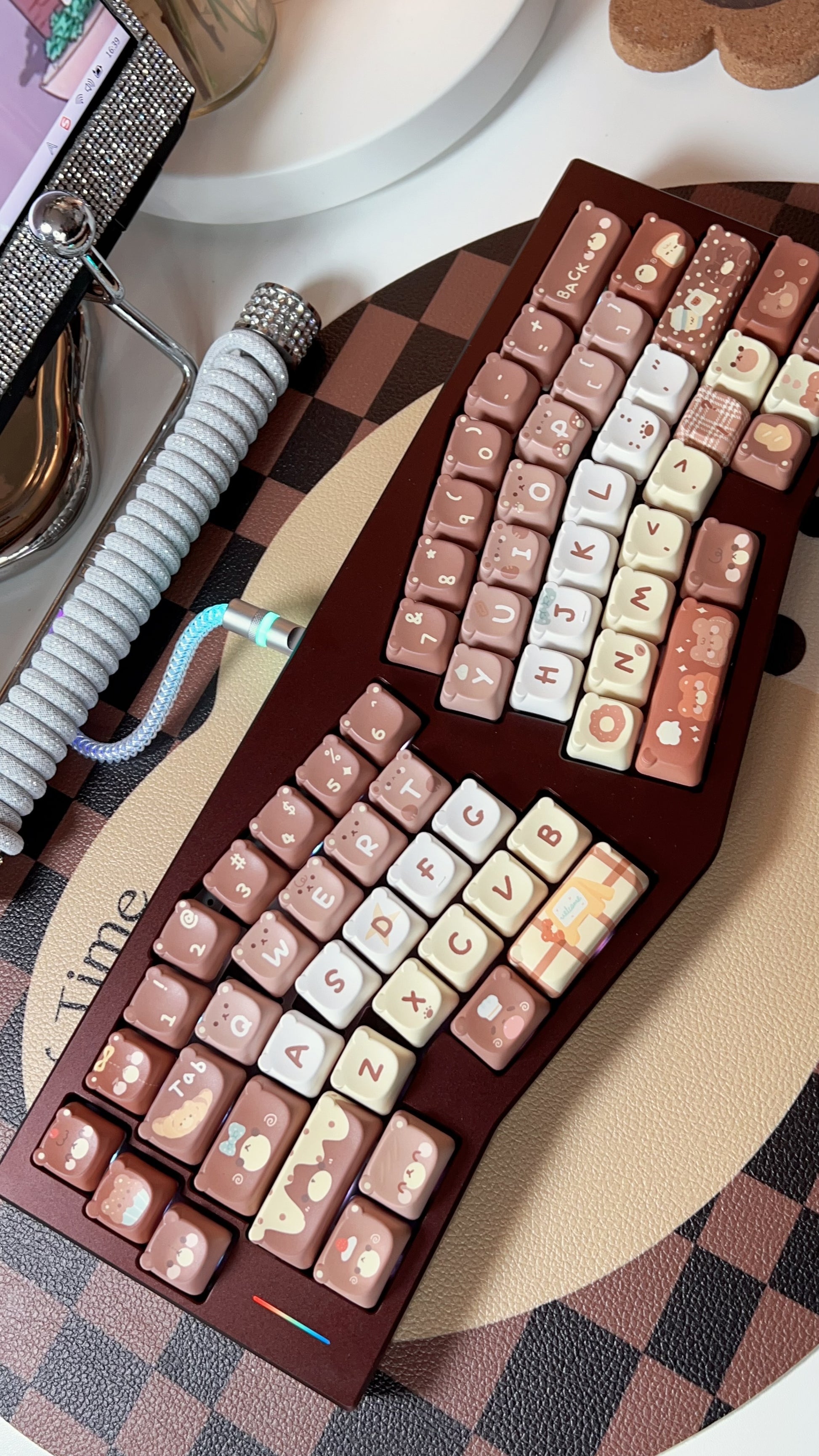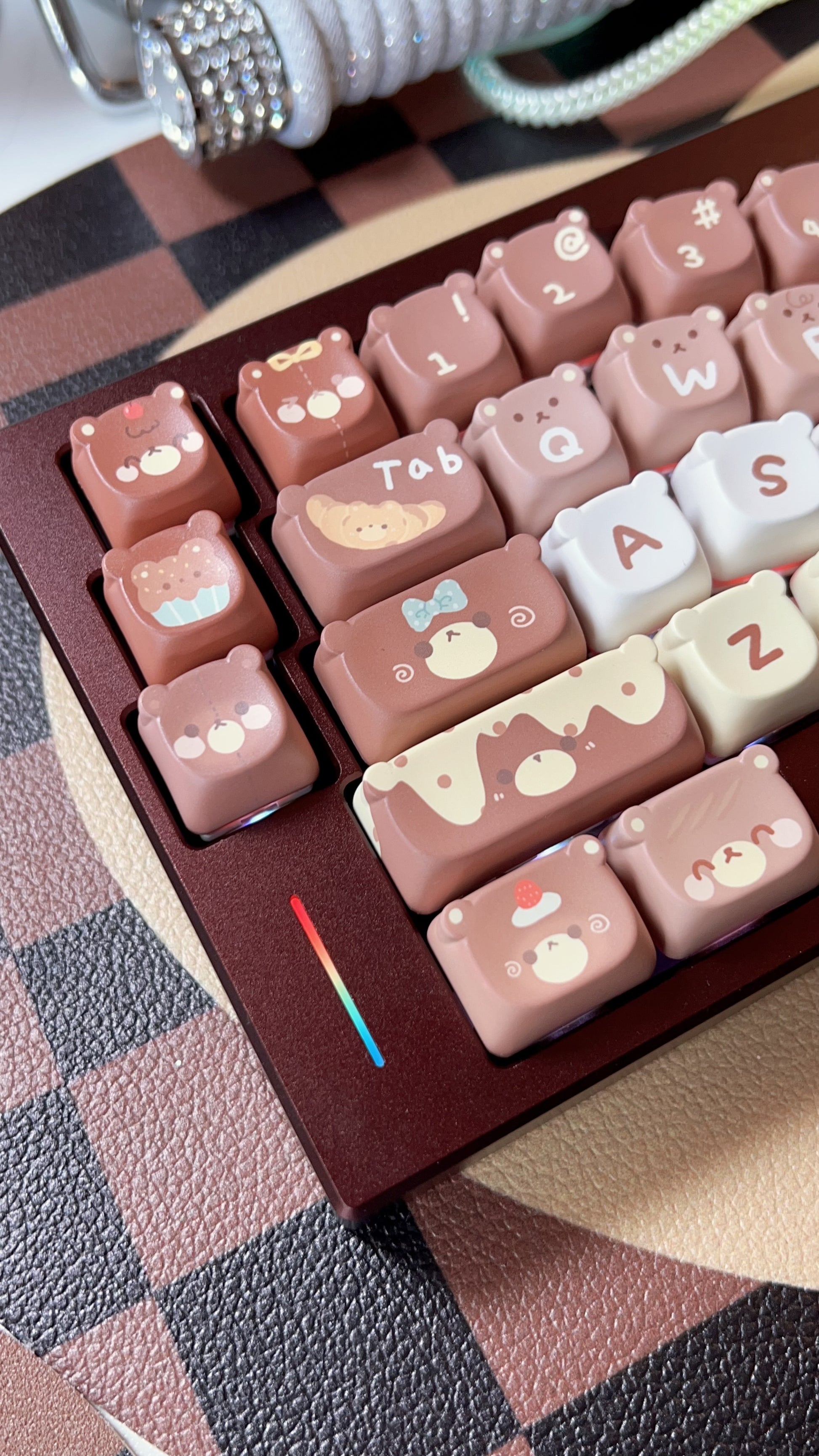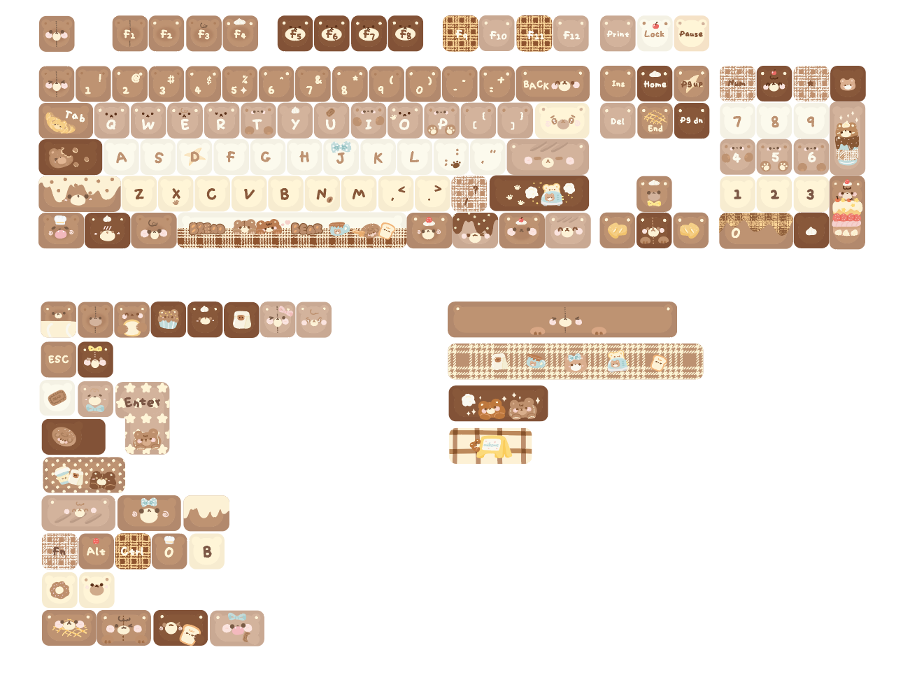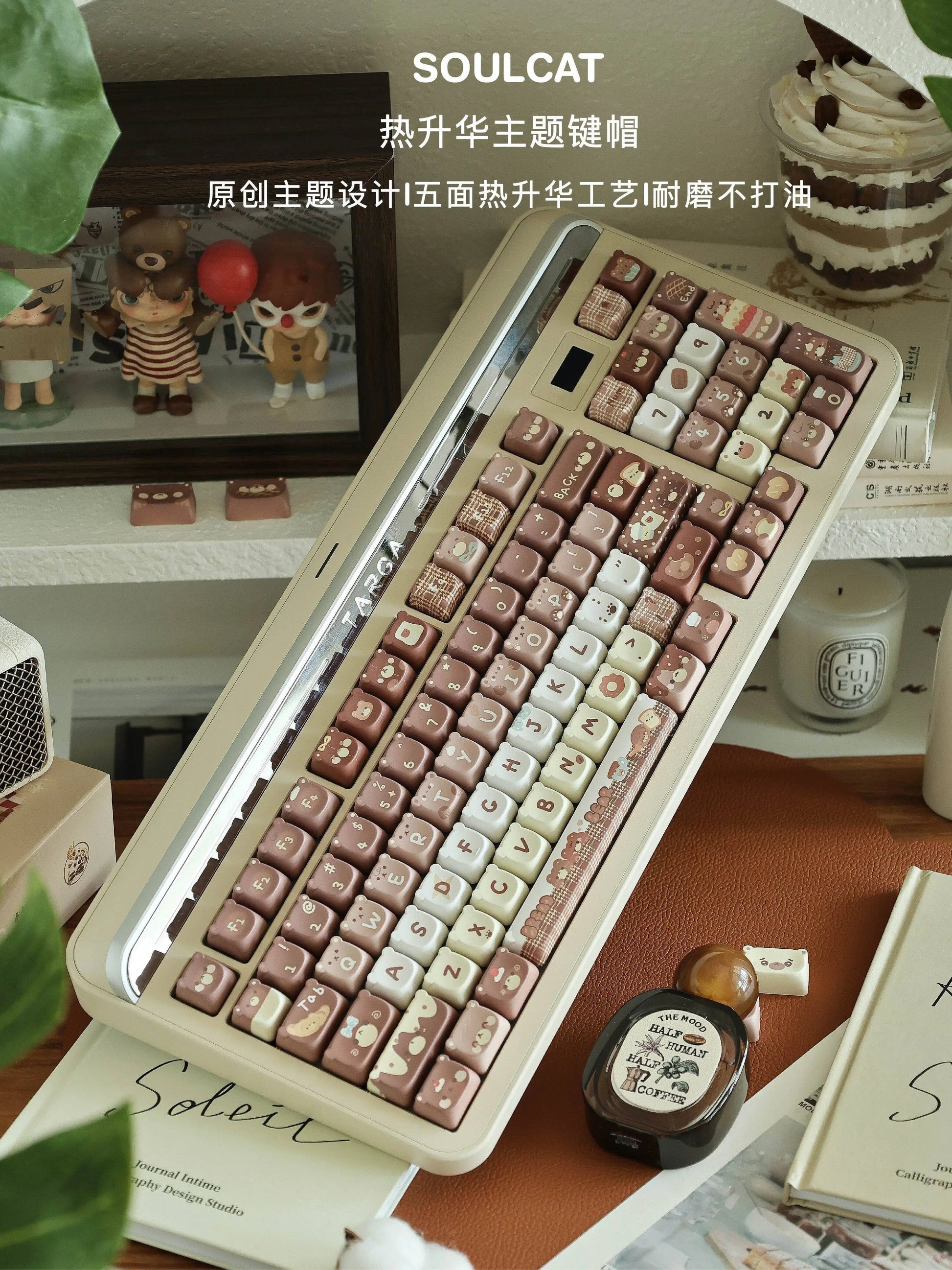 026 Brown Bear Baked Keycaps Cute and Round Skin-like Feel Designed By SOULCAT(not including keyboard)