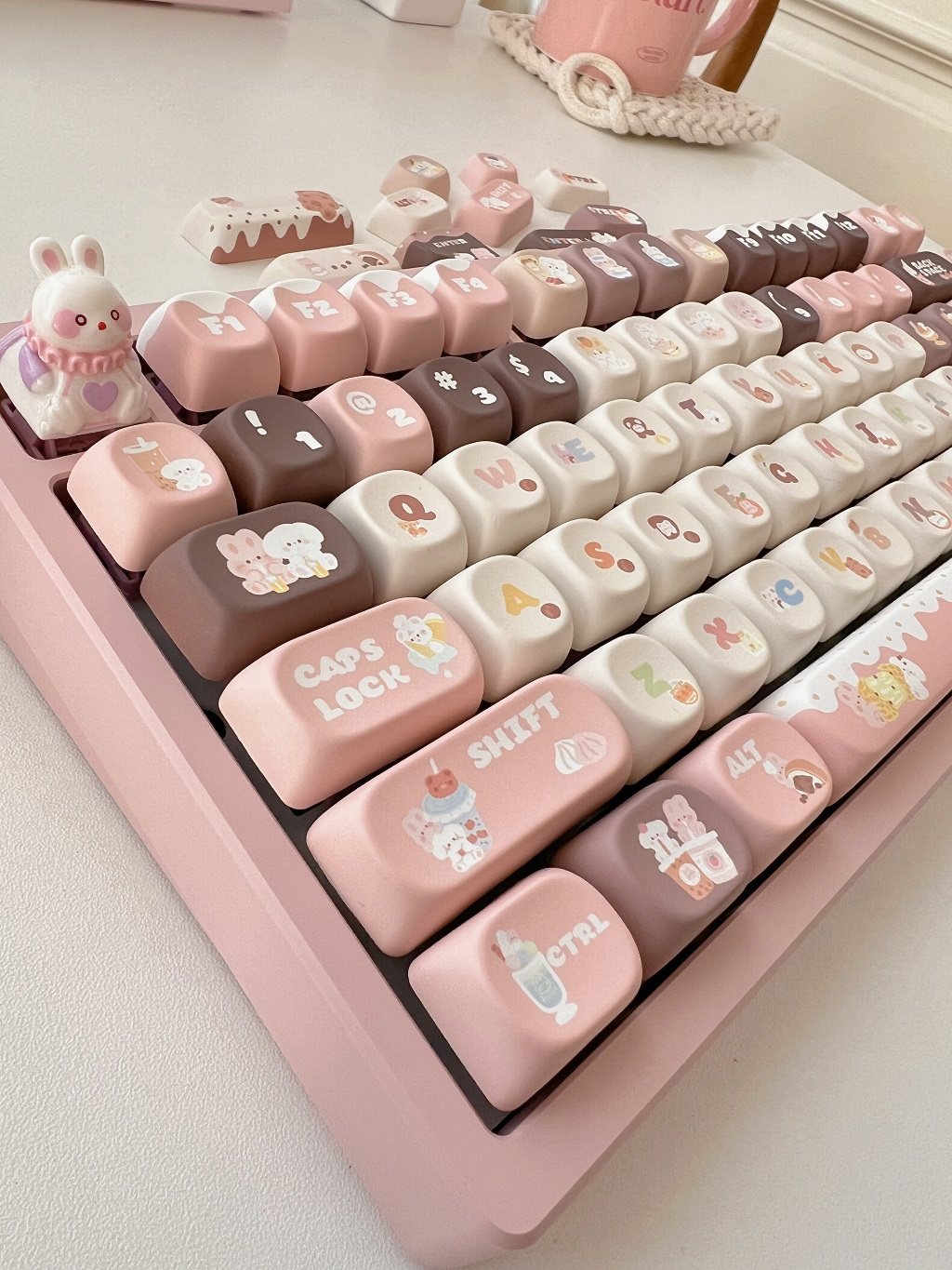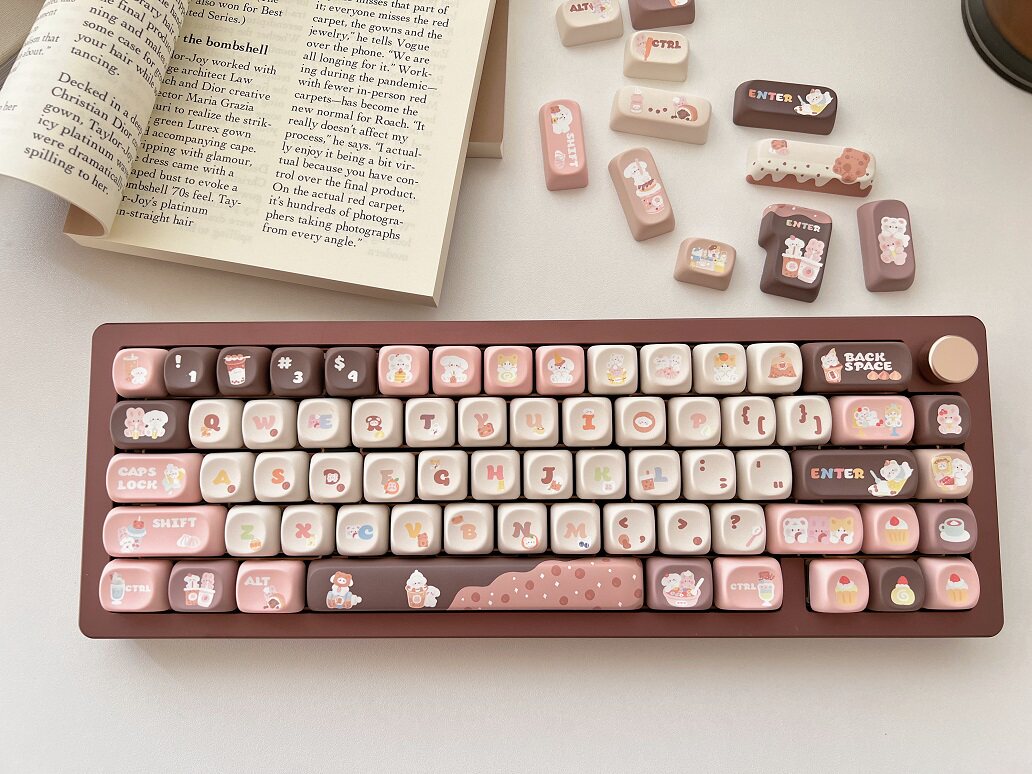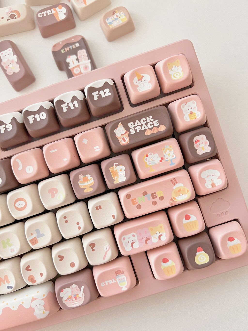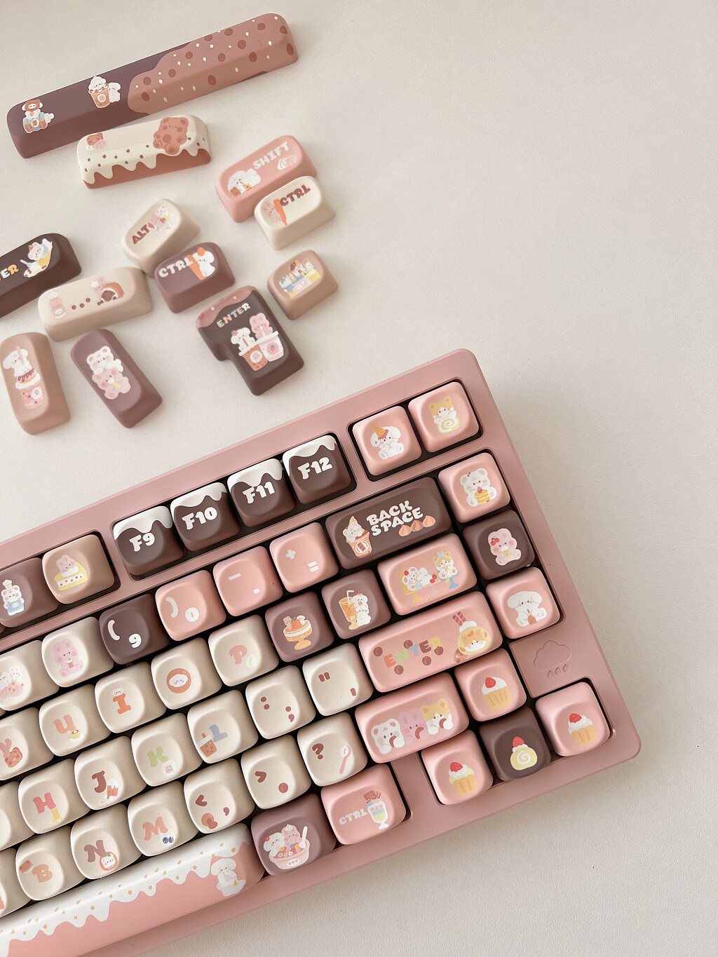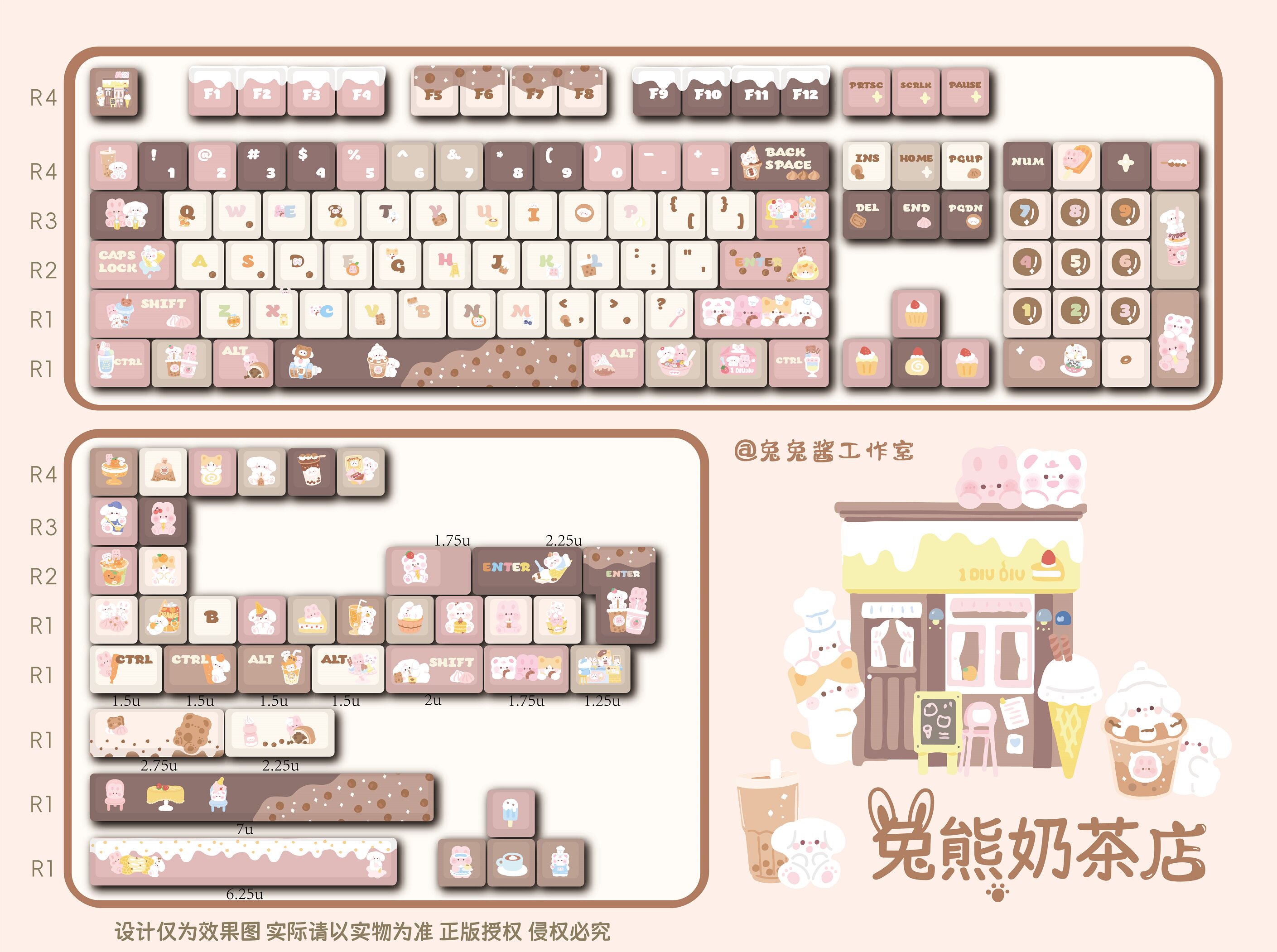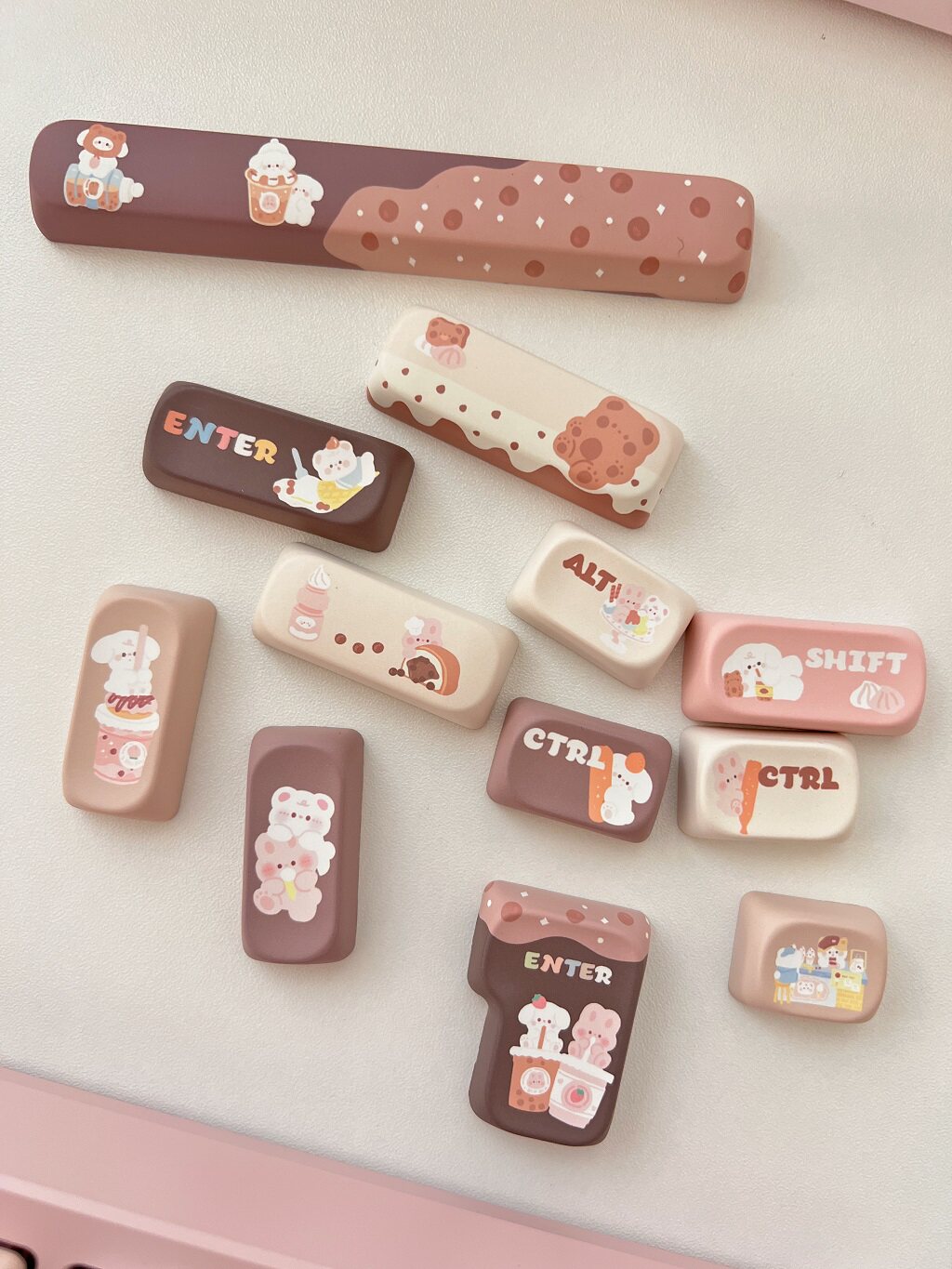 011 Bunny & Bear Milk Tea Store MOA Profile Pink Brown Customized Keycap Set