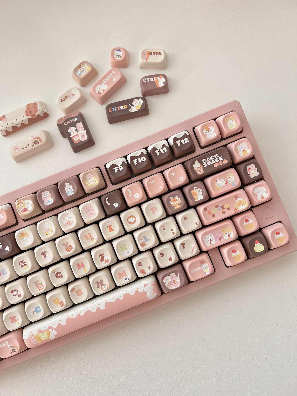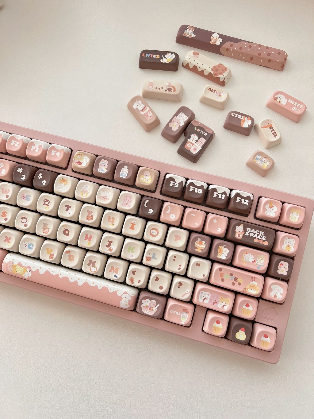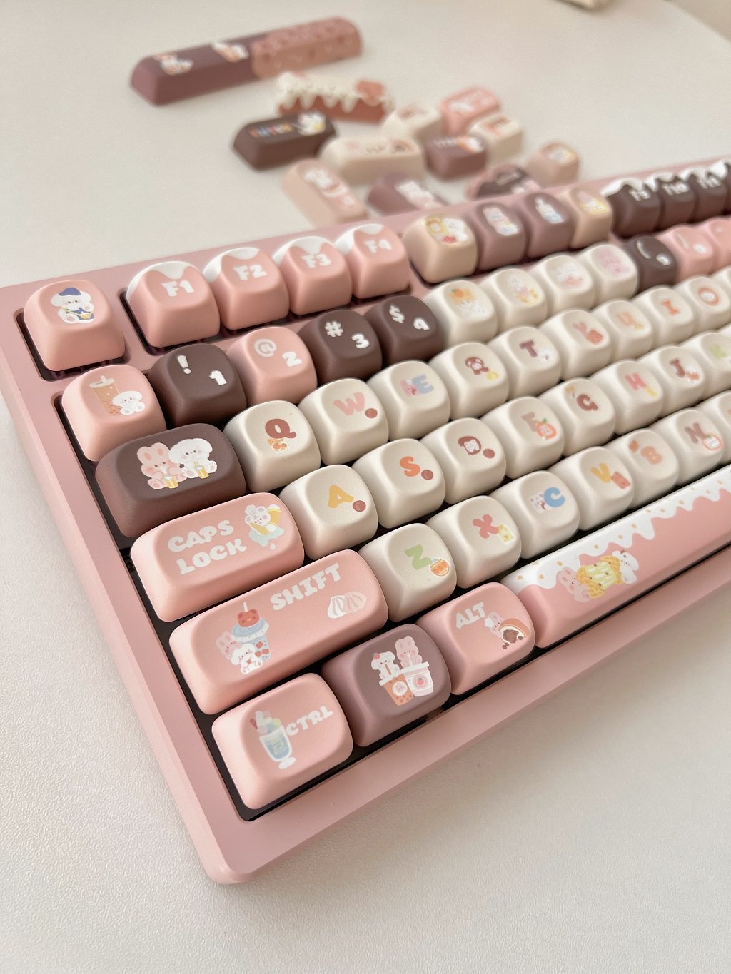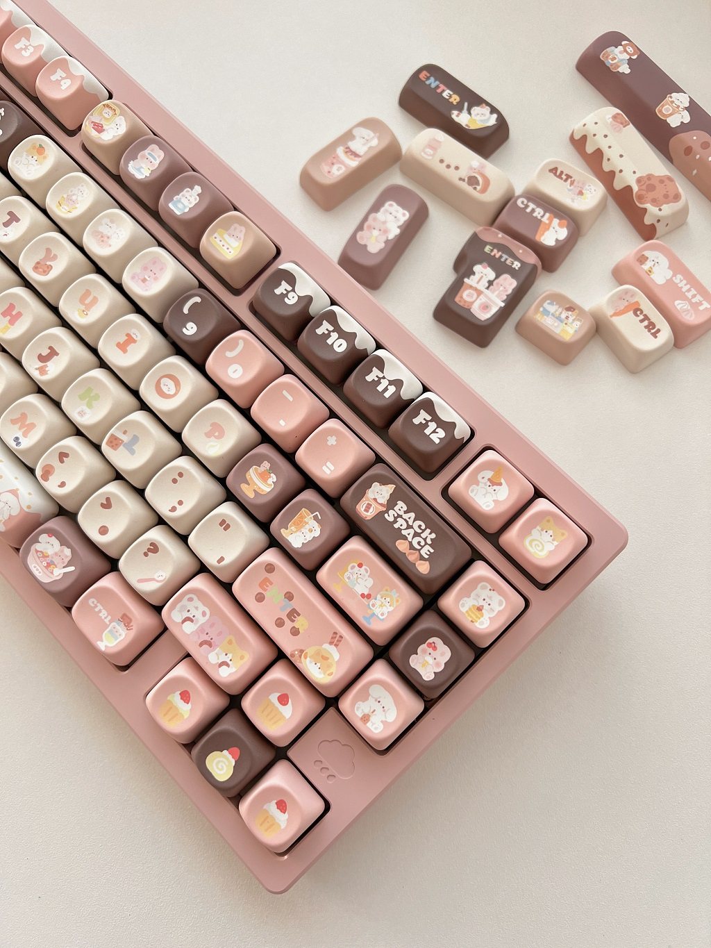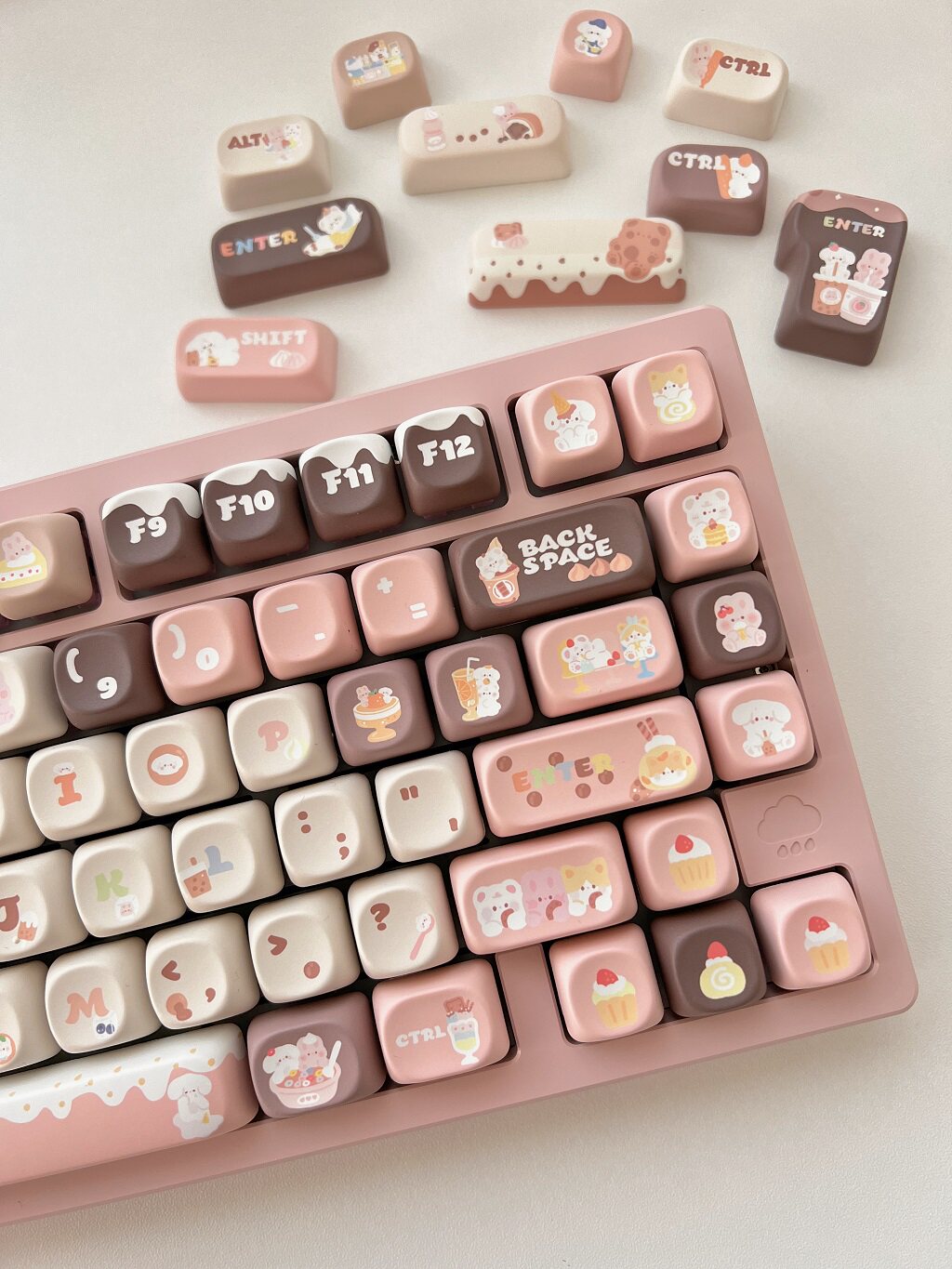 011 Bunny & Bear Milk Tea Store MOA Profile Pink Brown Customized Keycap Set
