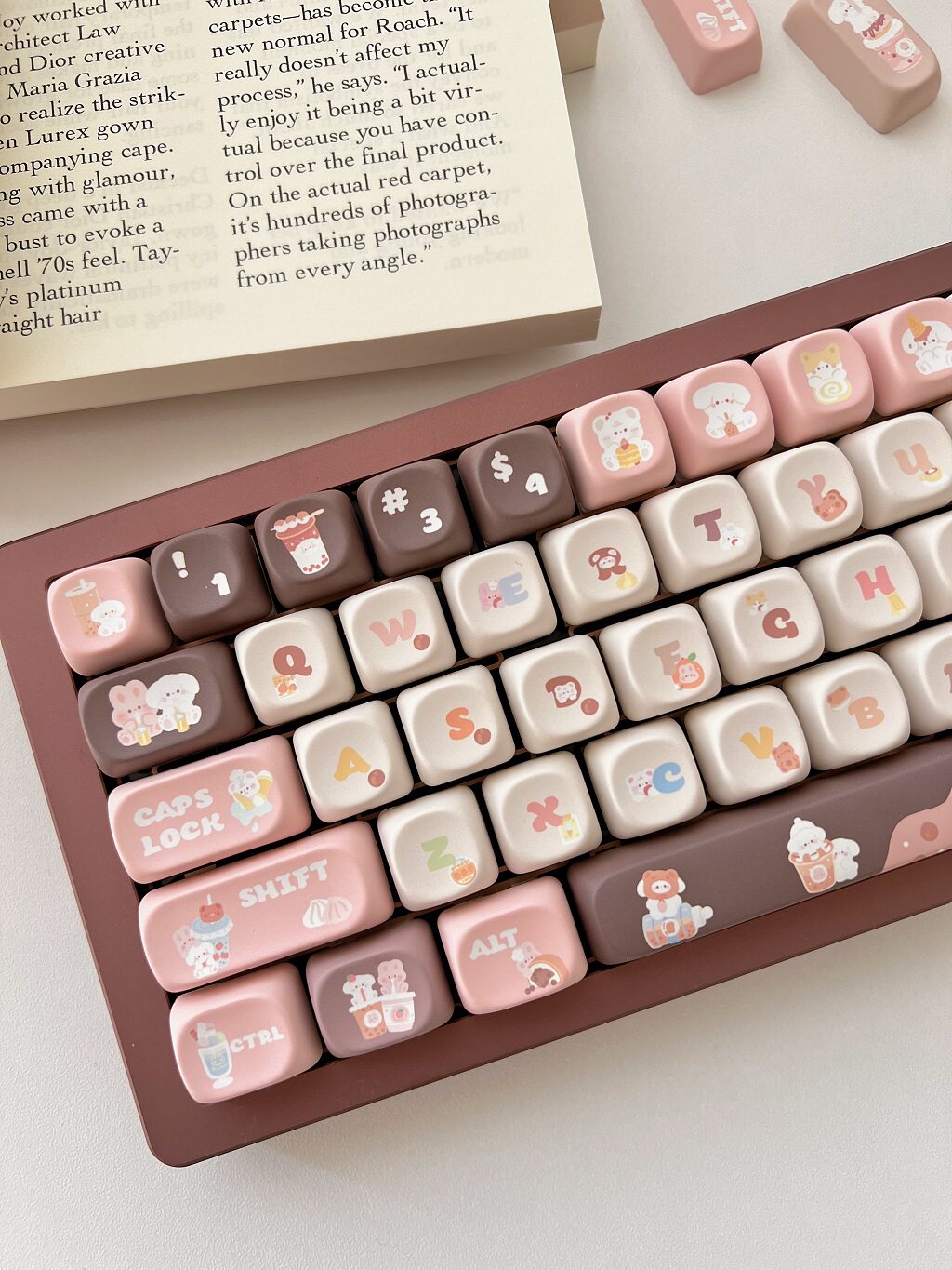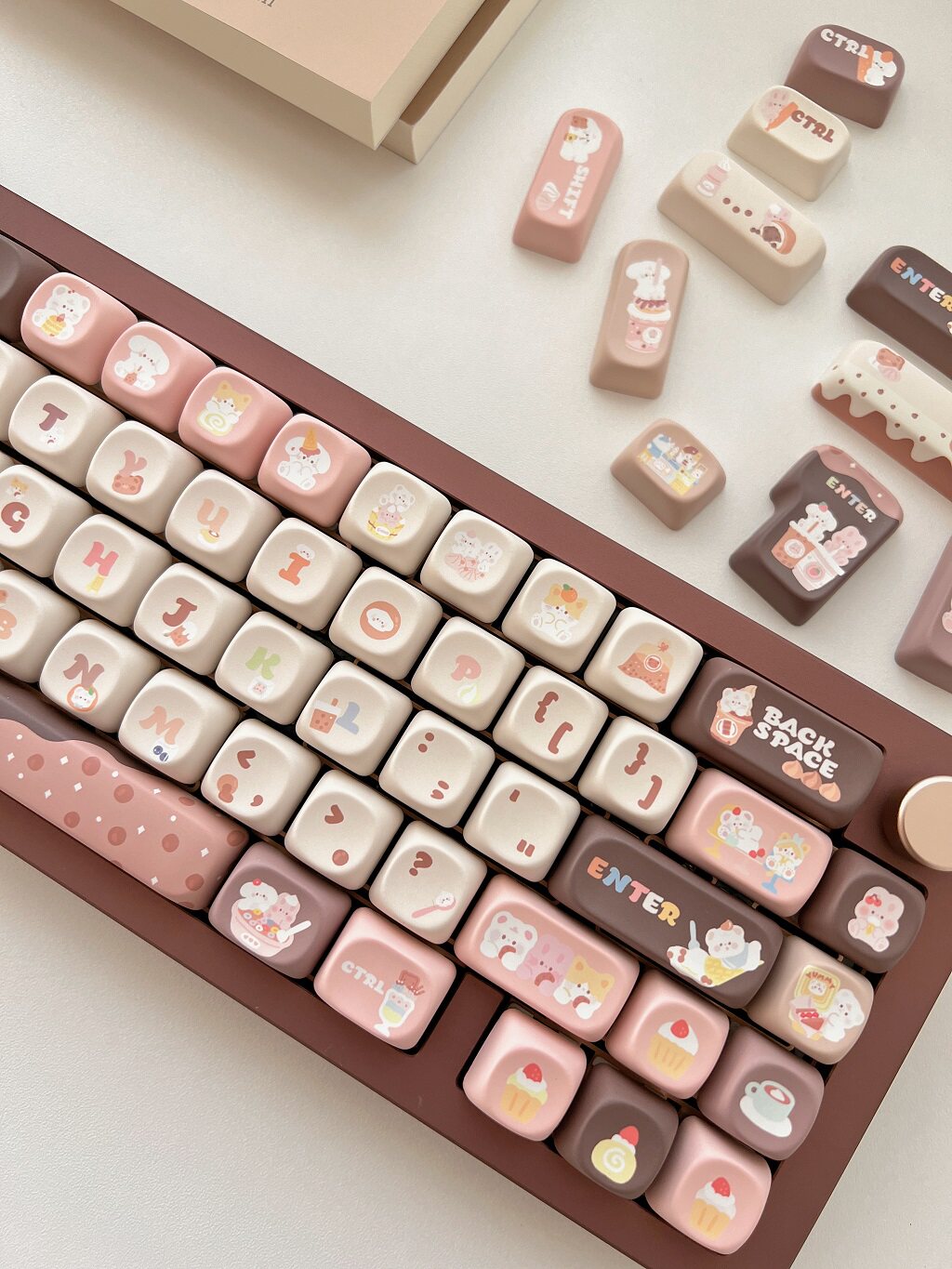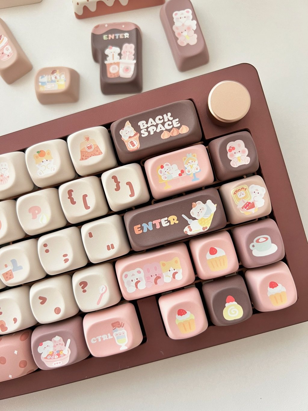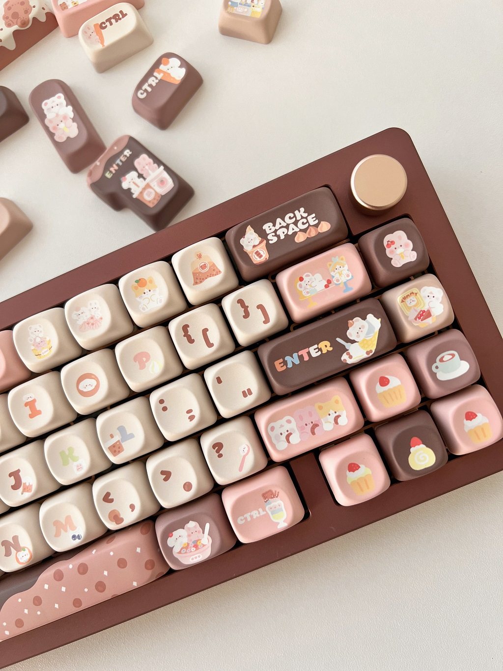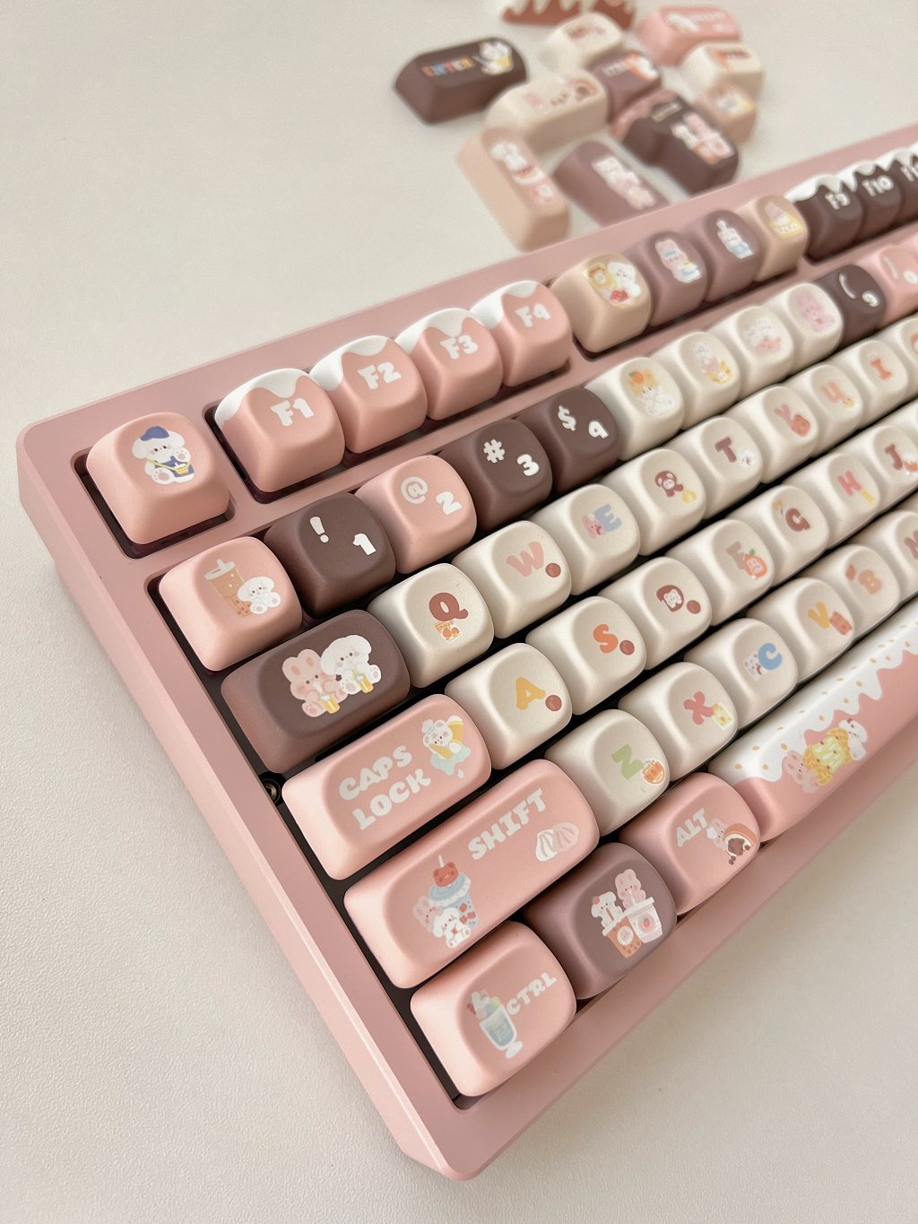 011 Bunny & Bear Milk Tea Store MOA Profile Pink Brown Customized Keycap Set