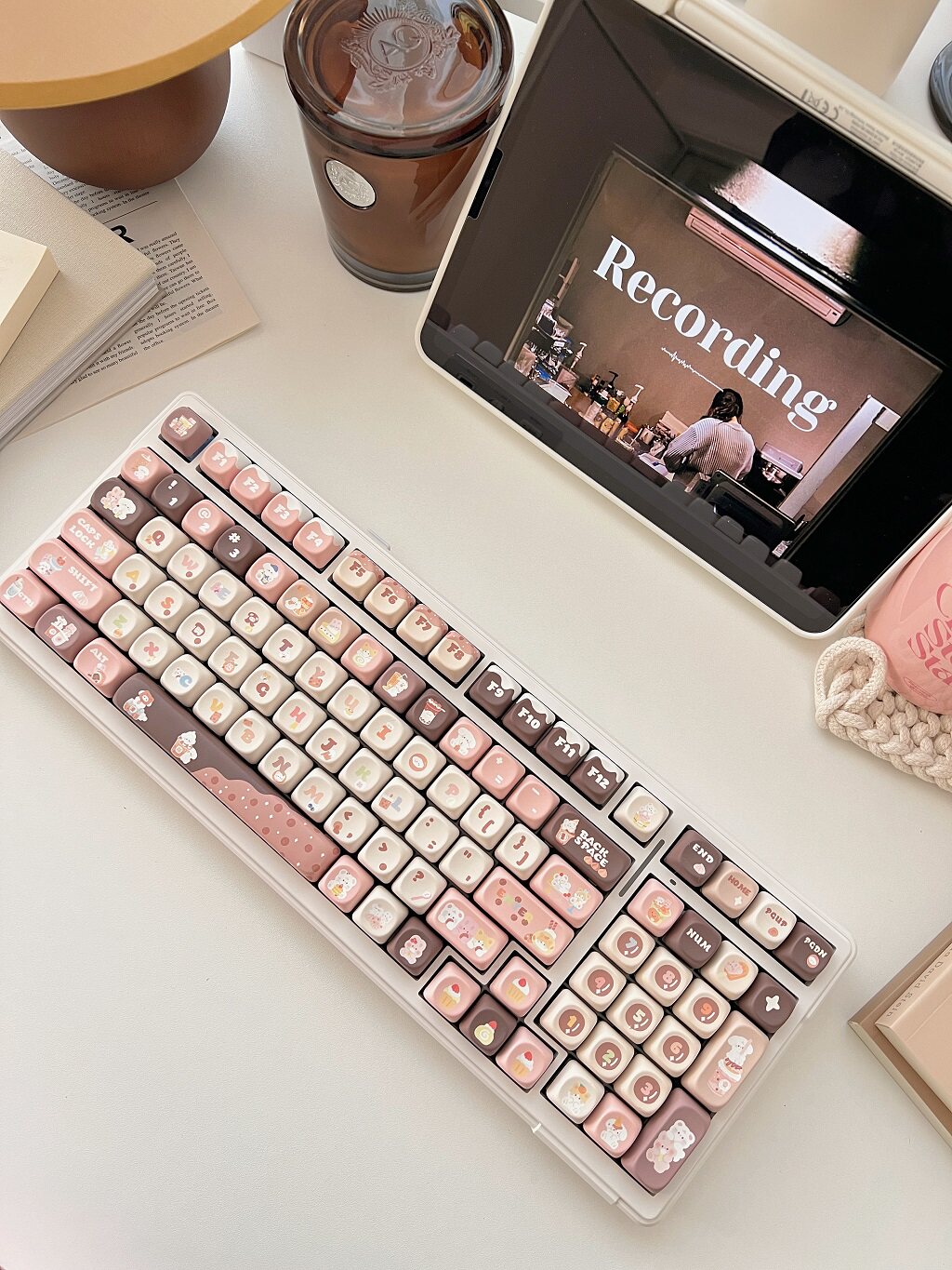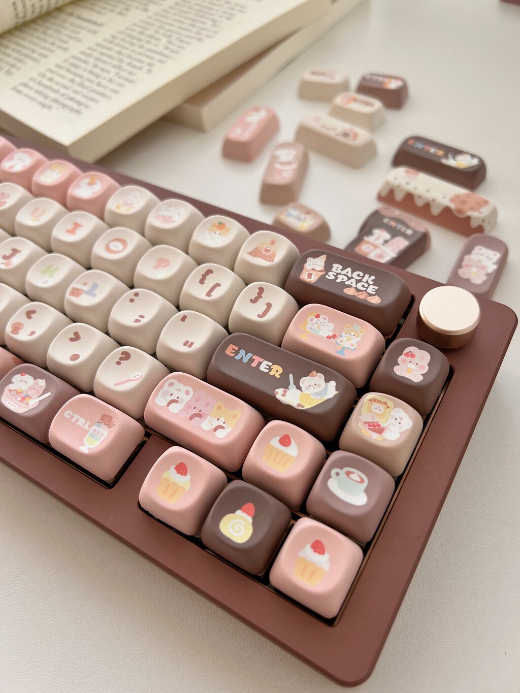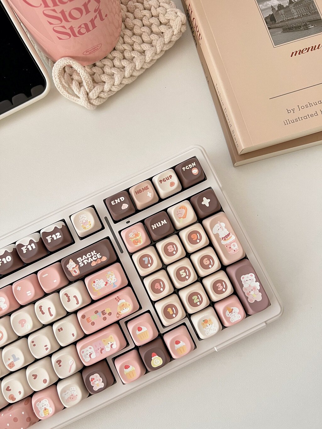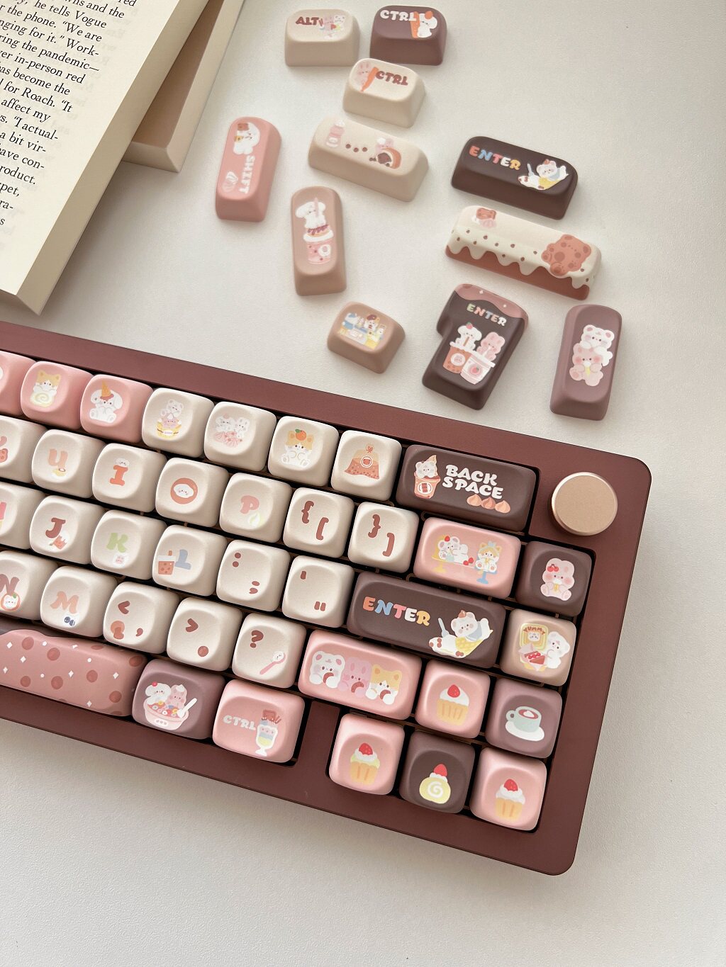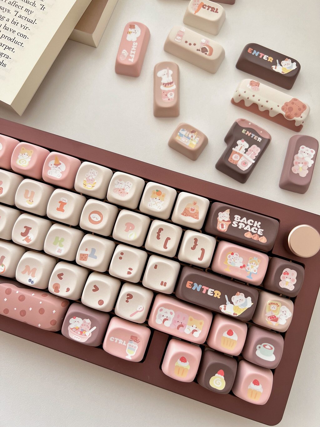 011 Bunny & Bear Milk Tea Store MOA Profile Pink Brown Customized Keycap Set