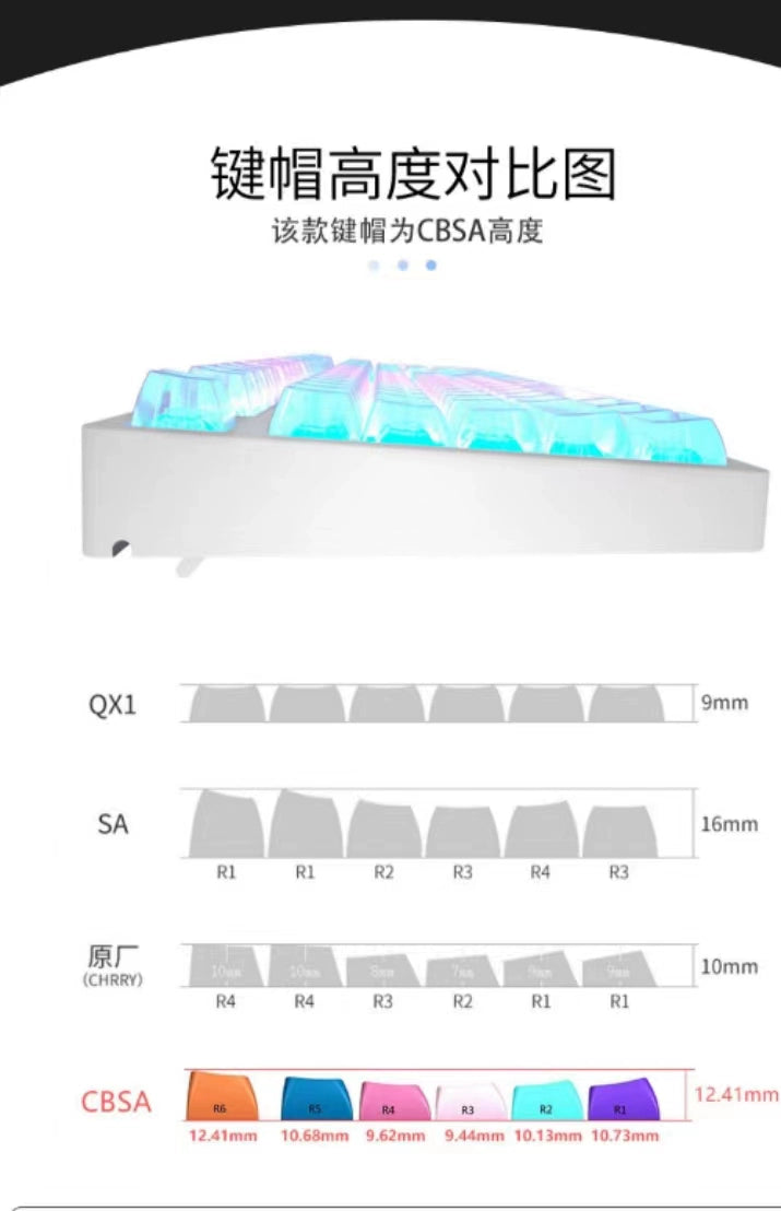 040 CBSA Profile PC Material Transparent Crystal Clear Keycap No Letter Engraved 132 Keys