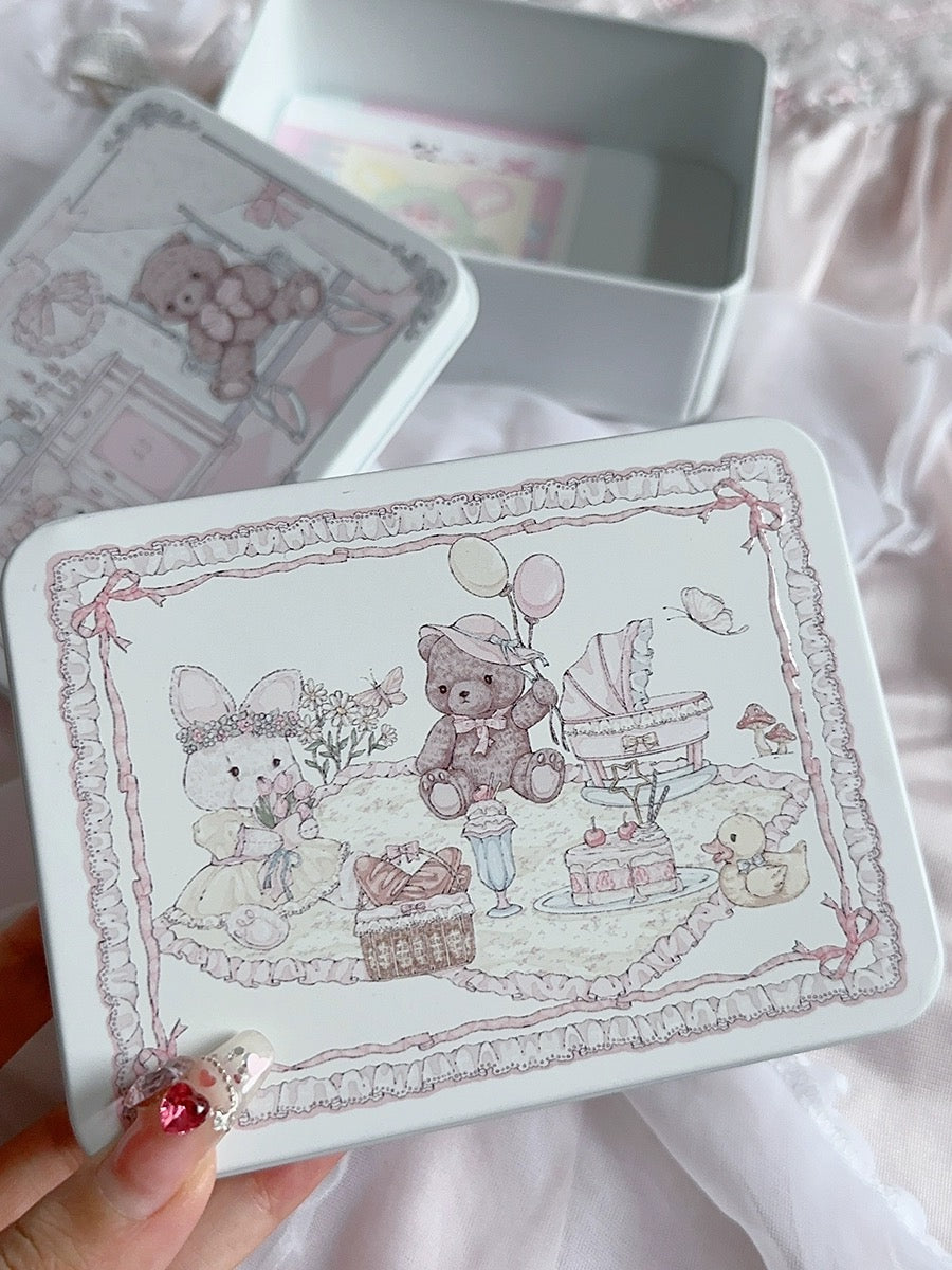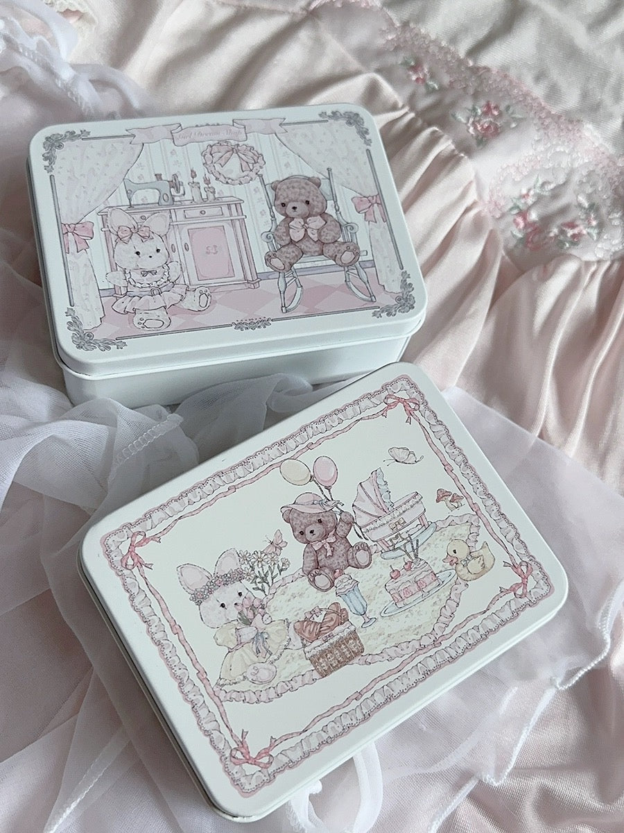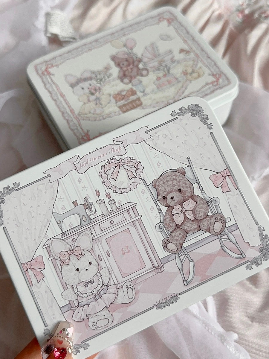 Cute little iron box ʚෆɞ(˘ᵋॢ ˘♡)˚, girl's dream rabbit bear three-inch photo desktop ornament storage box