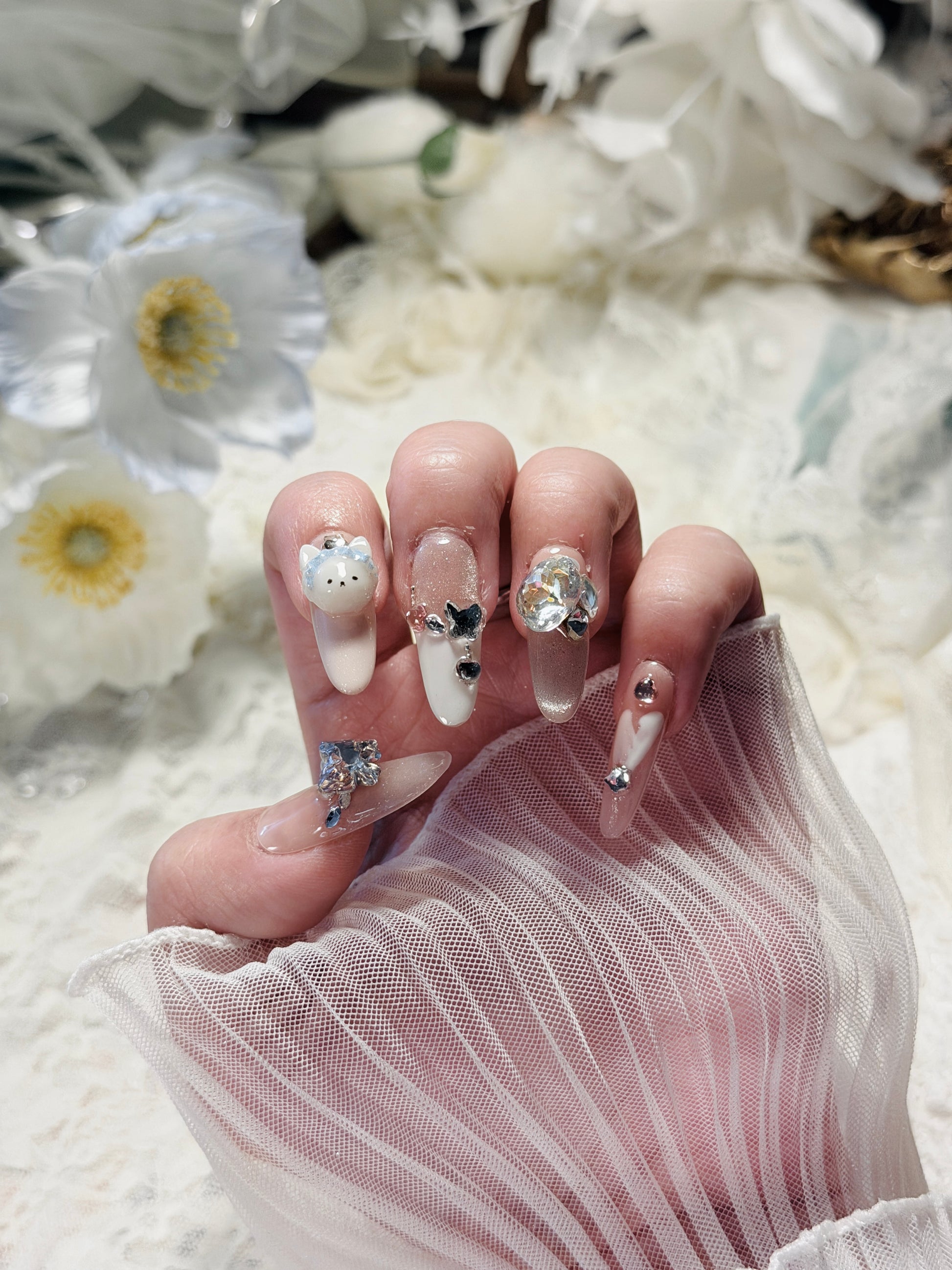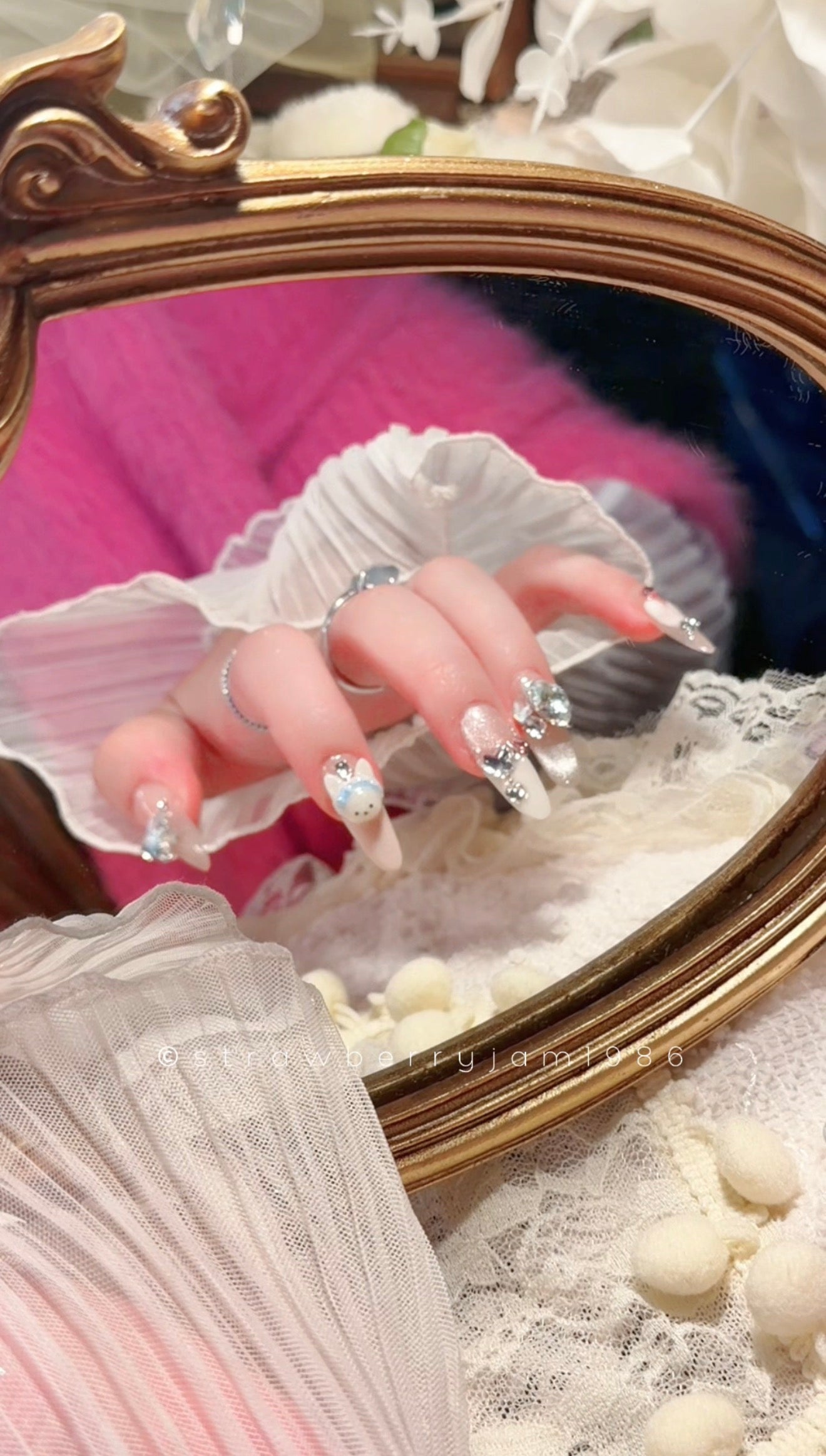 Designer False Nails Cute Bunny Diamond Creamy Champion Shimmer Long Press-On Nails(#937)