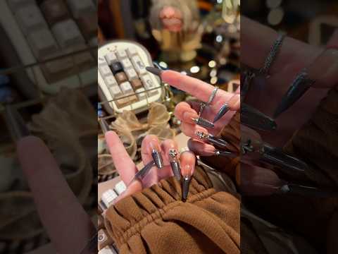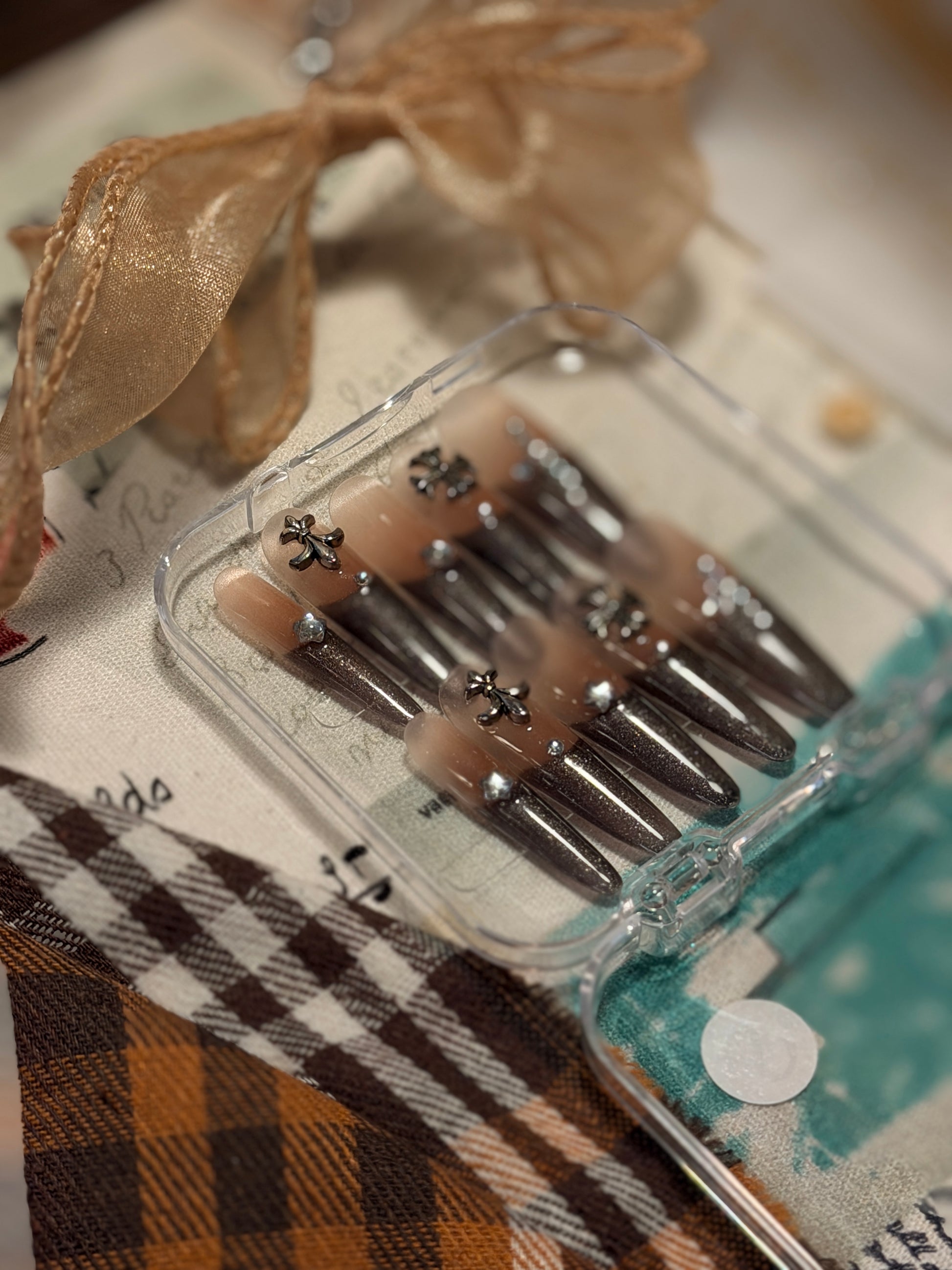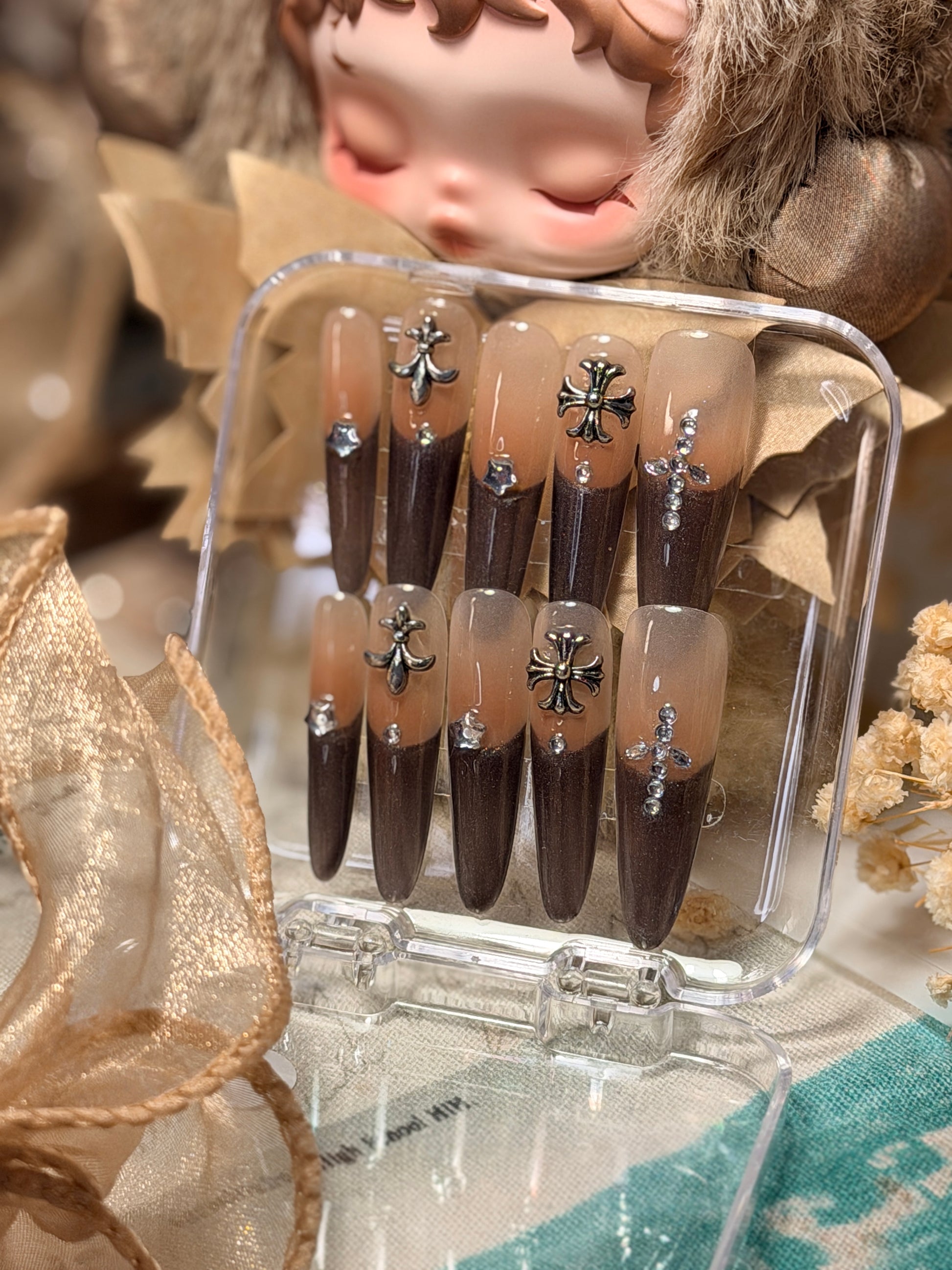 ONLY 1 Instock Designer False Nails Chrome Hearts Smoky Coffee Fine Shimmer French Style Long Press-On Nails(#889)