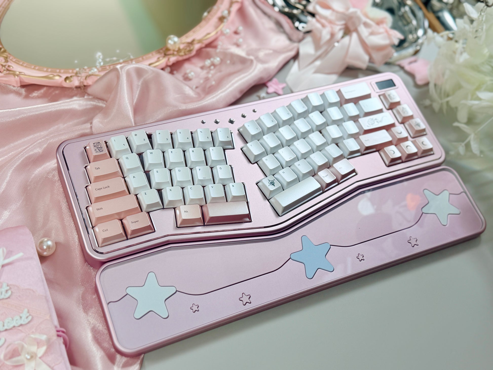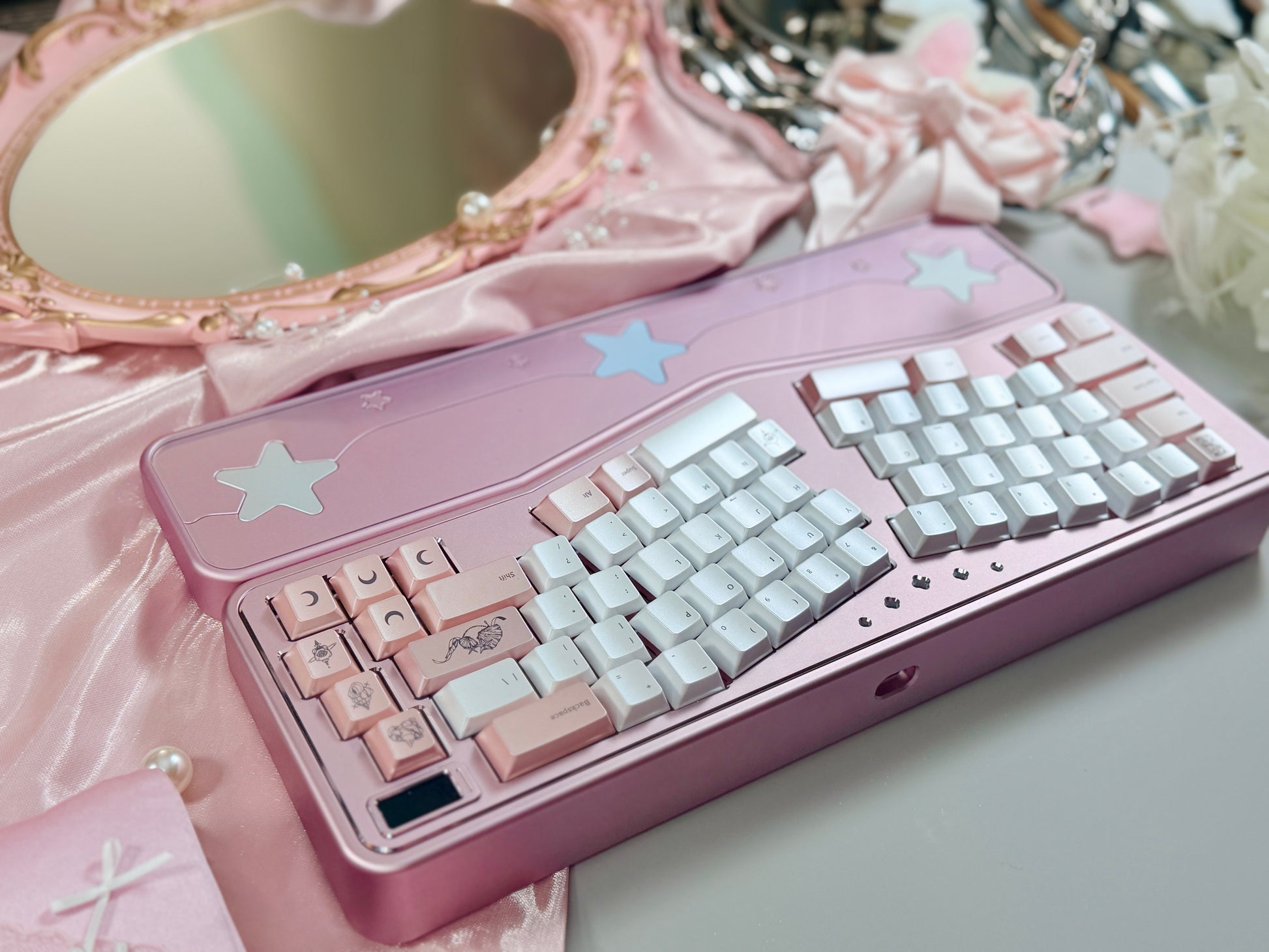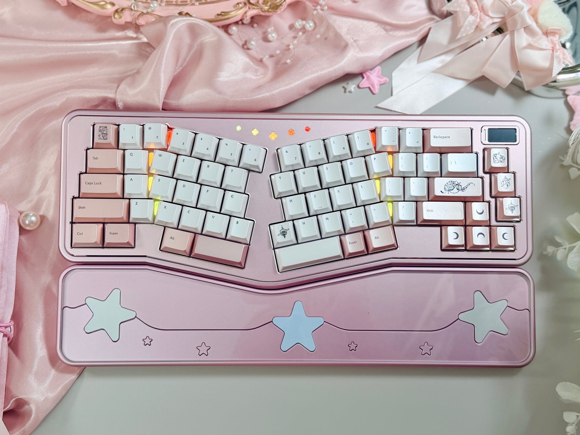 ONLY 1 Instock Prebuilt Aluminum Custom Mechanical Keyboard Staralice Ergonomic Anodized Pink Set including Wristrest Keycaps & switches