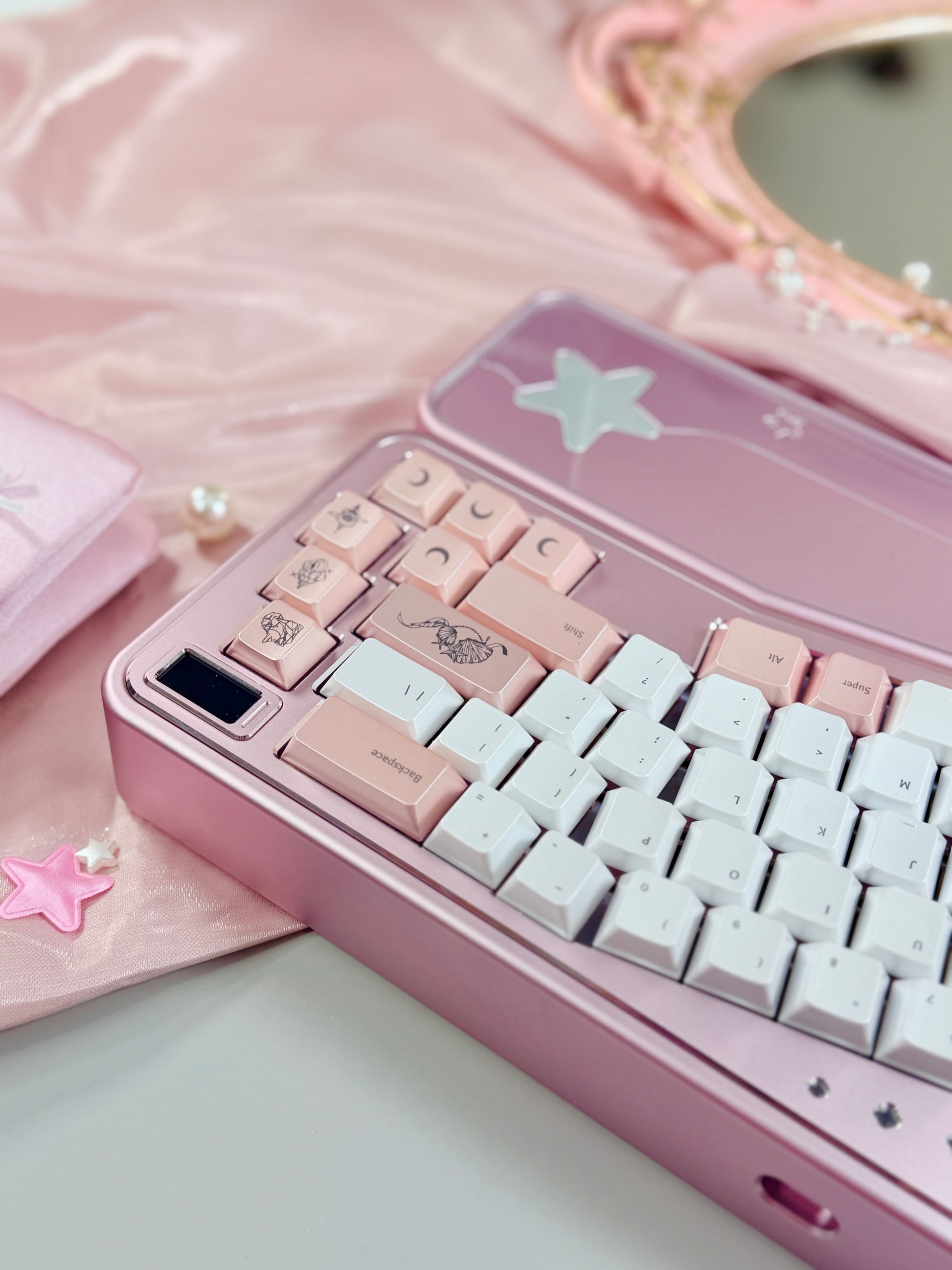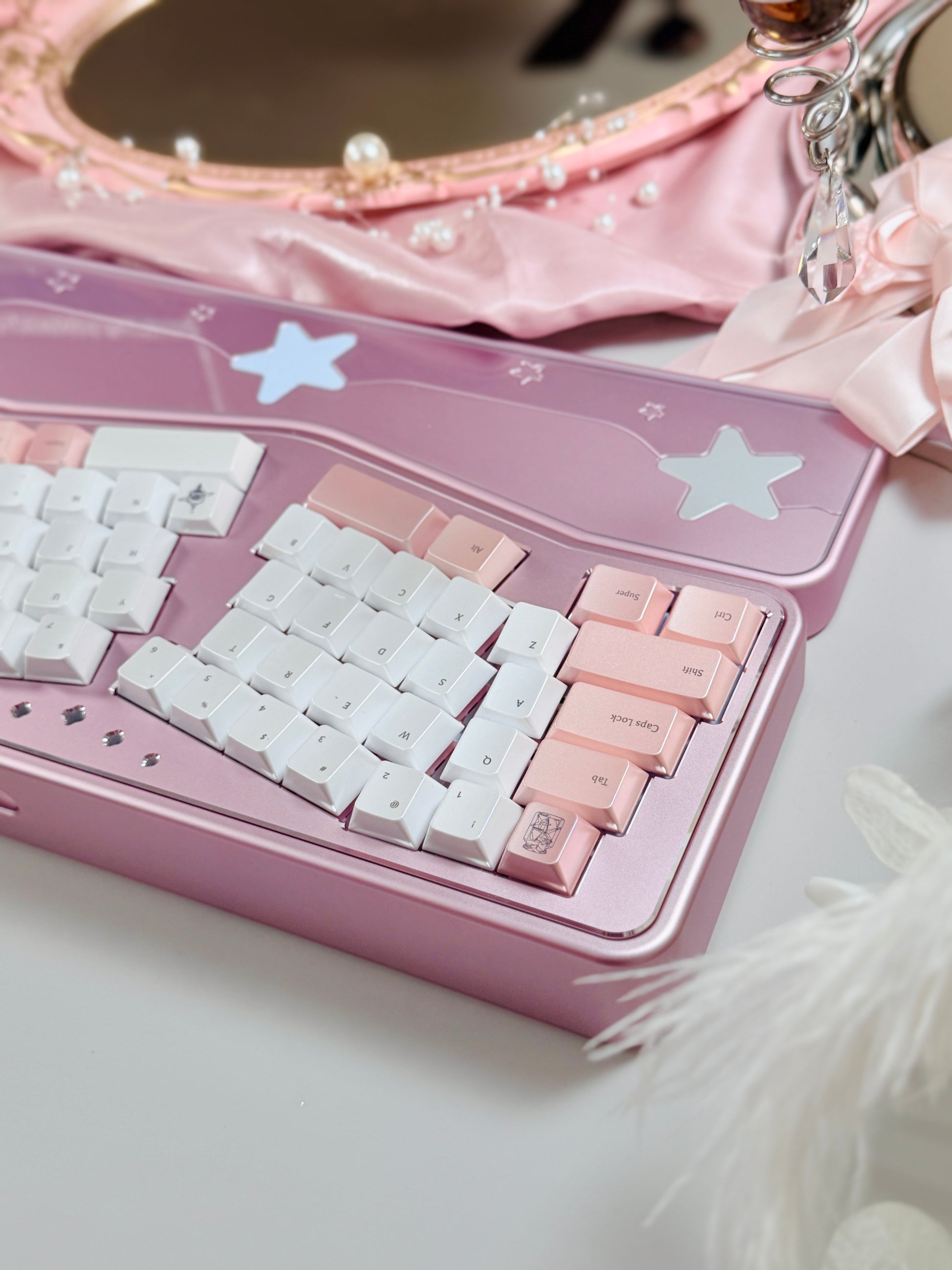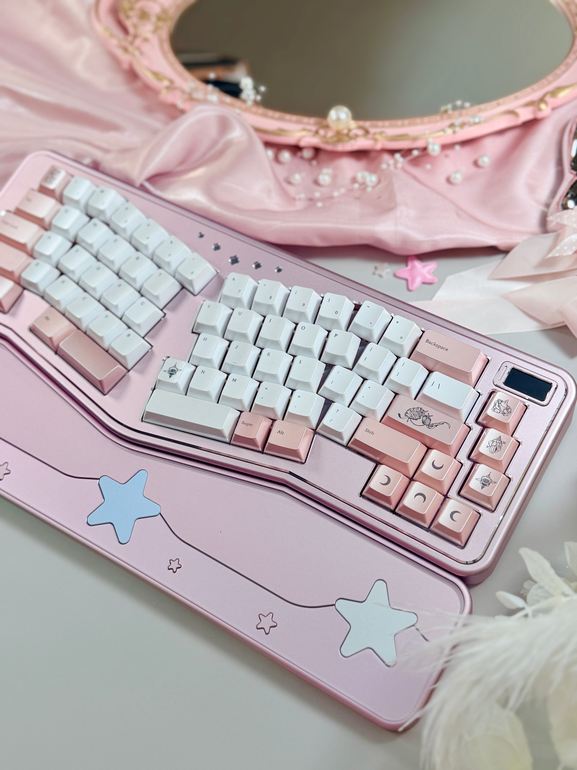 ONLY 1 Instock Prebuilt Aluminum Custom Mechanical Keyboard Staralice Ergonomic Anodized Pink Set including Wristrest Keycaps & switches