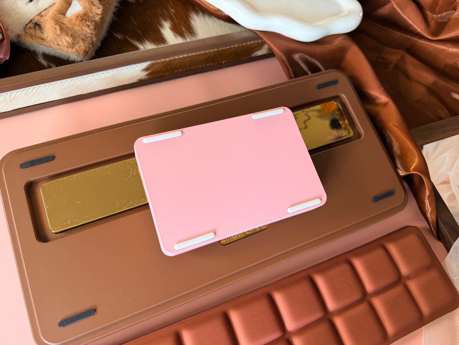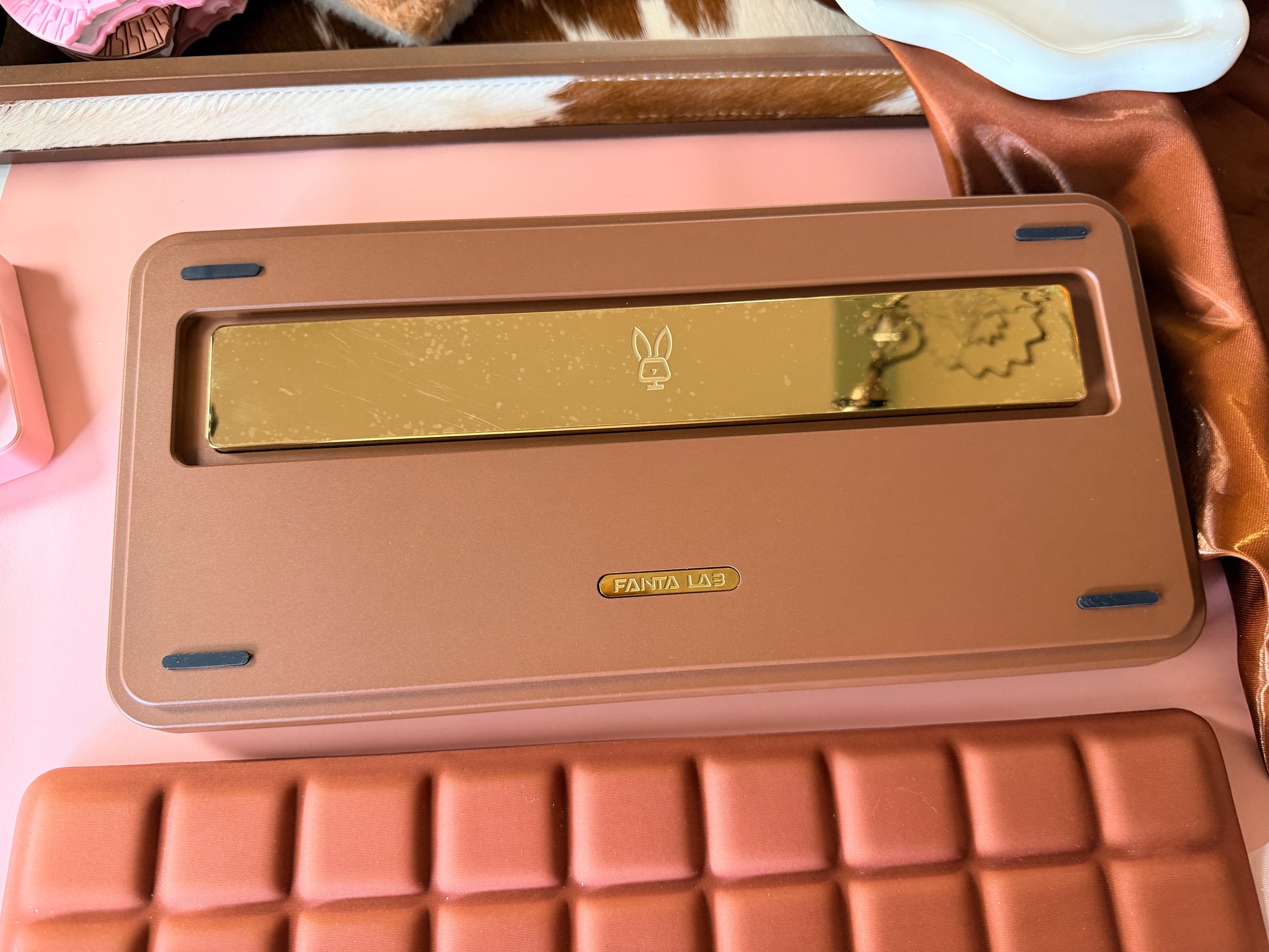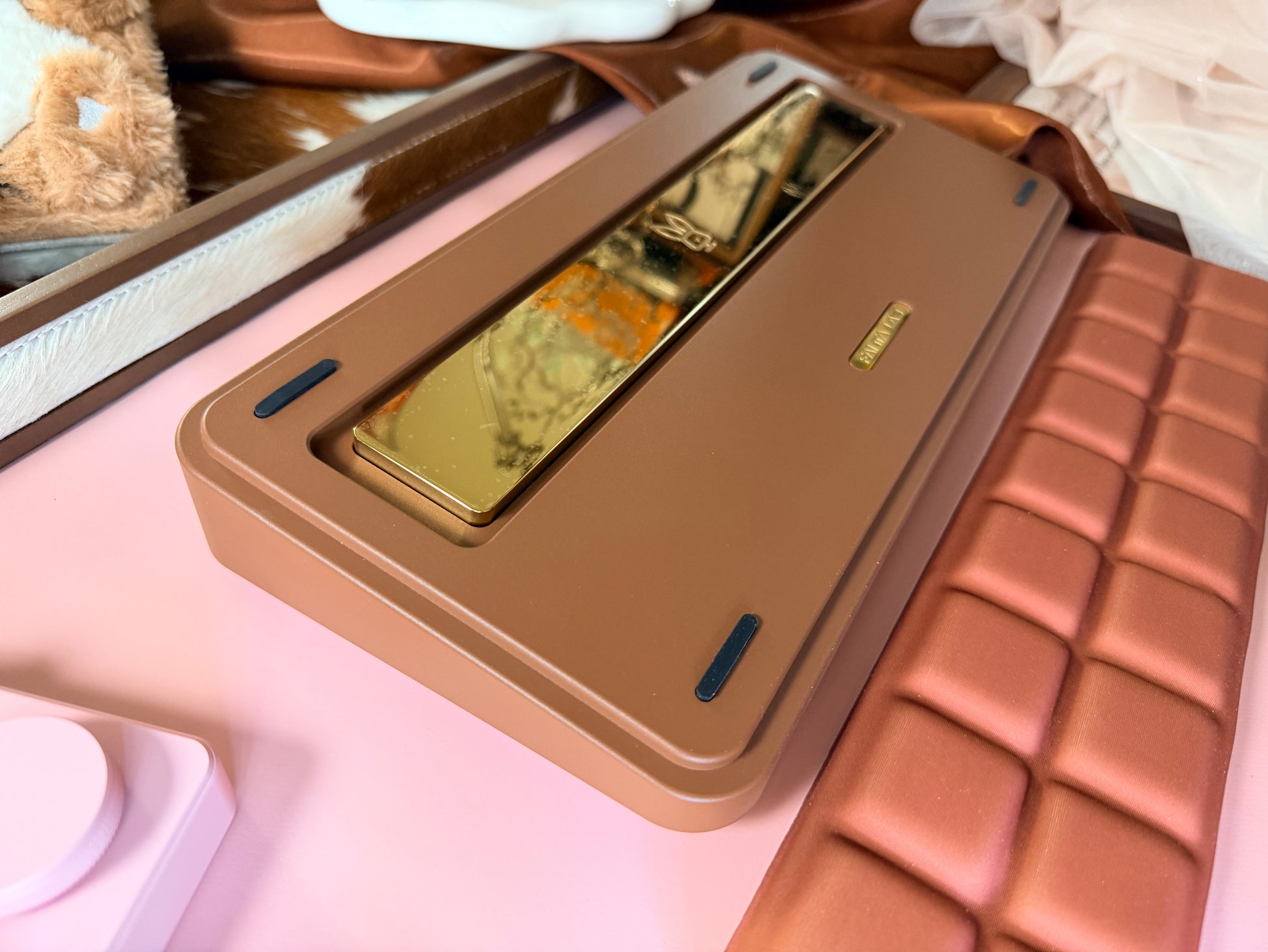 (Because there are two scratches on the bottom case (see the last two photos), the price has been discounted, and a chocolate memory foam wrist rest and a KiiBOOM Cybrix16 numeric keypad are included as free gifts.)