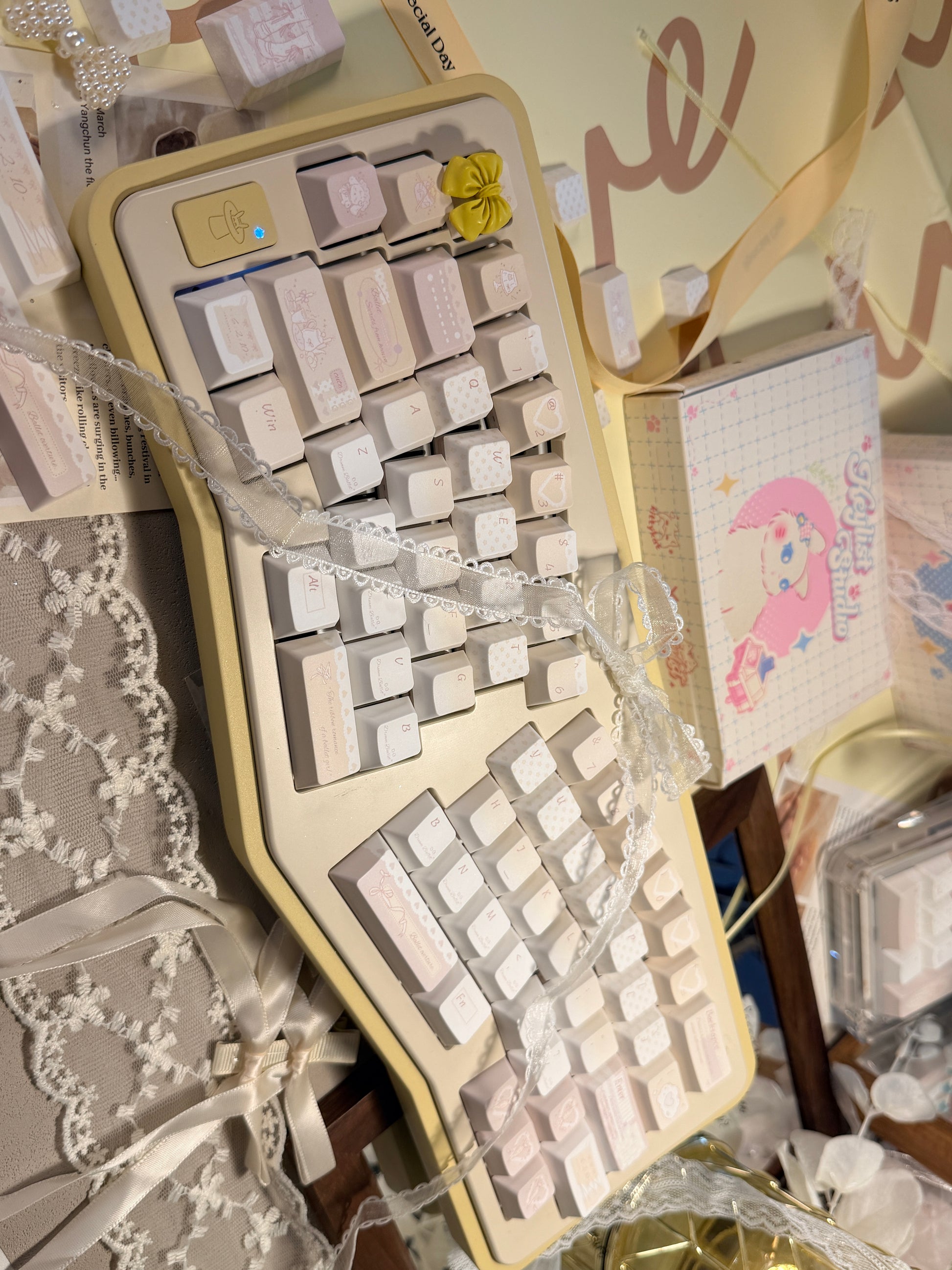ONLY 1 INSTOCK Prebuilt Aluminum Customized Mechanical Keyboard Vlice Cream Yellow Ergonomic Set
