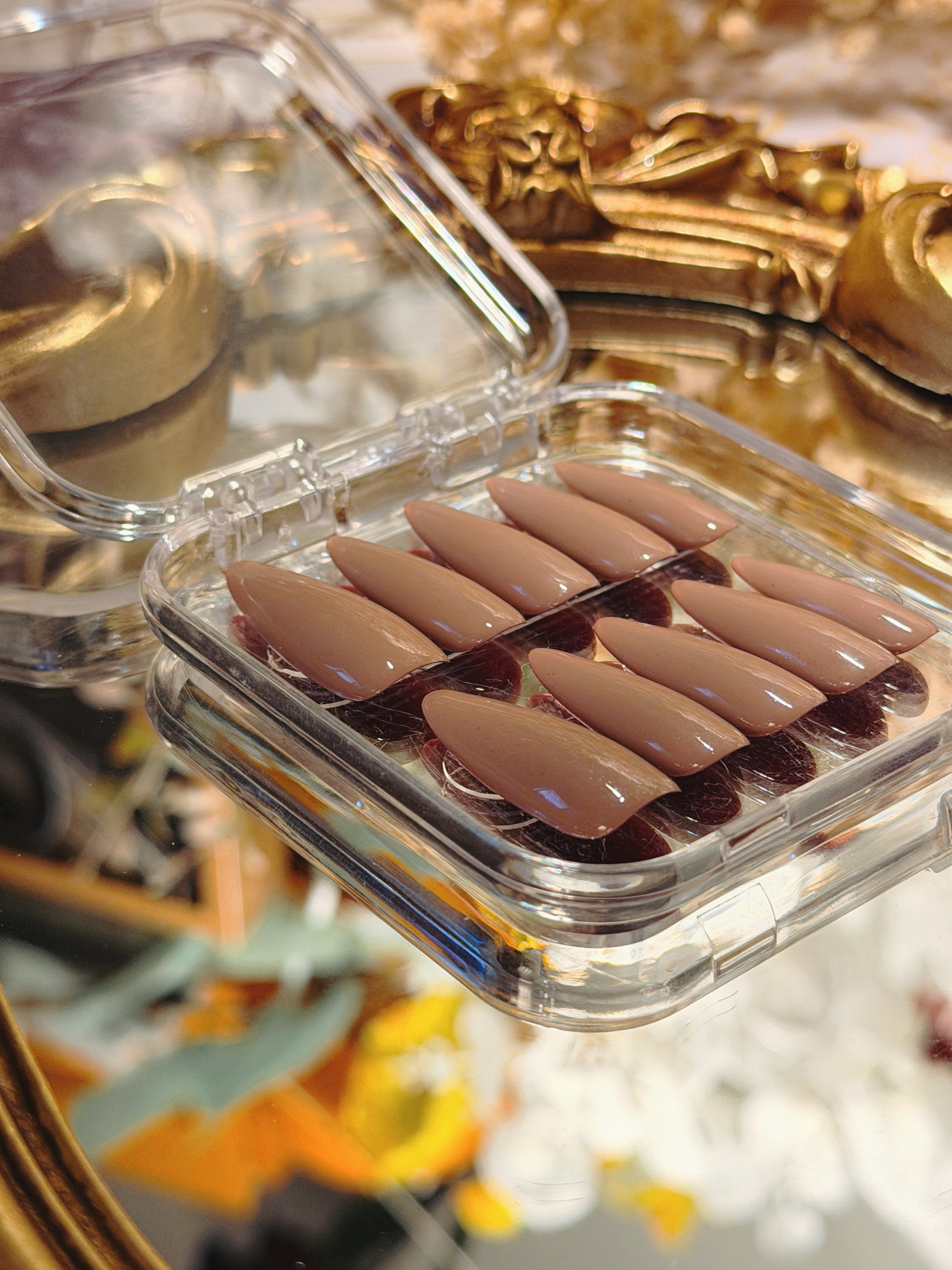 ONLY 1 Left Designer False Nails Red-Bottom High Heels & Milk Tea Long Teardrop Press-On Nails
