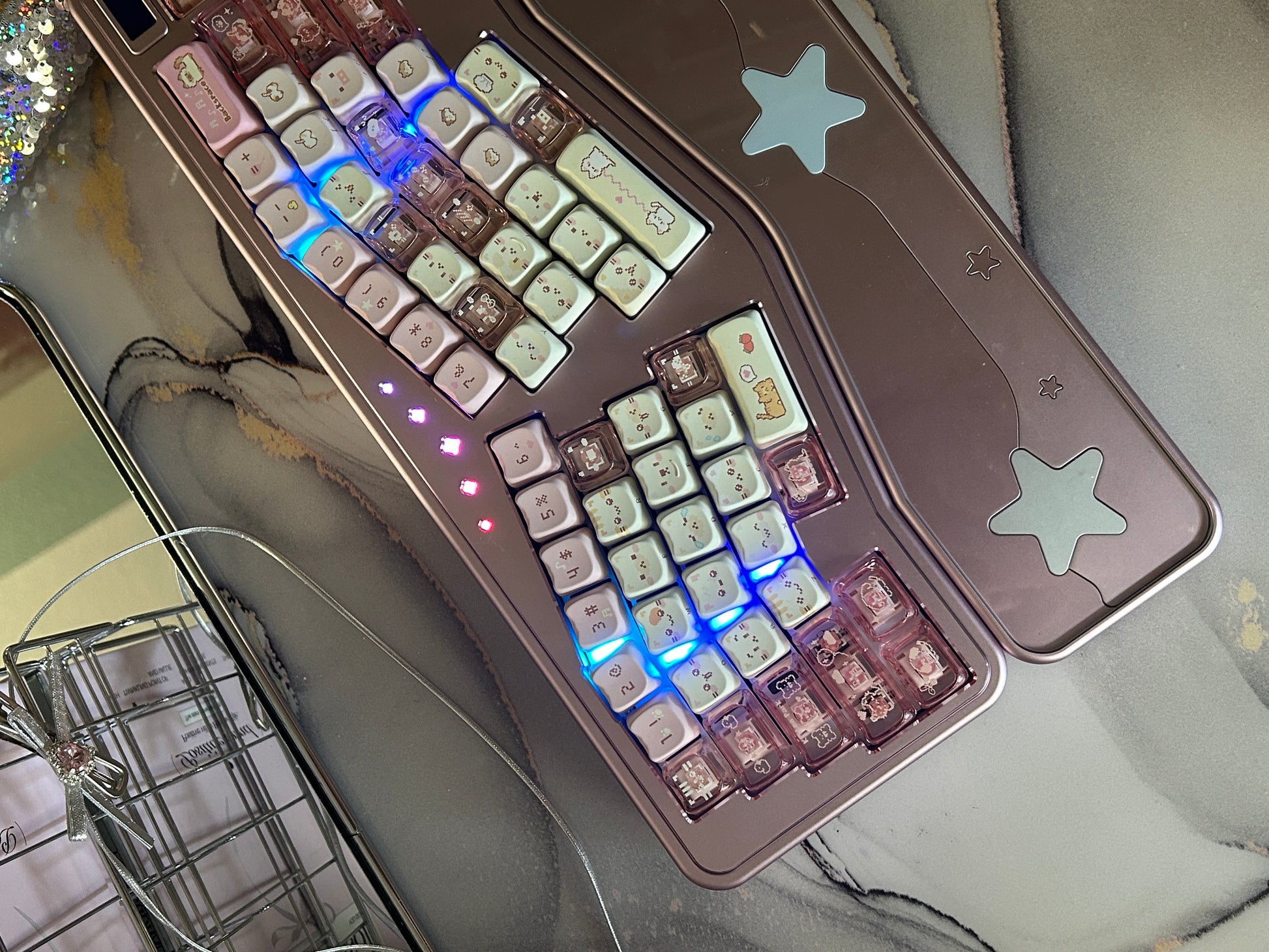 Preorder Prebuilt Aluminum Customized Mechanical Keyboard Staralice Anodized Pink set with Wristrest & switch & Cat Keycaps