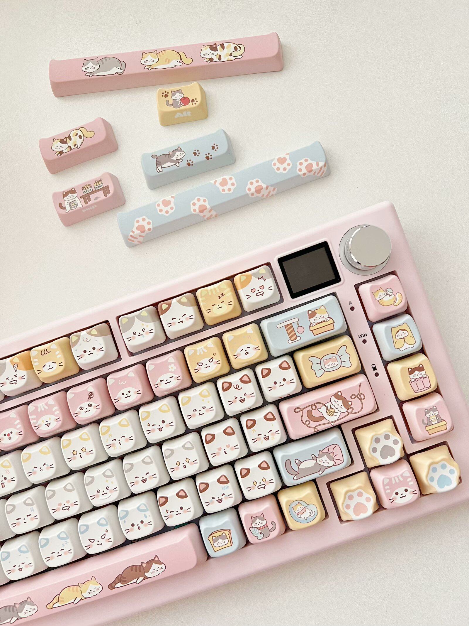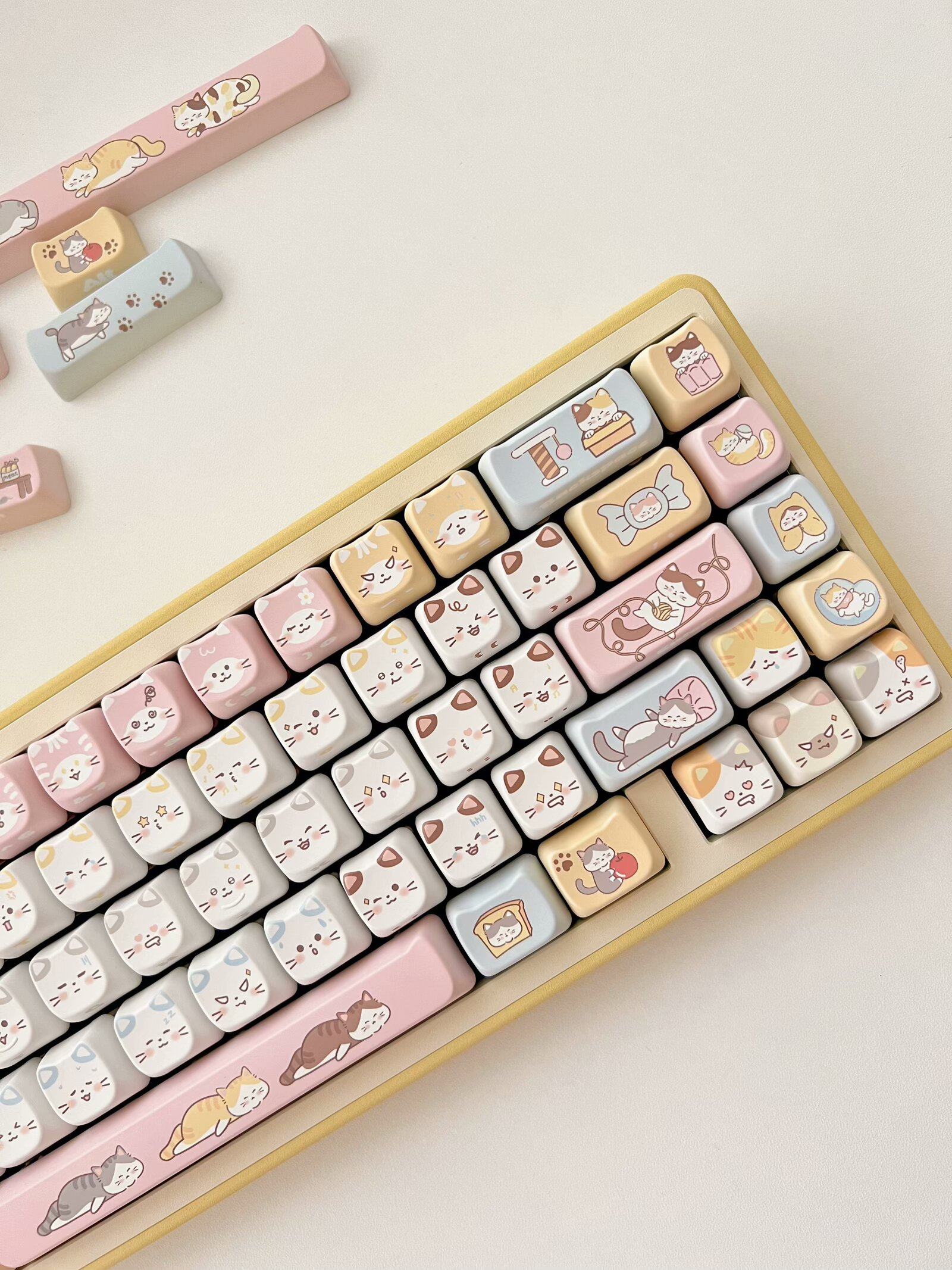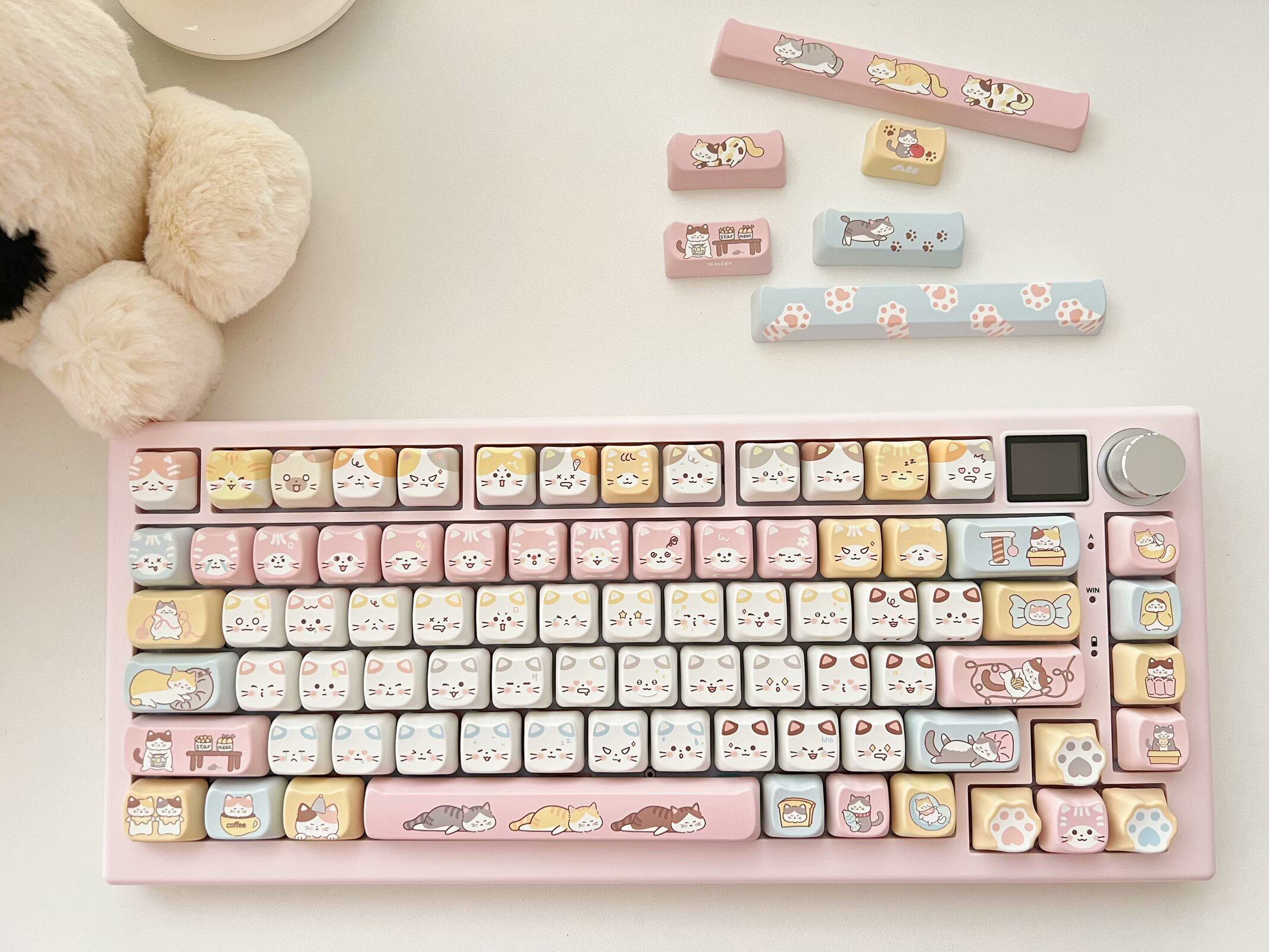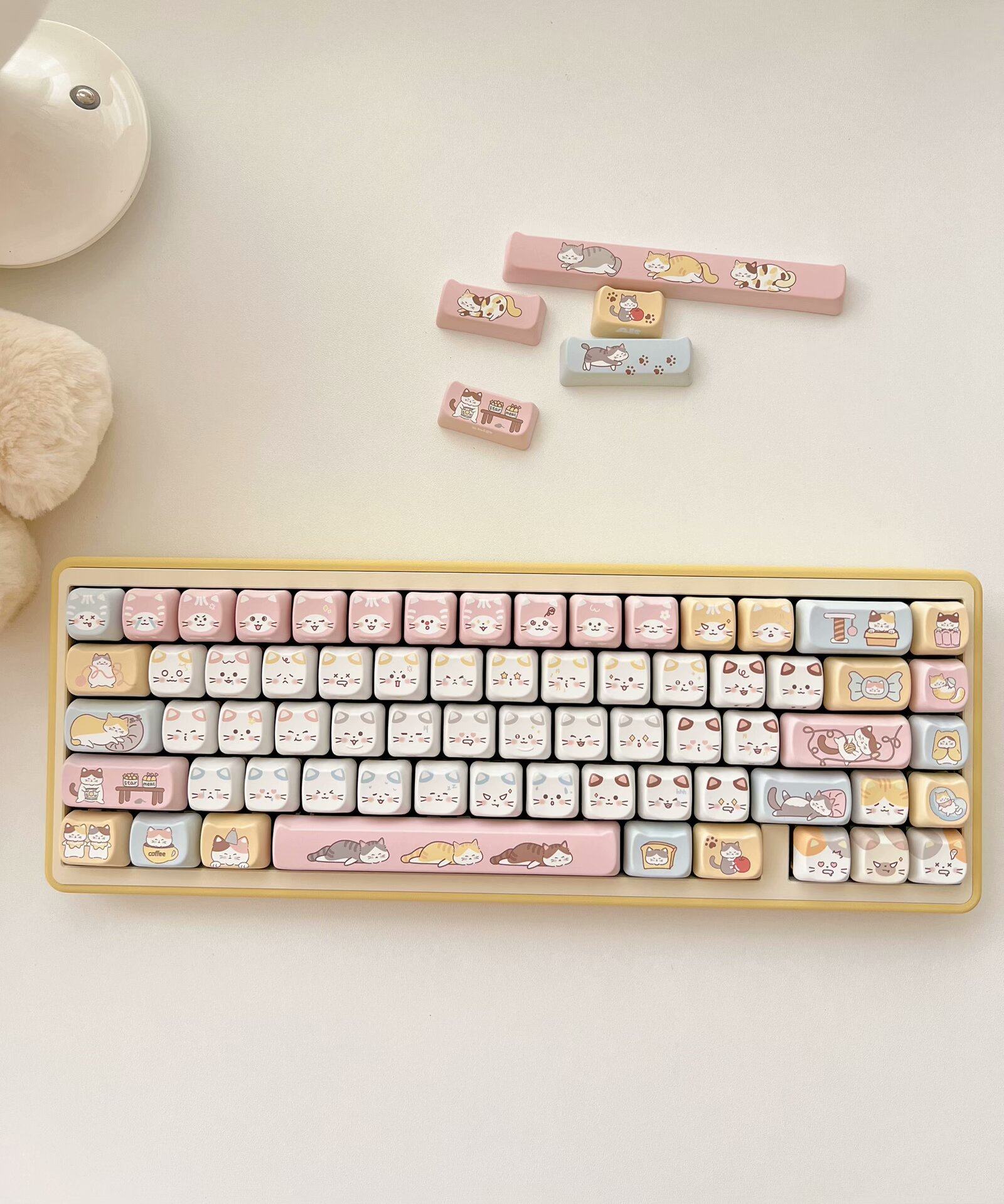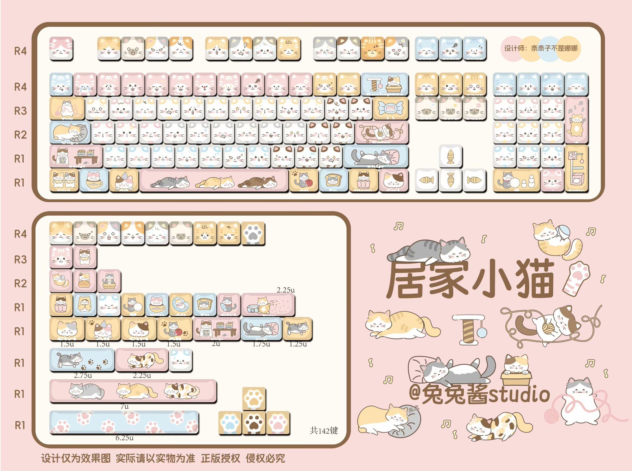 strawberryjam1986 Cat in the House PBT MAO Profile Keycaps Customized Cat Shape Keycaps