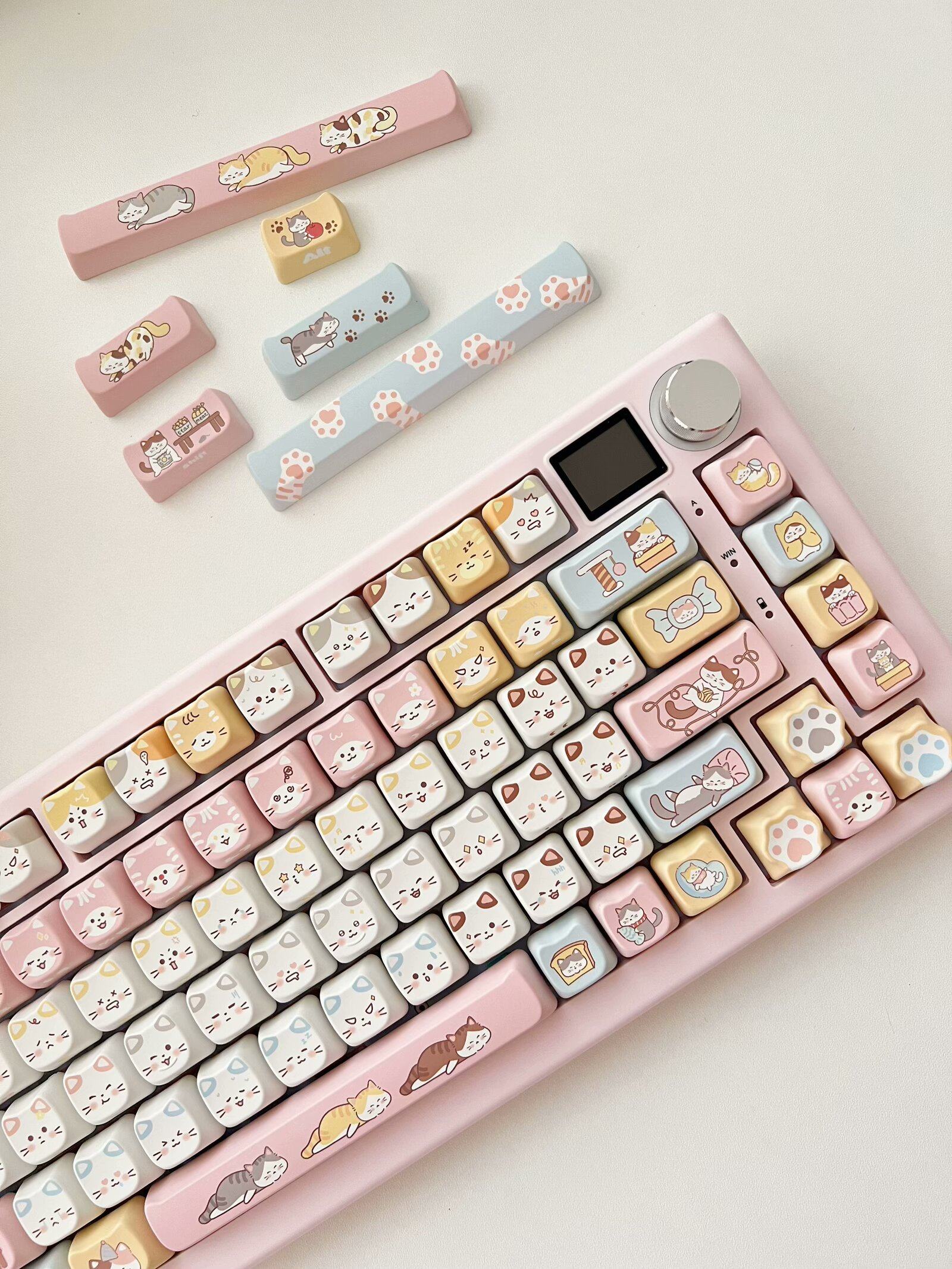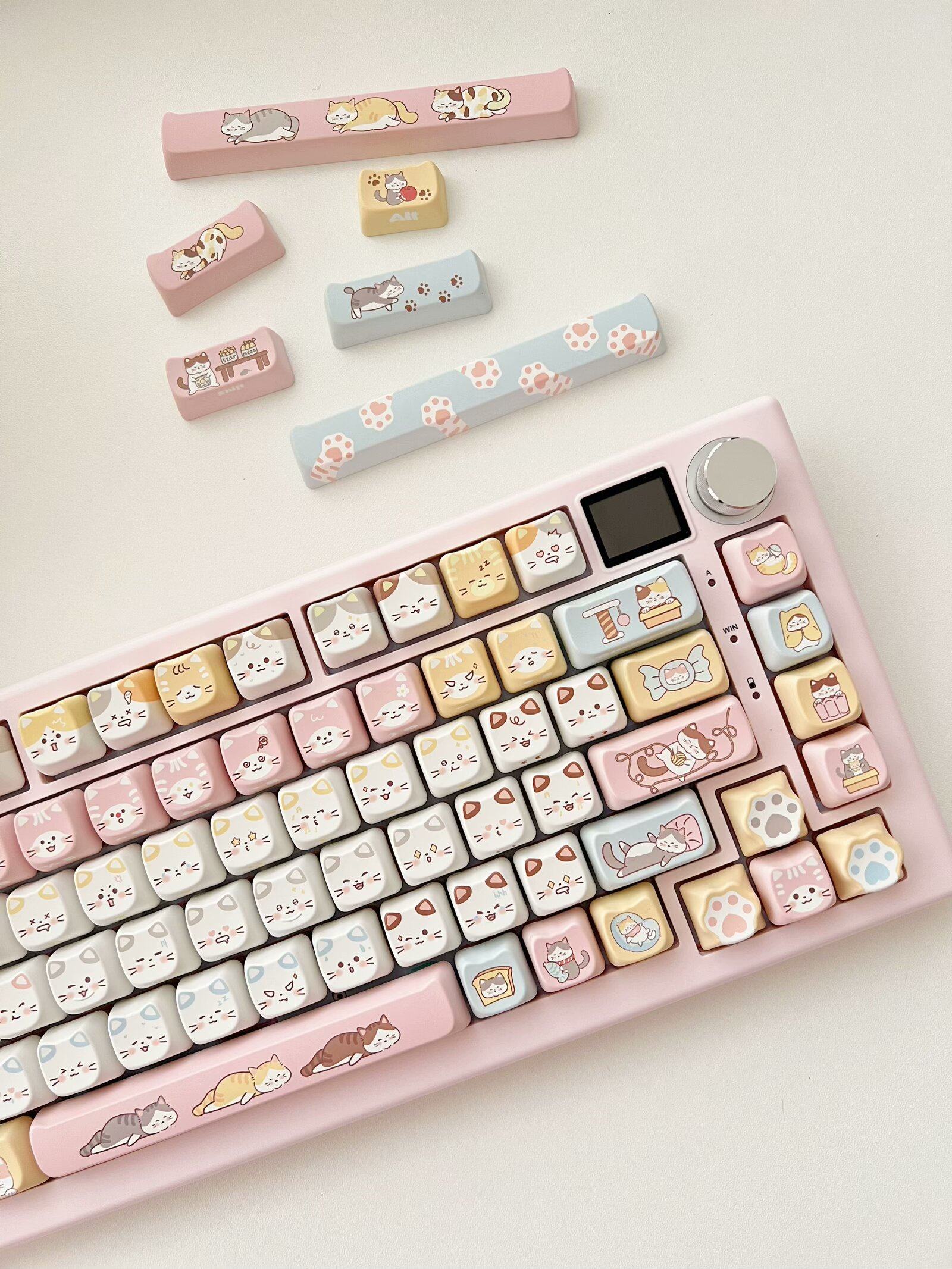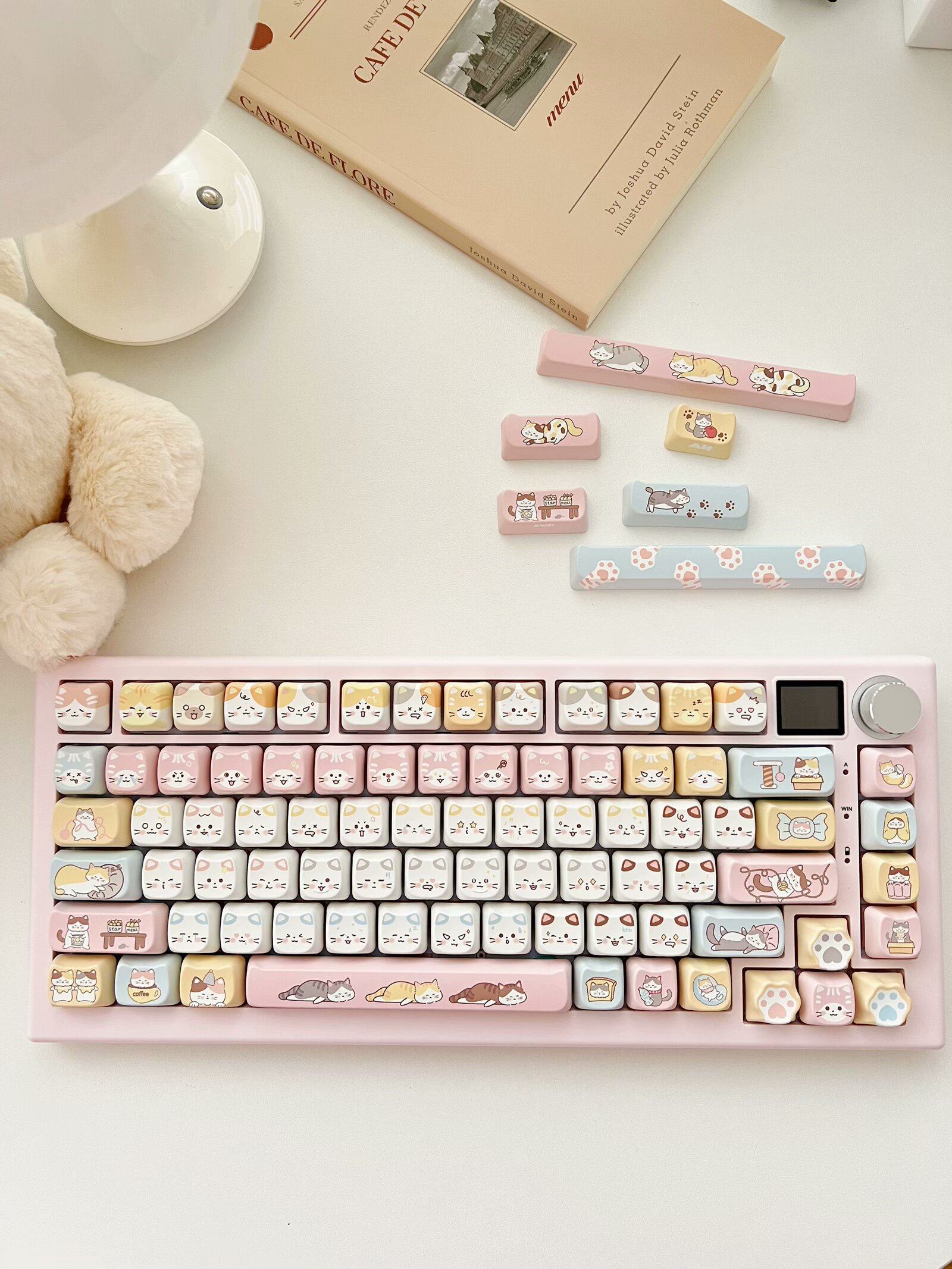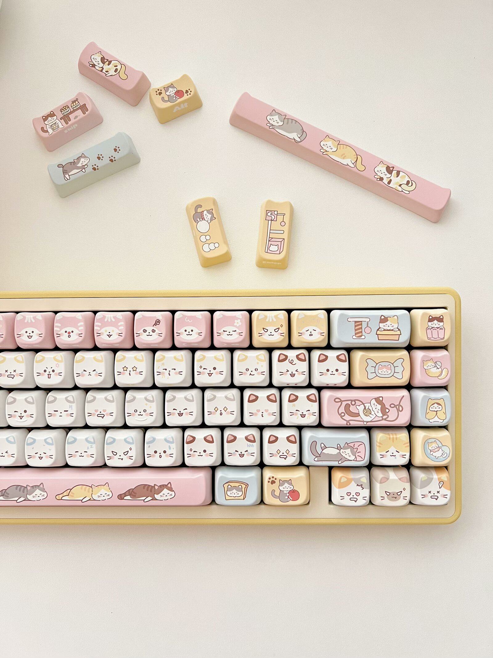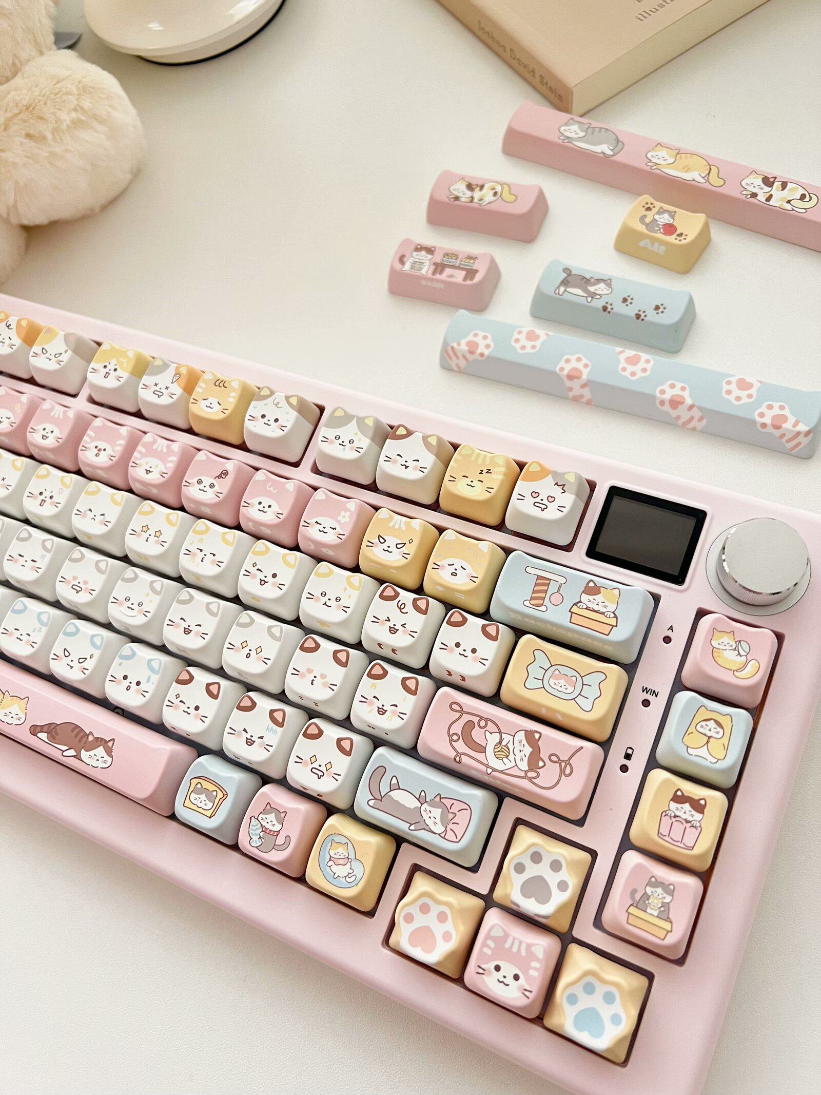 strawberryjam1986 Cat in the House PBT MAO Profile Keycaps Customized Cat Shape Keycaps