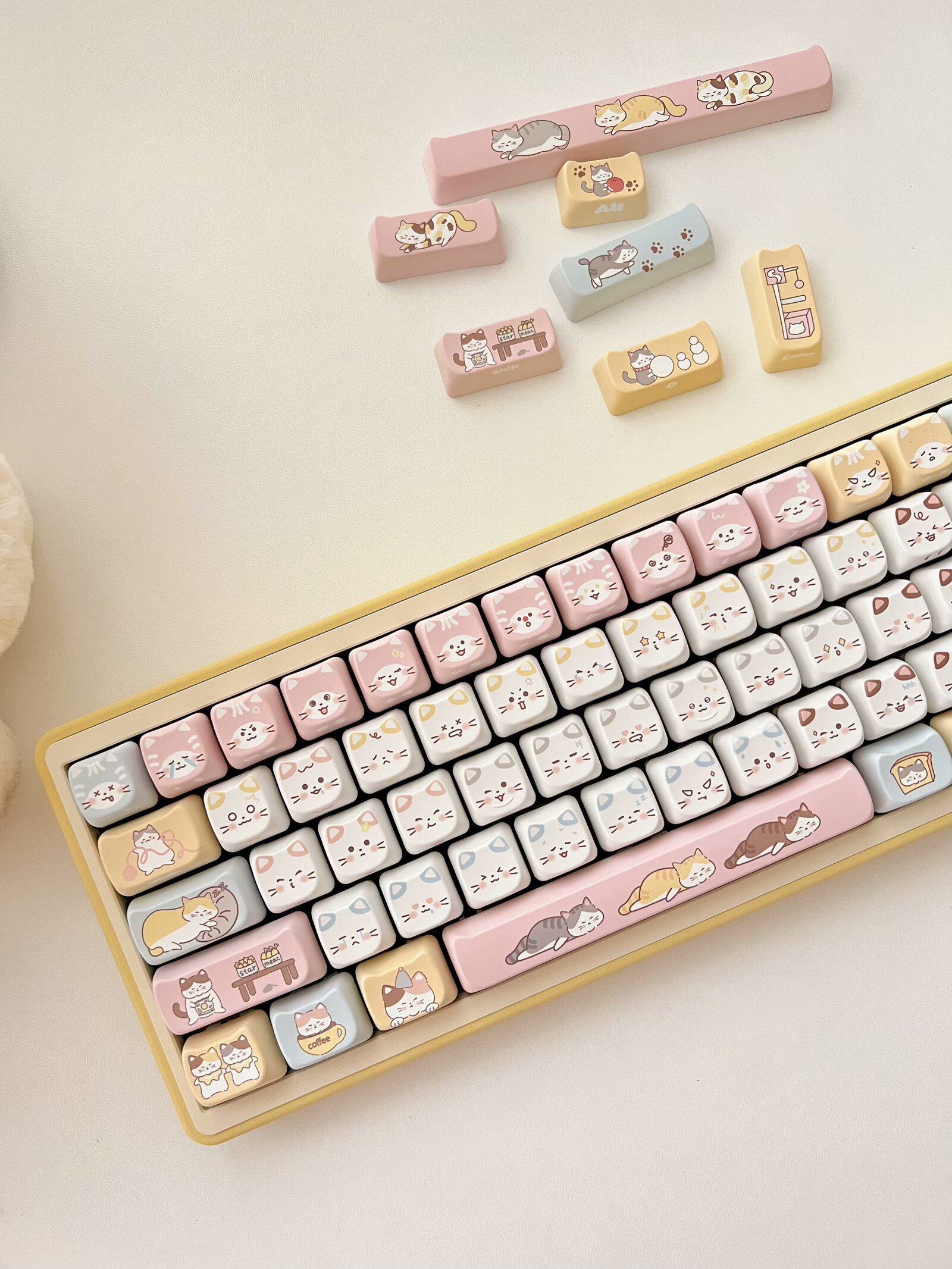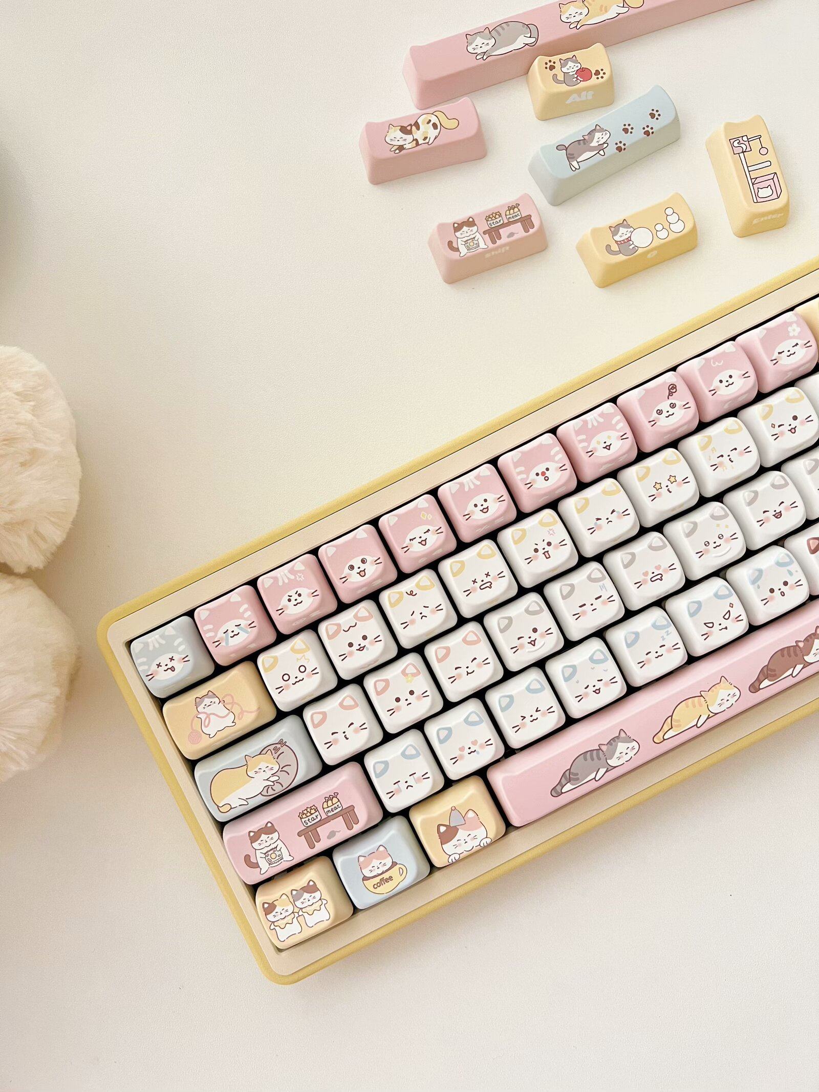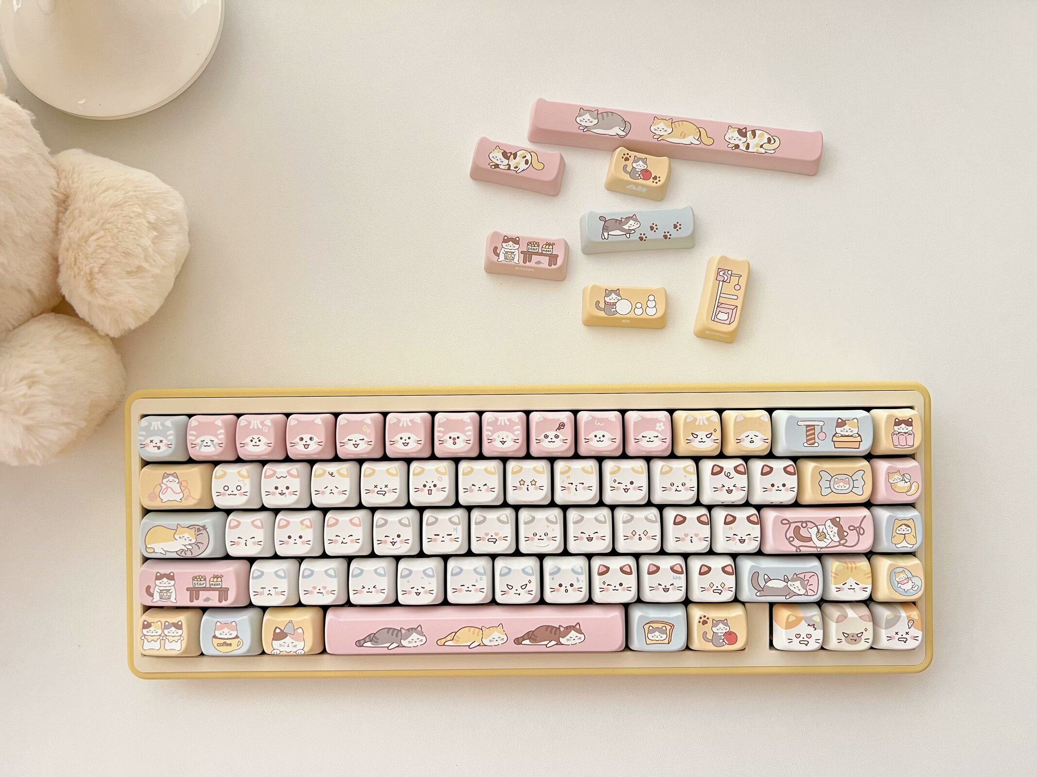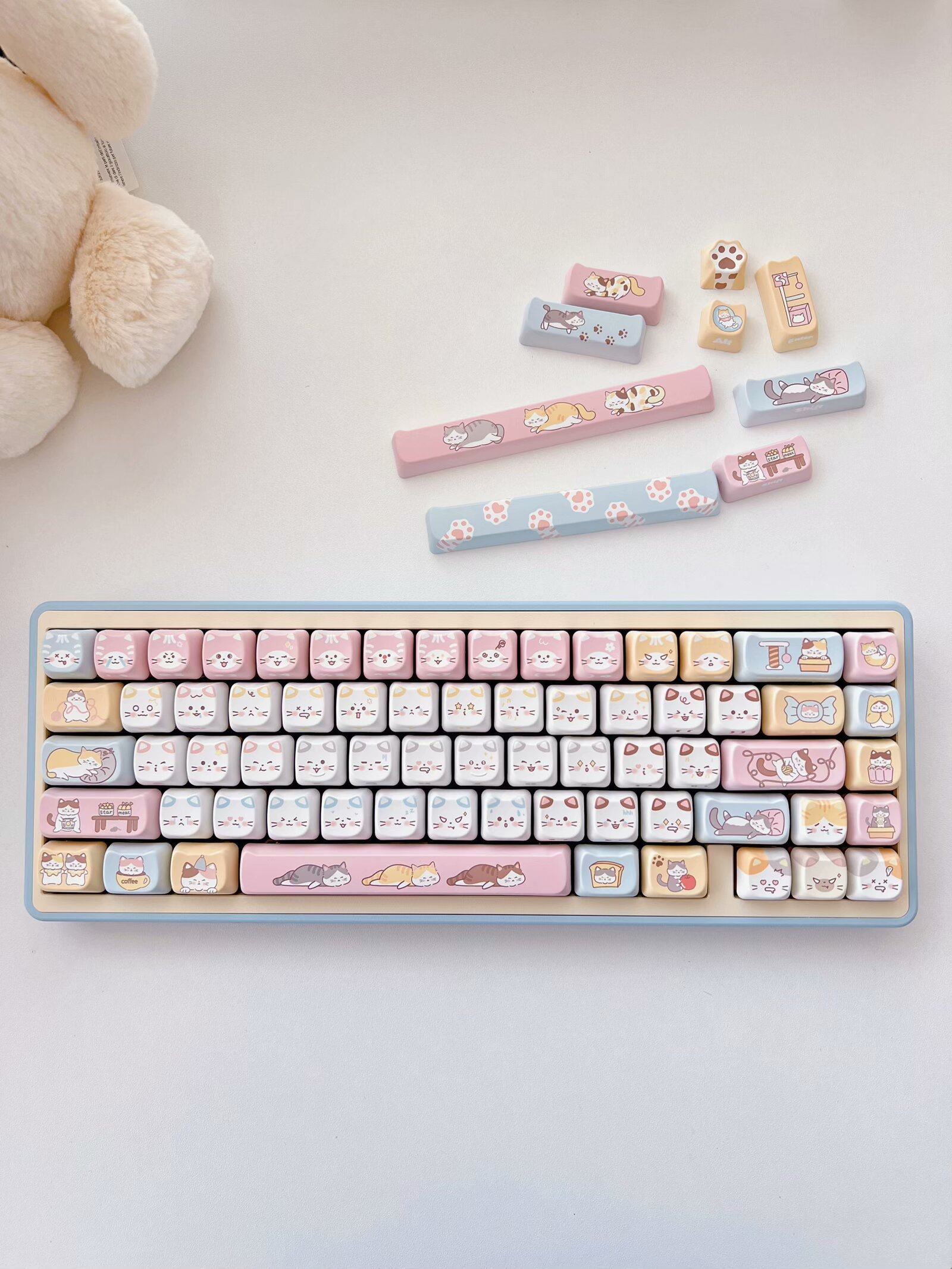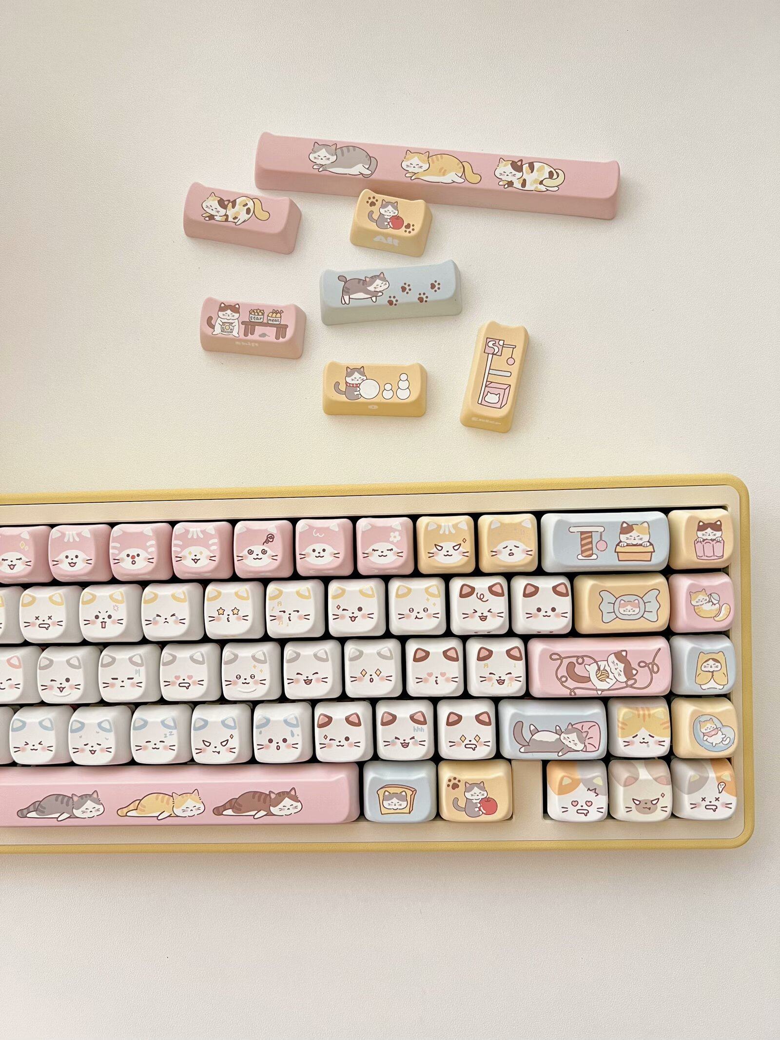 strawberryjam1986 Cat in the House PBT MAO Profile Keycaps Customized Cat Shape Keycaps