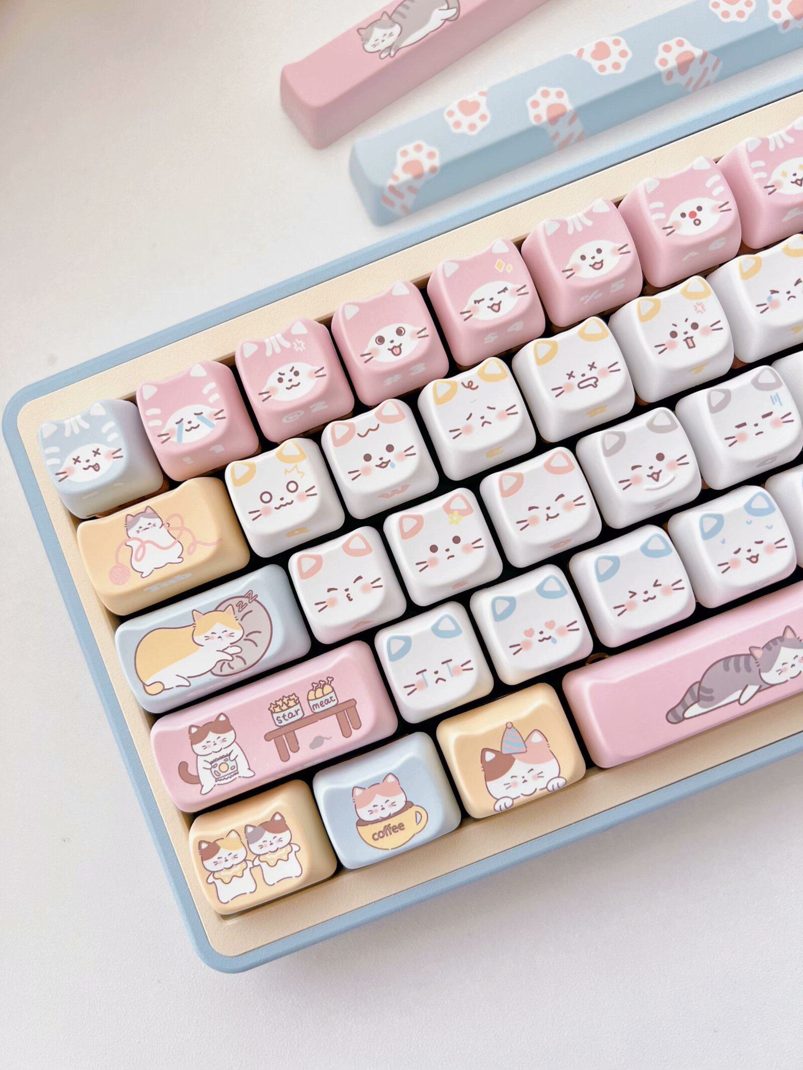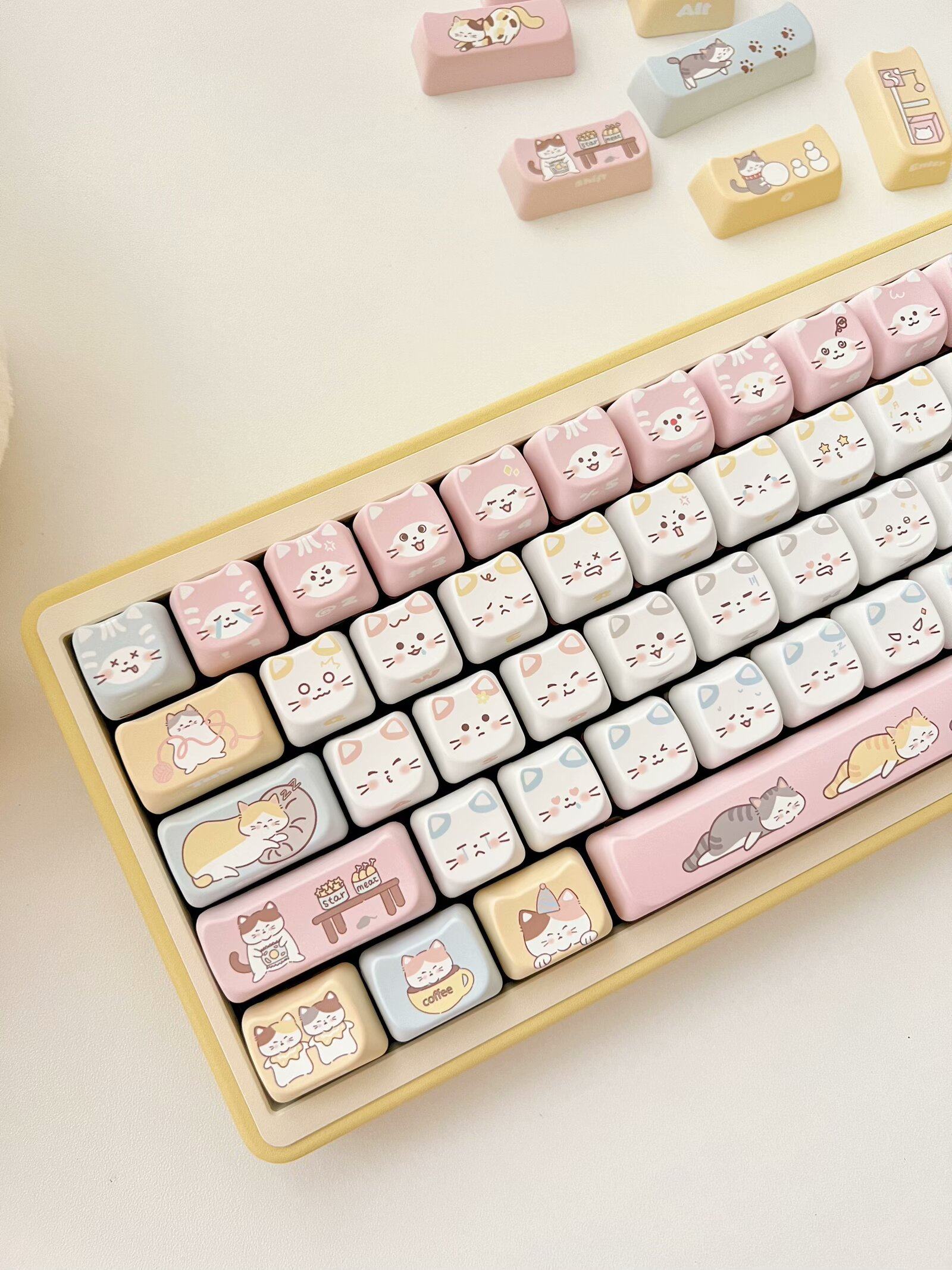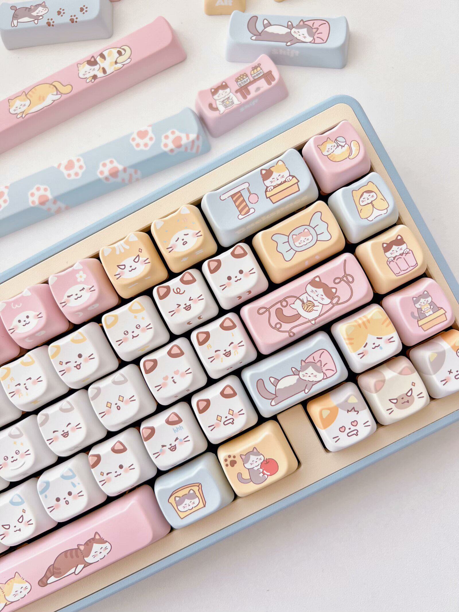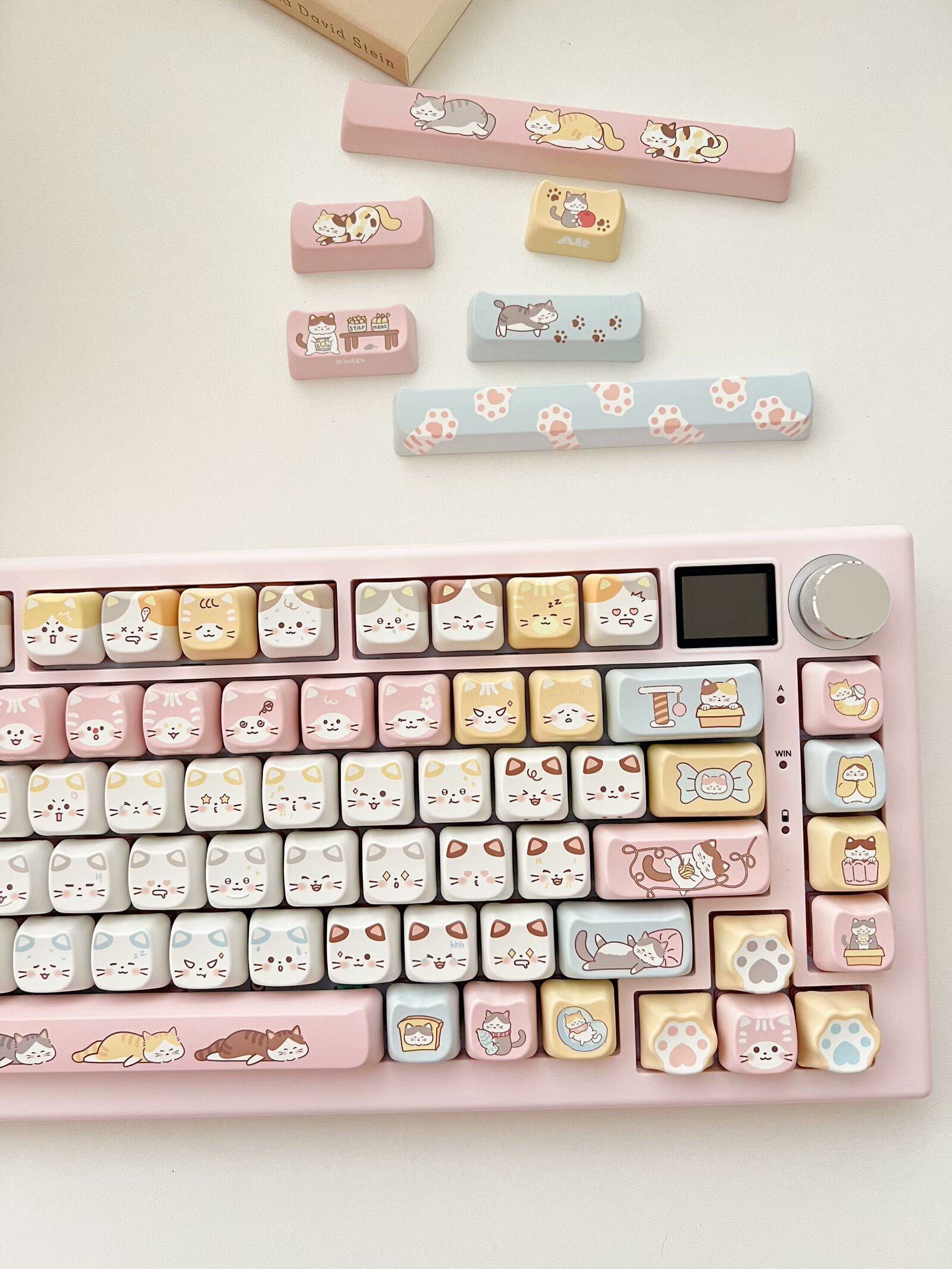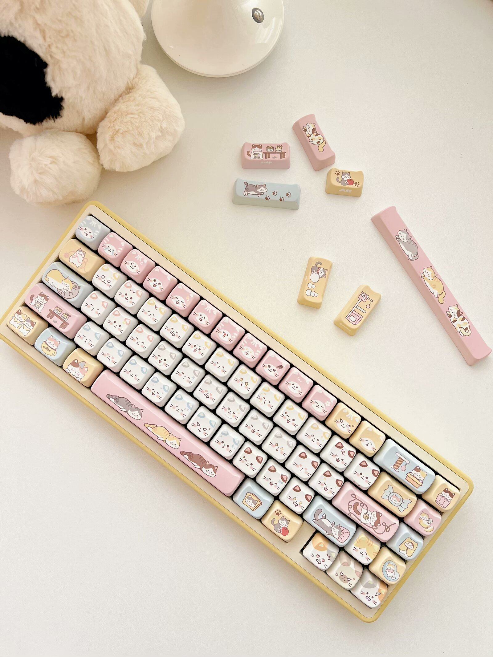 strawberryjam1986 Cat in the House PBT MAO Profile Keycaps Customized Cat Shape Keycaps
