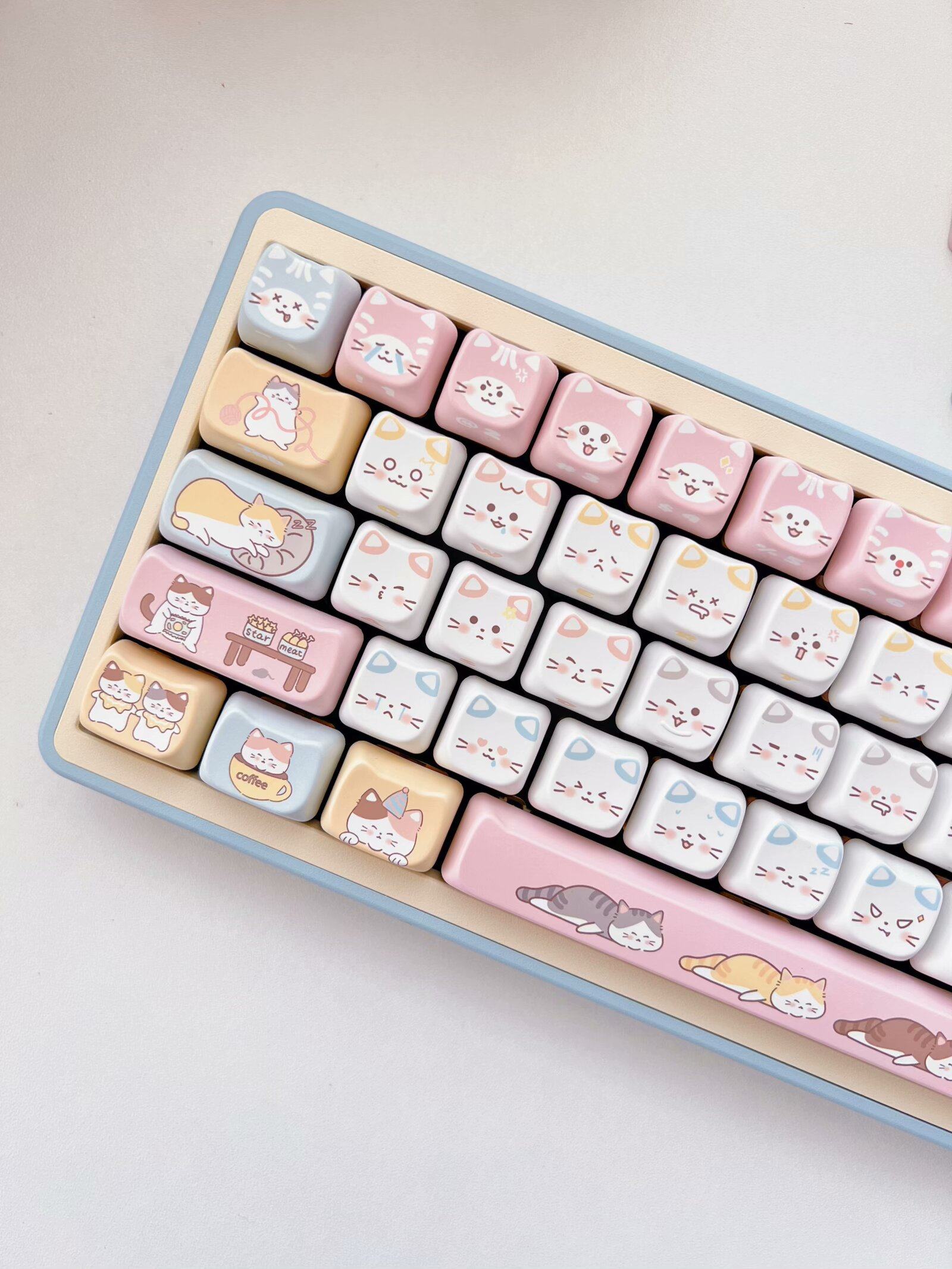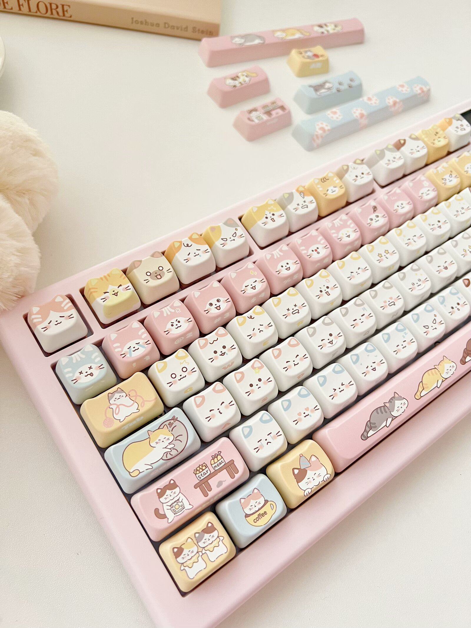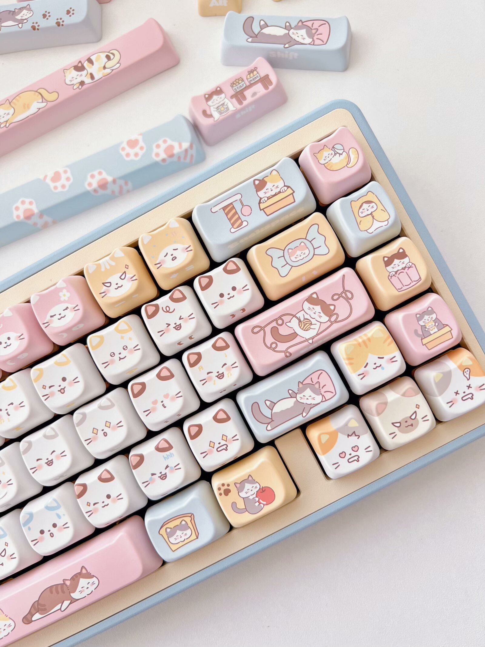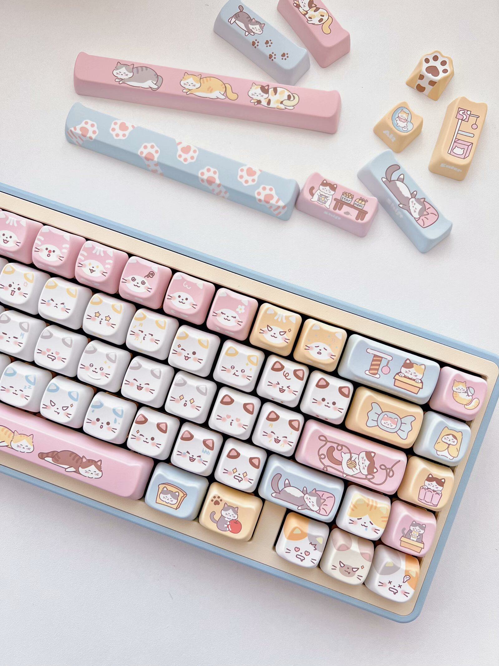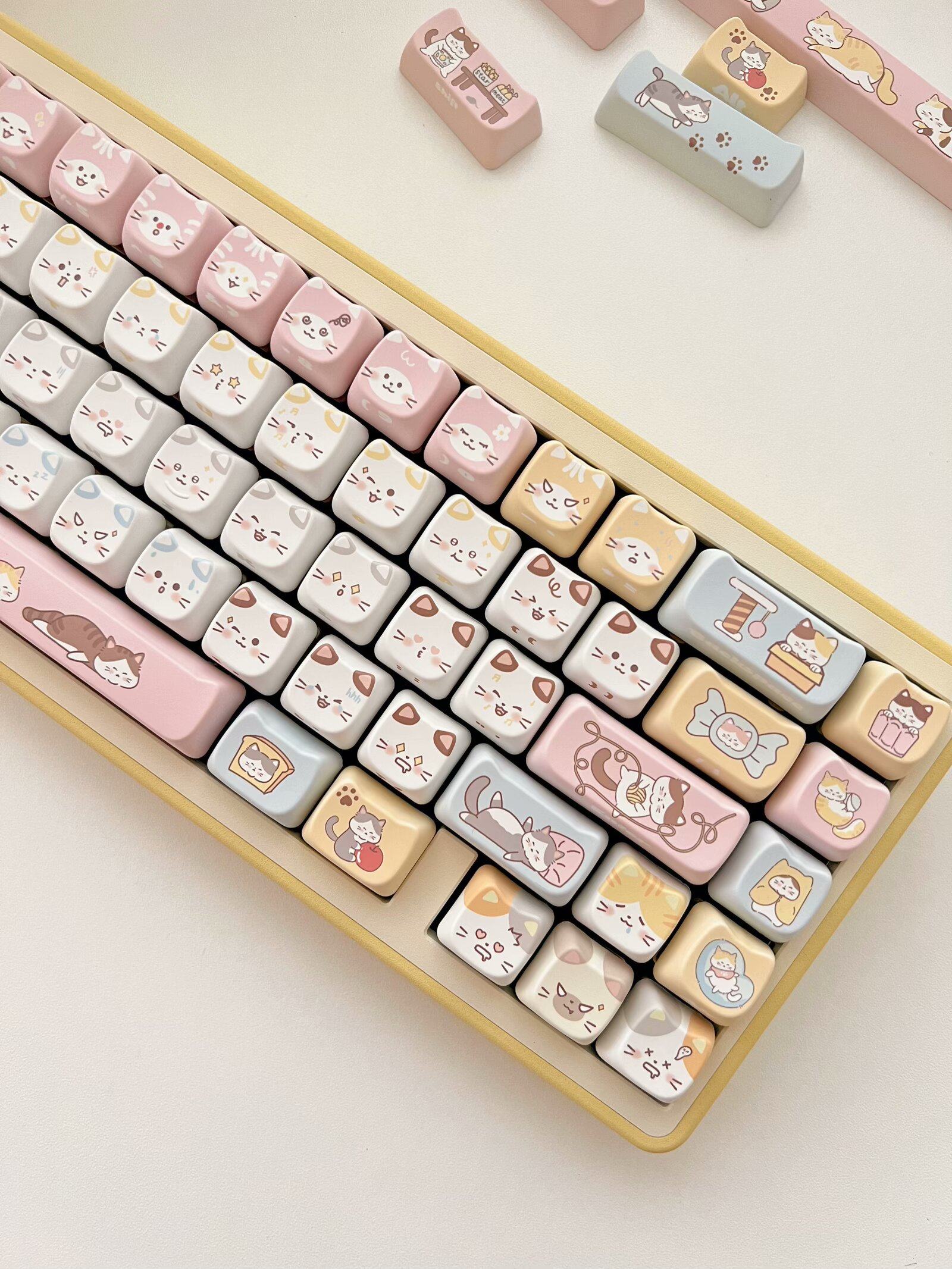 strawberryjam1986 Cat in the House PBT MAO Profile Keycaps Customized Cat Shape Keycaps