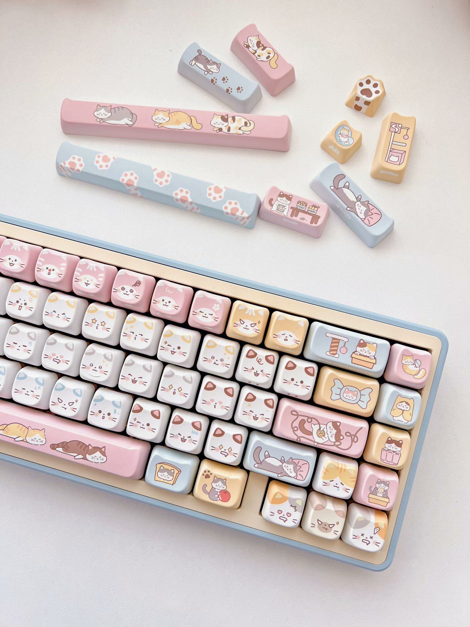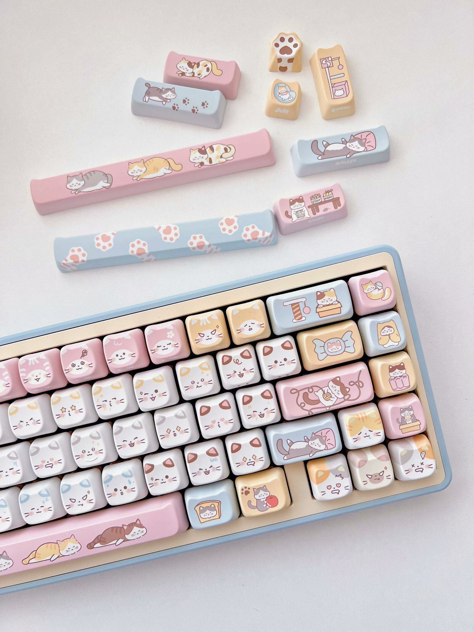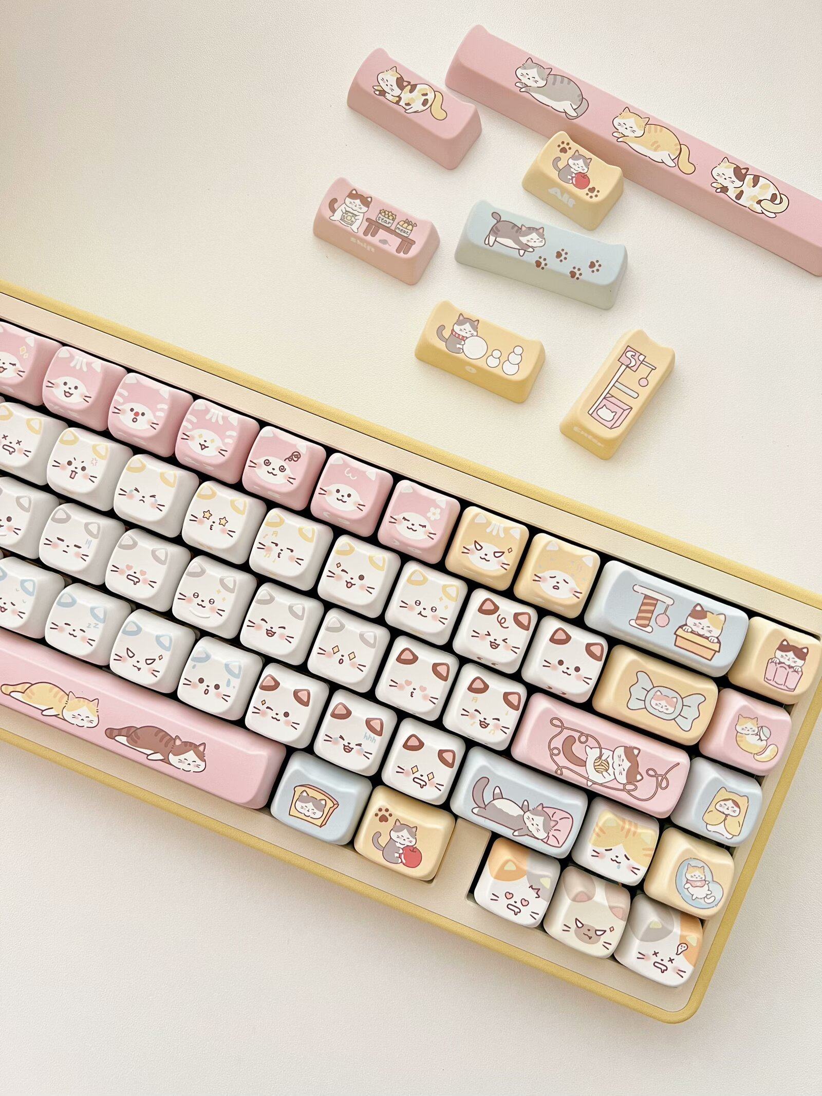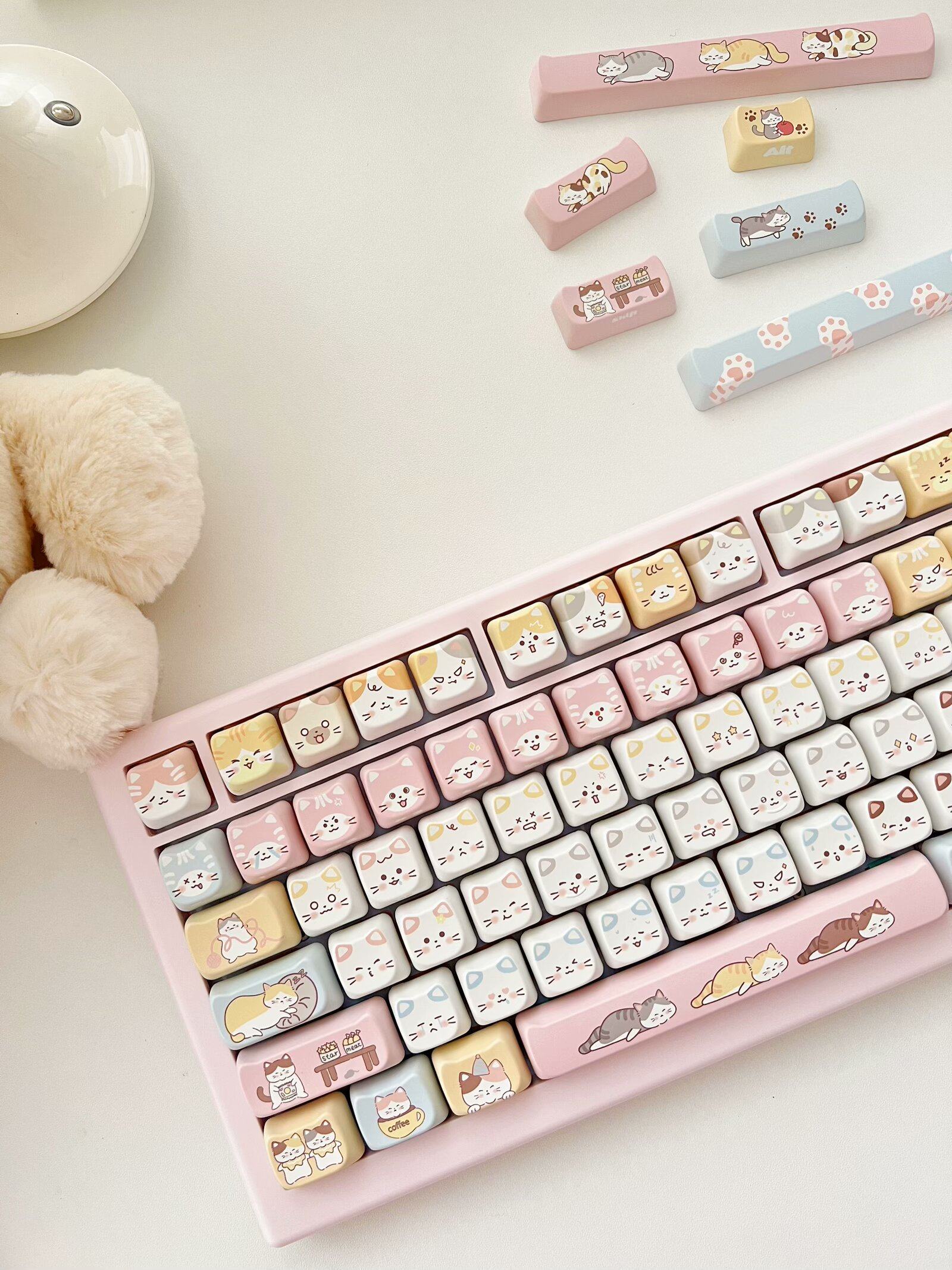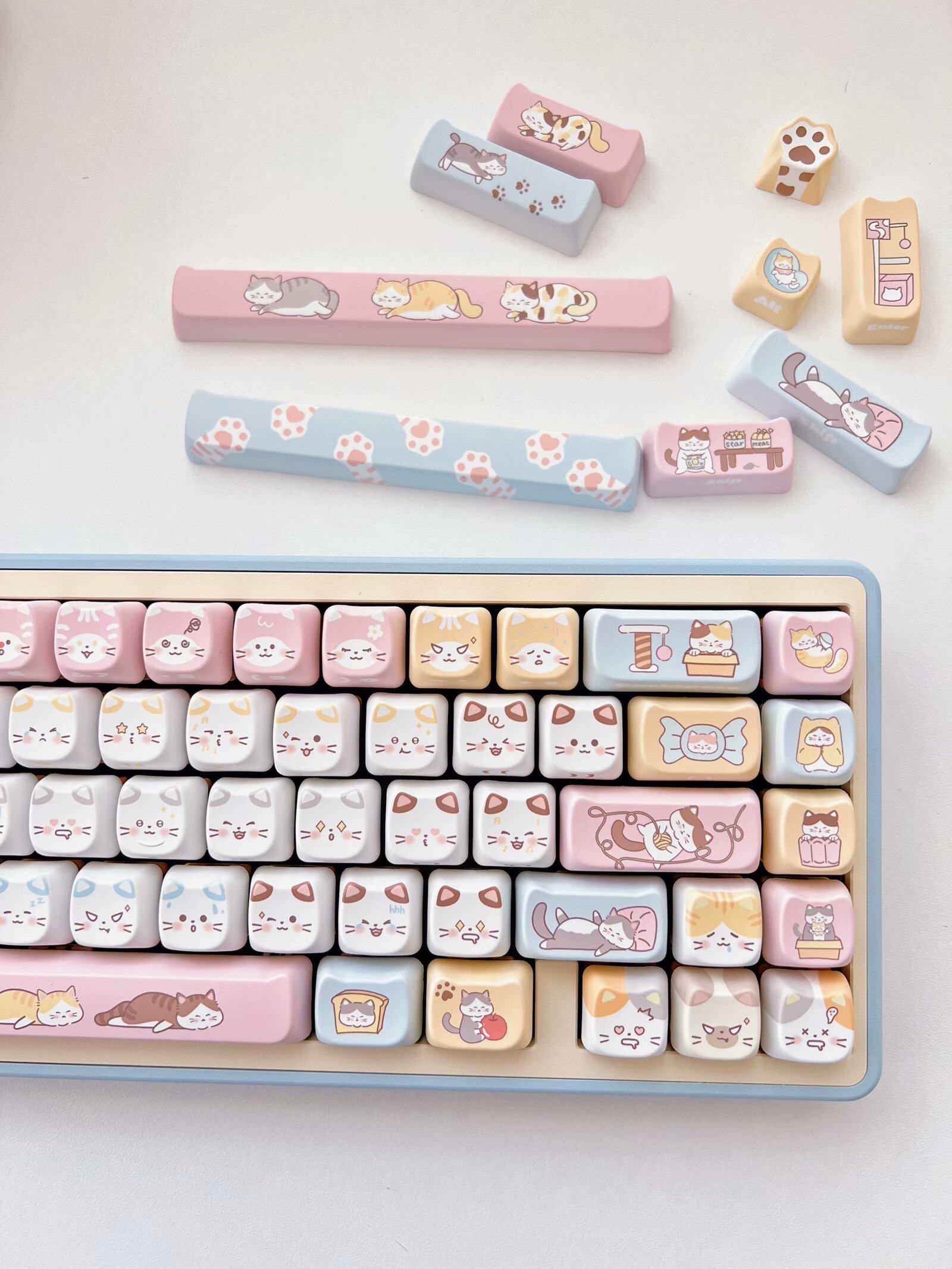strawberryjam1986 Cat in the House PBT MAO Profile Keycaps Customized Cat Shape Keycaps