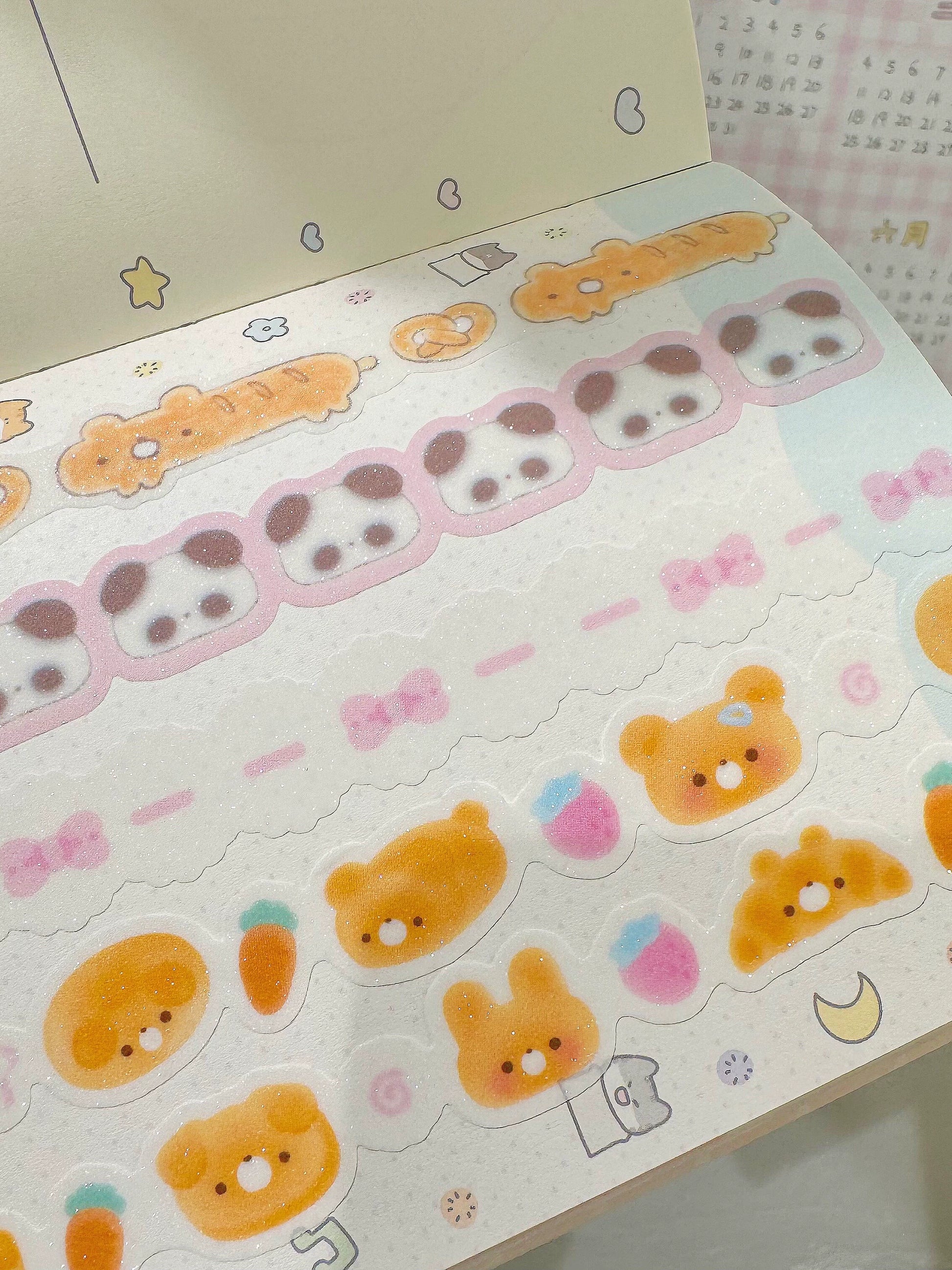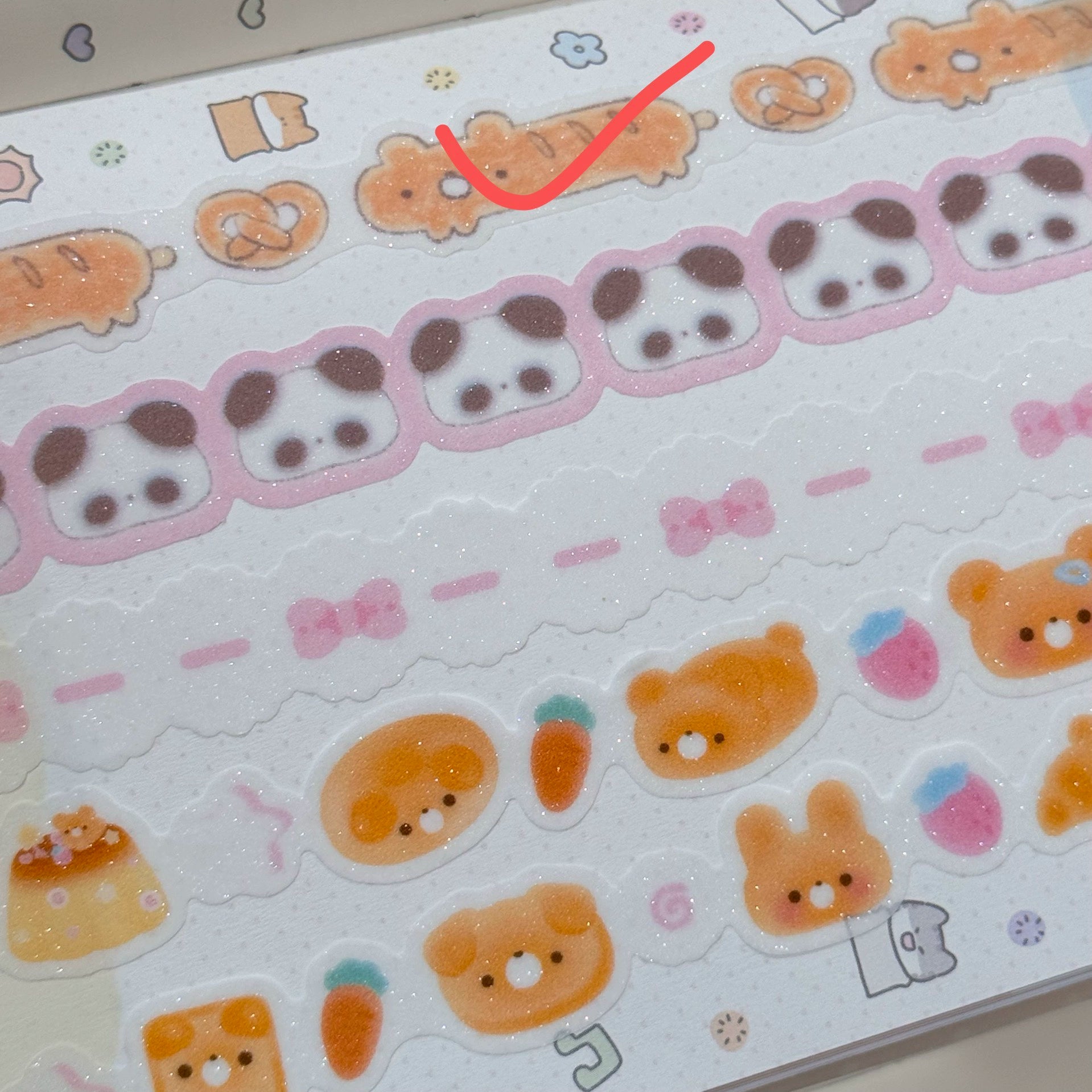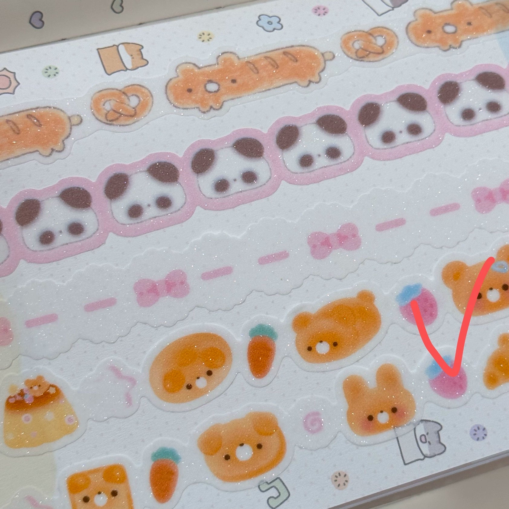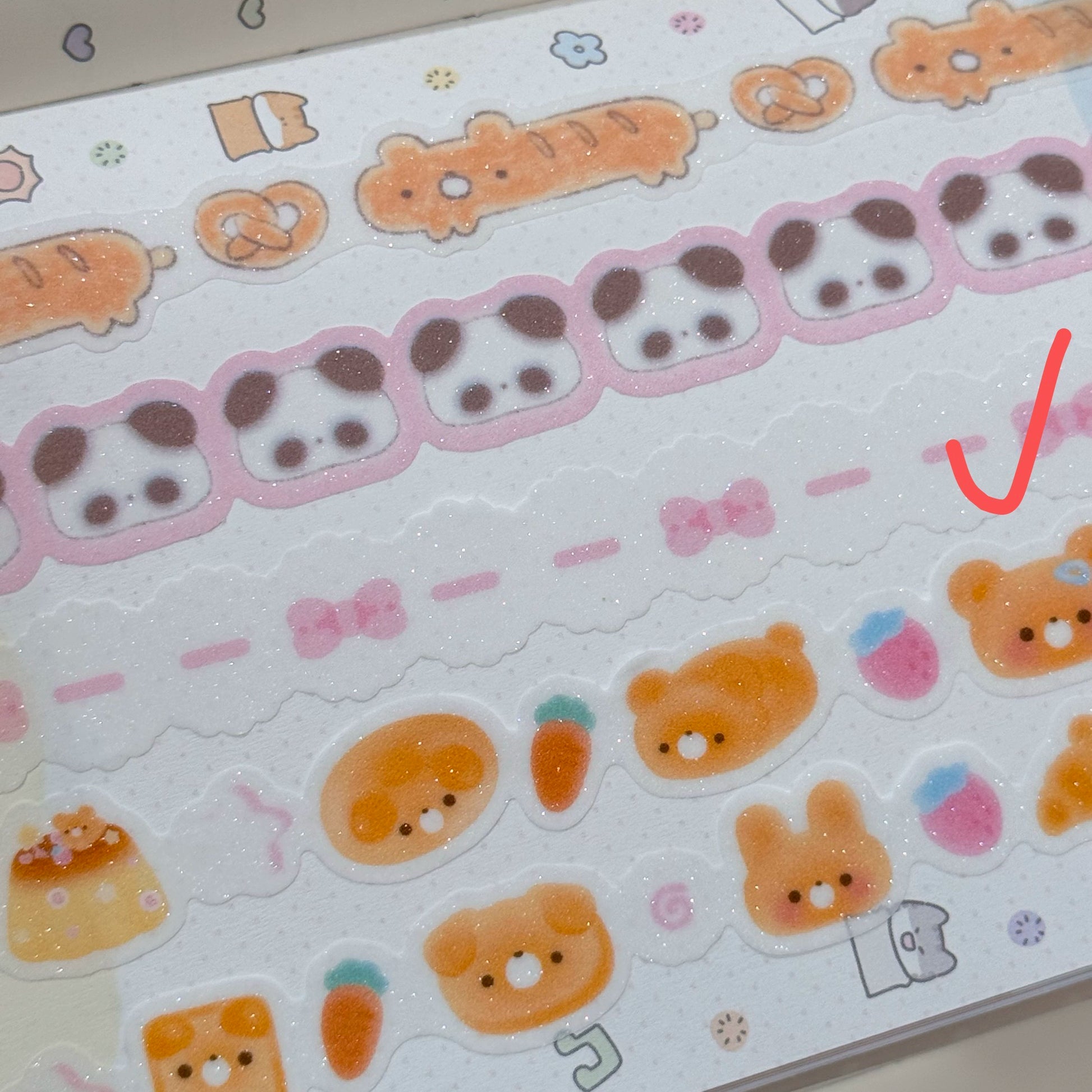 TUUO Cute Bear /panda /bowtie/ Bread Shaped Shiny Adhesive Matte Decorative Tape Stickers for Bullet Journal / Planner