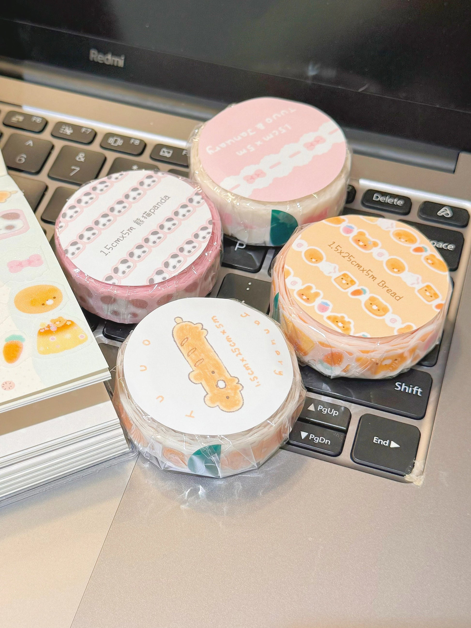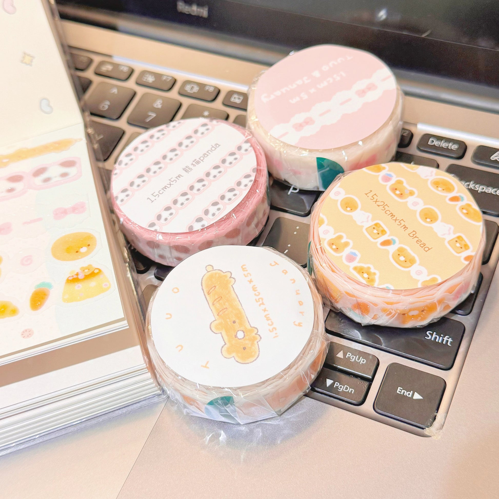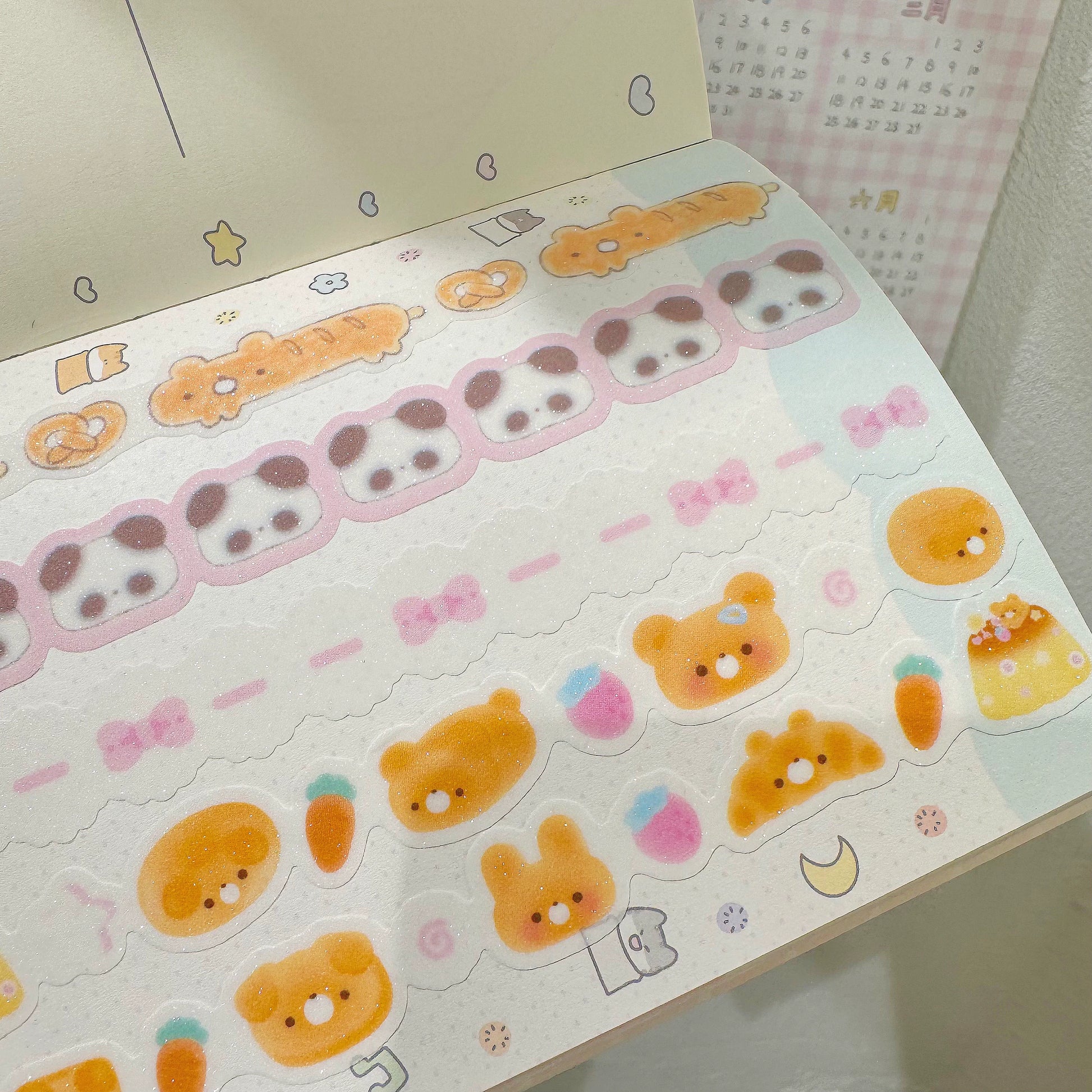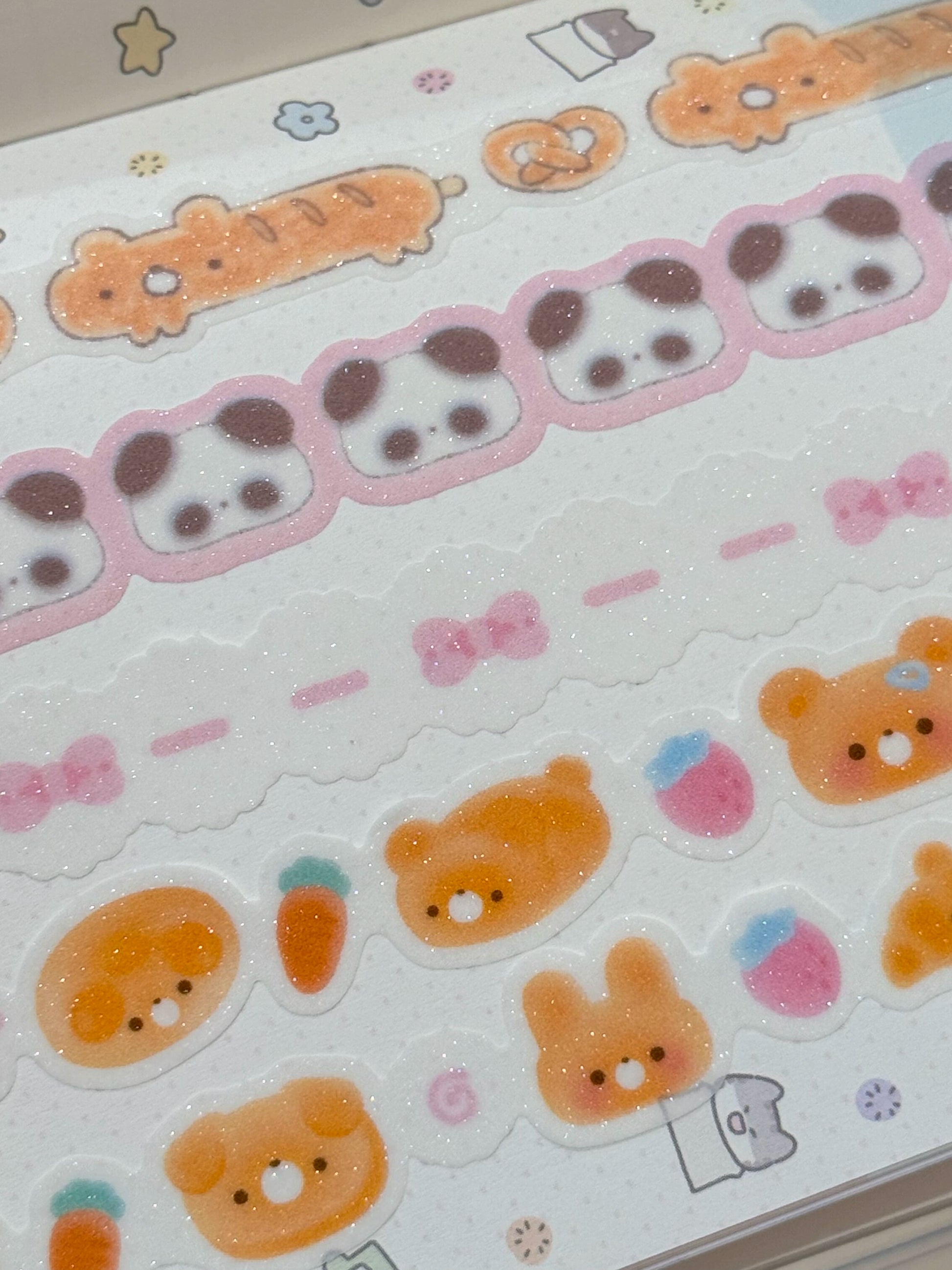 TUUO Cute Bear /panda /bowtie/ Bread Shaped Shiny Adhesive Matte Decorative Tape Stickers for Bullet Journal / Planner
