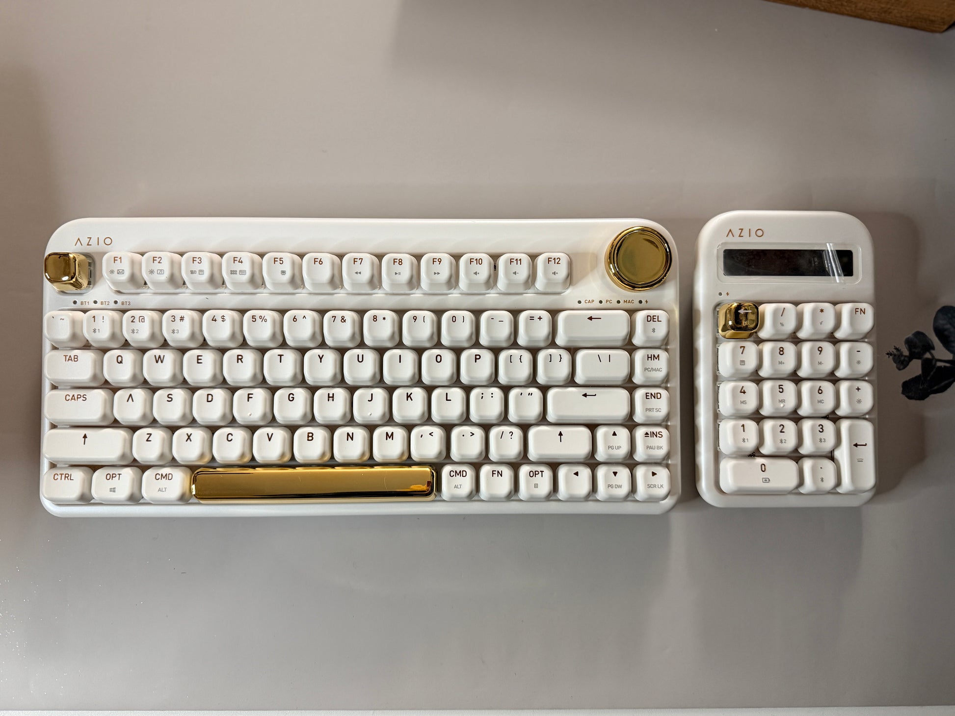 AZIO IZO Wireless Mechanical Calculator & Number Pad (White/Gold) - Bluetooth 5.0 & USB, Gateron-Blue Mechanical Switch, 9 Backlight Modes, Rechargeable, PC & Mac Compatible, White Blossom